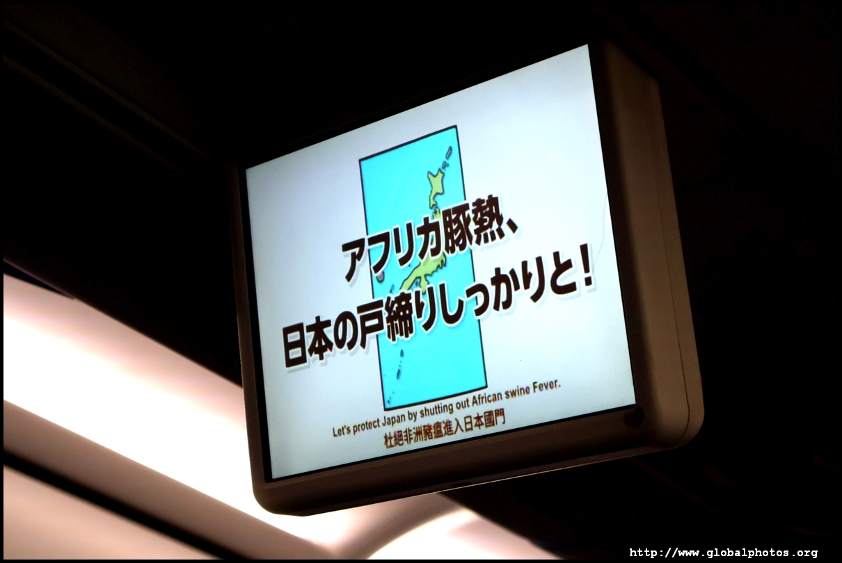 However, like the China Airlines flight, we ended up being delayed as well. So I would be delayed on both my EVA flights today. The explanation of the delay was due to ground operations, the exact same as the reason behind my delay on the inbound flight from Hong Kong. However, I don't know what that means and it's as good as not giving a reason at all. At 5:20pm, the cockpit announcement came that it would be a 53 minute journey to Okinawa tonight. We pushed back 7 minutes later, almost 40 minutes delayed. With the rain and dwindling light, there wasn't much to see from my window seat. It was a long 19 minute taxi to take-off. Similar to my flight from Hong Kong, there was a crew announcement to sell duty free before we lifted into the skies. One thing I noticed with both my EVA flights today is there is an announcement at 10,000 feet, which I presume would release the crew from their seats. At Cathay, I would hear a seat belt chime even though that light would still be on. A sandwich was offered on this short flight but since I already ate during my transit and I expect to have dinner after arrival, I passed. We cleared the clouds about 9 minutes after take-off at 5:55pm but we would start descending only 20 minutes later, coming into Naha from the south to land at 7:45pm (Japan is 1 hour ahead of Taiwan). Japan is quite strict at their customs and they're just as concerned as the Taiwanese with foreign diseases that could impact their agriculture and livestock. This warning would flash on our overhead screens ahead of landing.