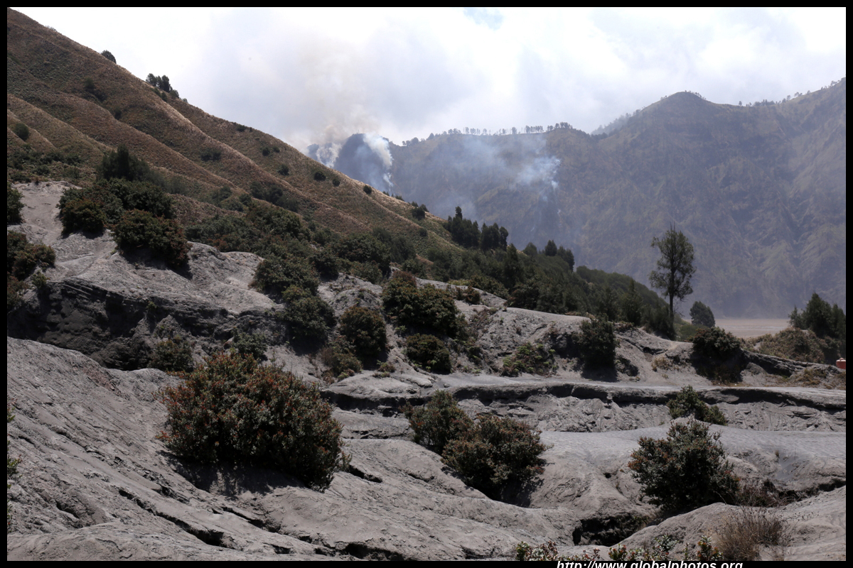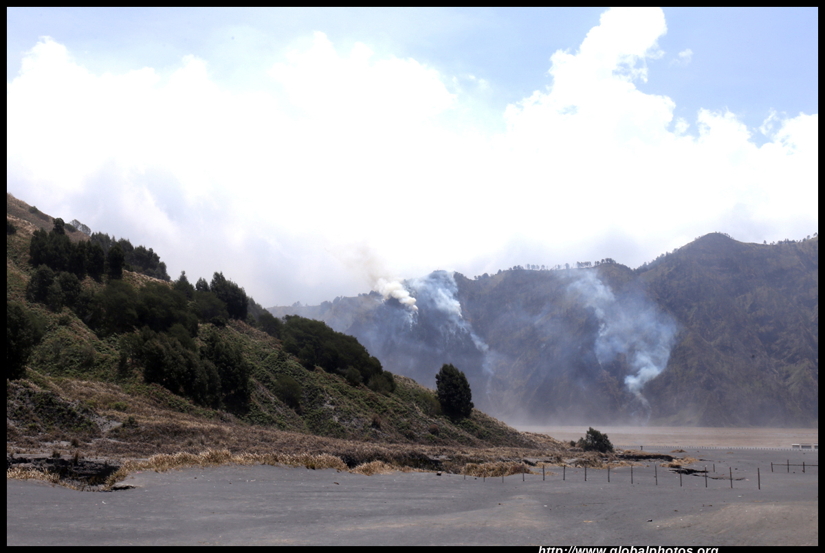 Interestingly, it wasn't the volcano's crater that was active today. The side mountains were smouldering instead.