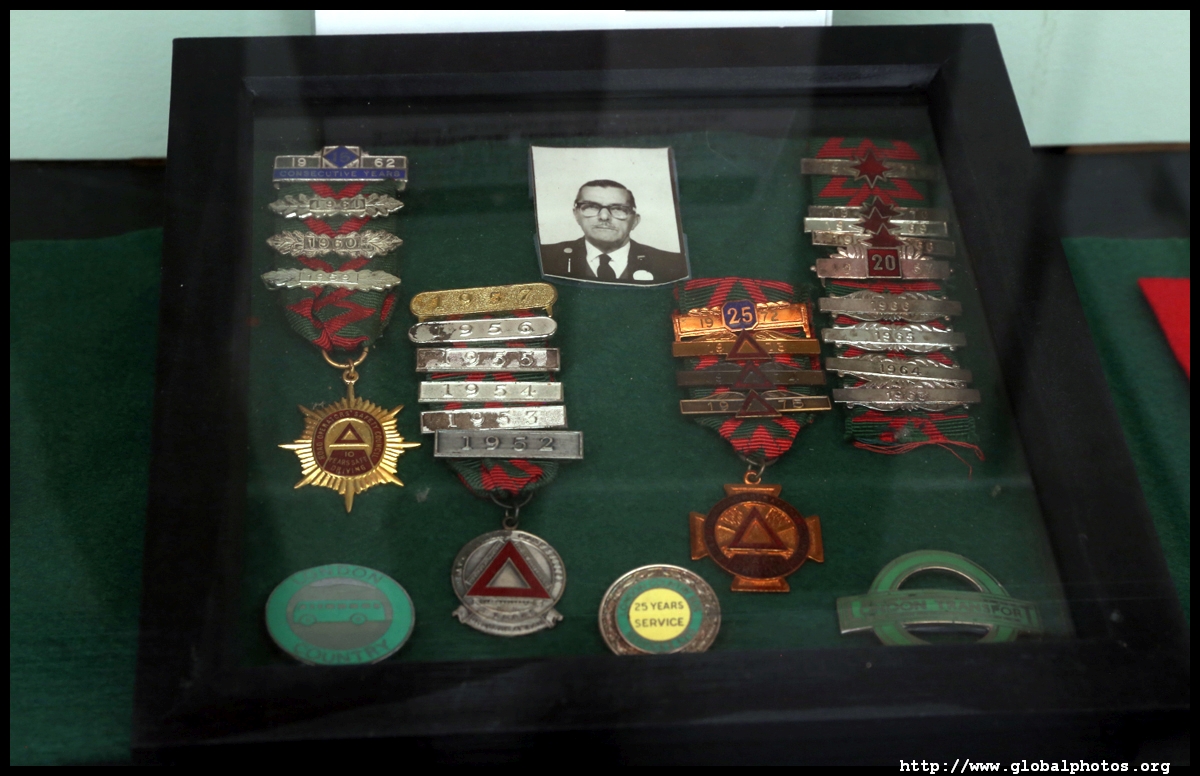 Upstairs, there are some smaller artifacts such as bus stop signs, medals, and even tableware.