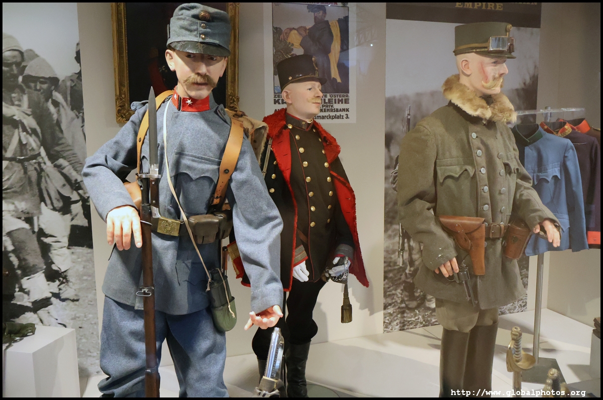 The Royal Military Museum's history dates back to the 1910 World Expo, when an officer showcased about 900 objects from the country's military history. The collection was retained and put on display, moving into the north wing of the Jubilee palace in 1923.The museum's website states their World War I gallery is the biggest and most diverse collection in the world with objects from almost all involved countries. Notice the uniforms have turned from bright and colourful to more muted designs as warfare tactics evolved. There were also new innovations to break the trench warfare deadlock, such as gas, bombers, and more.