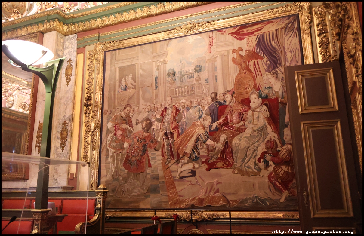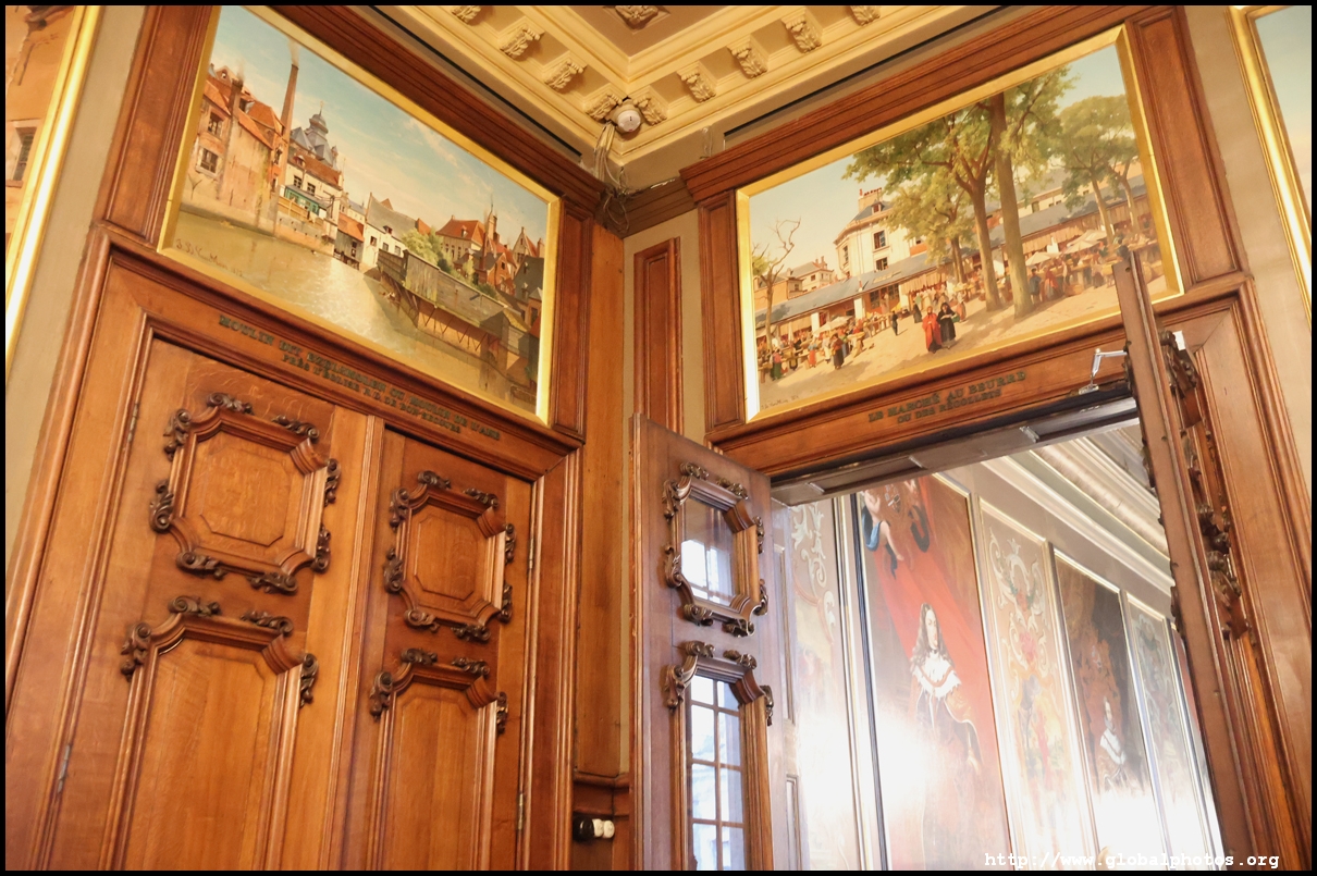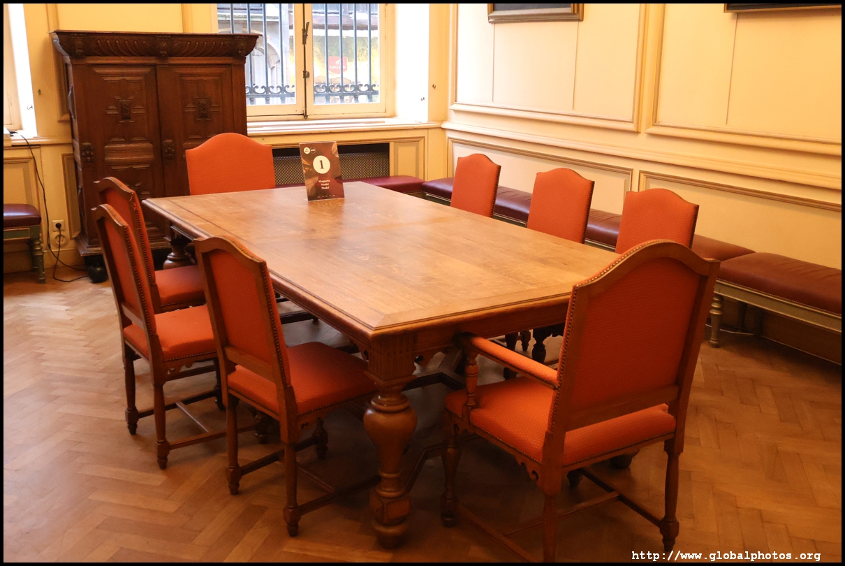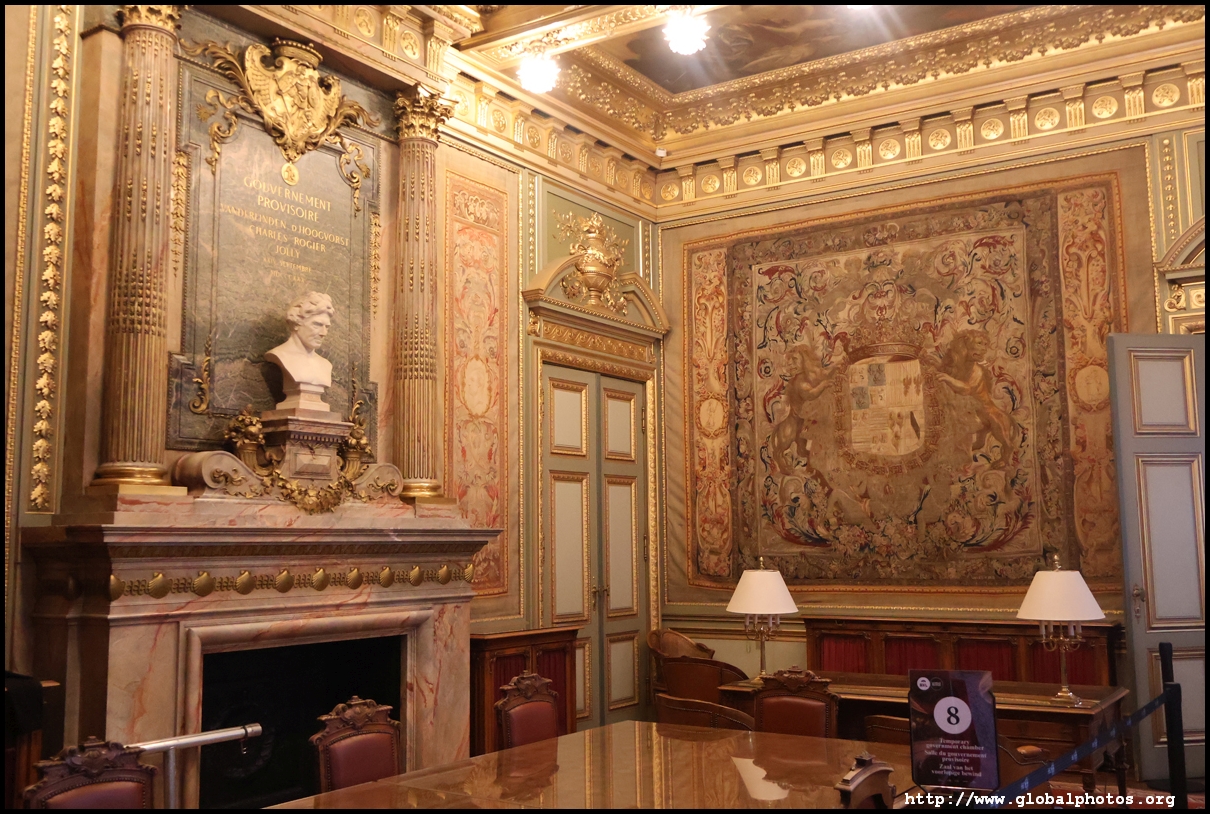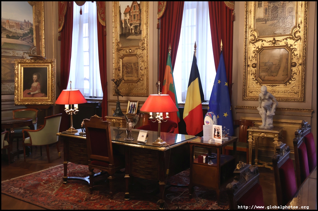 Fronting the Grand Place, the town council decided to build a town hall that reflects its wealth. Construction began in 1401 and continued throughout the 15th century. The first building was L-shaped and was quickly followed by a second wing. Despite being burned down in 1695, the walls and tower survived.After paying a modest admission charge, I got an audio guide and set off exploring the rooms on my own.