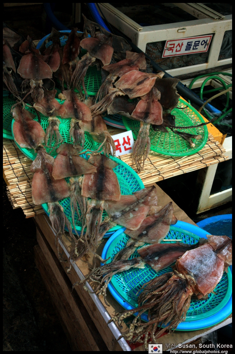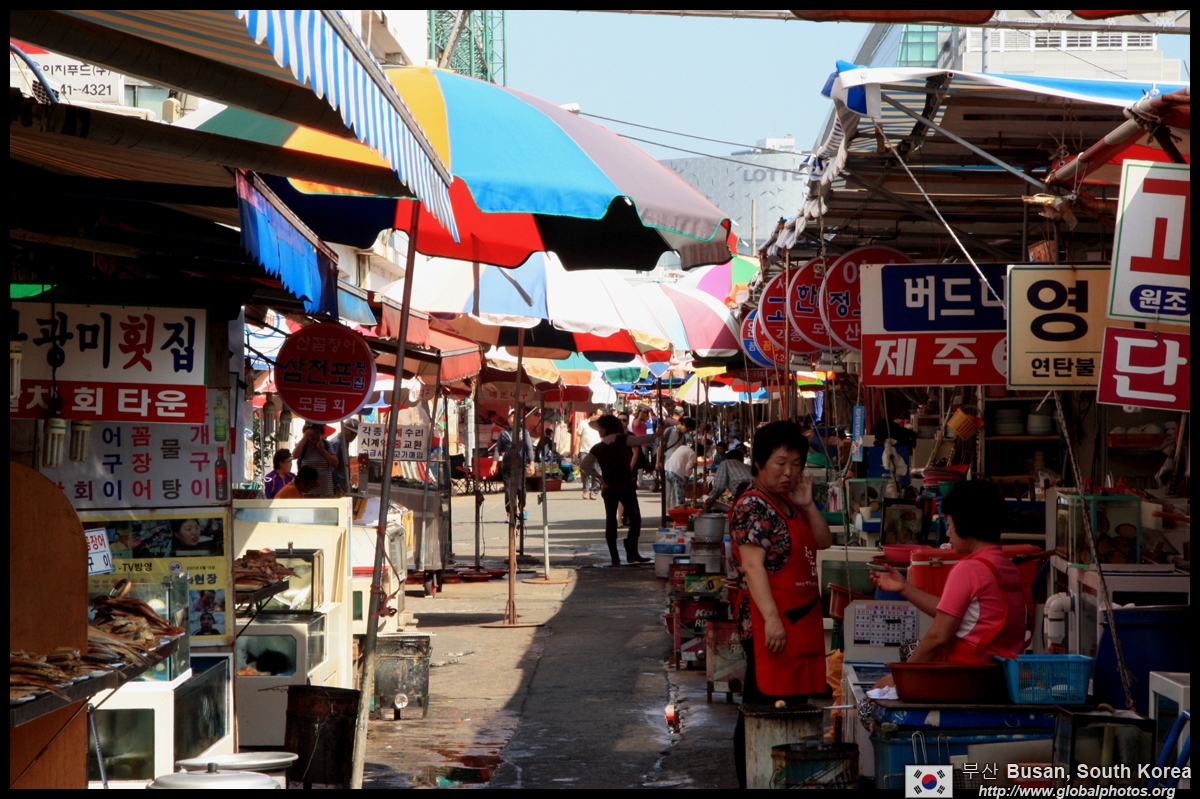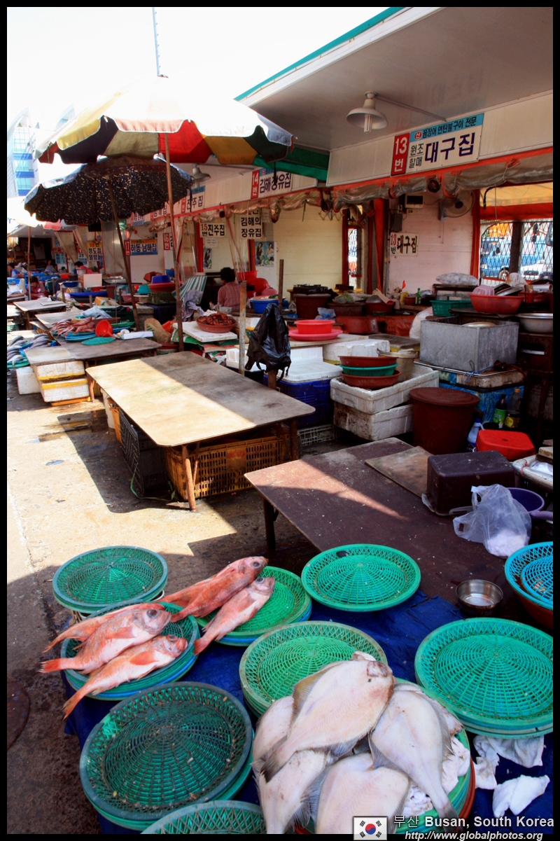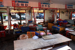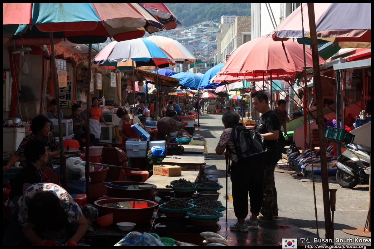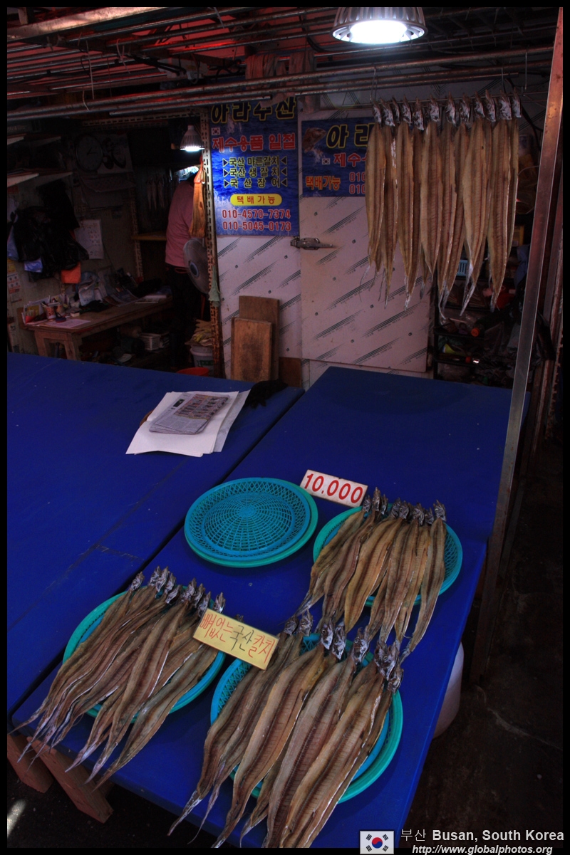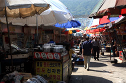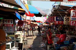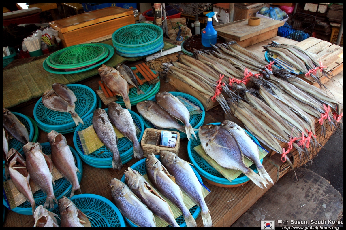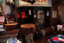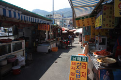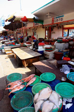 Welcome to Korea's largest fish market. Notice most of the vendors are women. There is a reason for this - while the men go out to sea to fish, the women handle the shops back home.