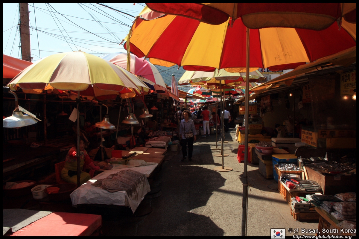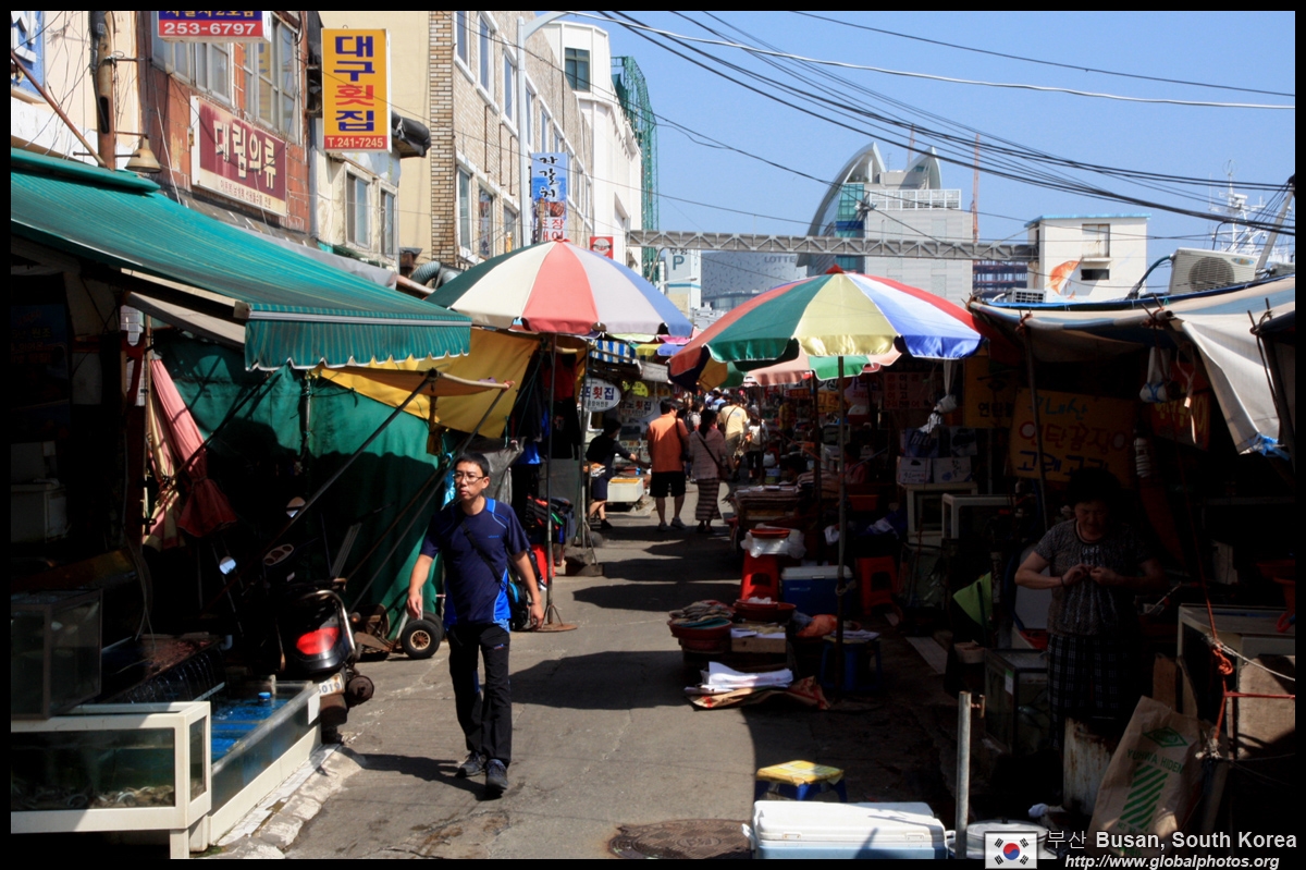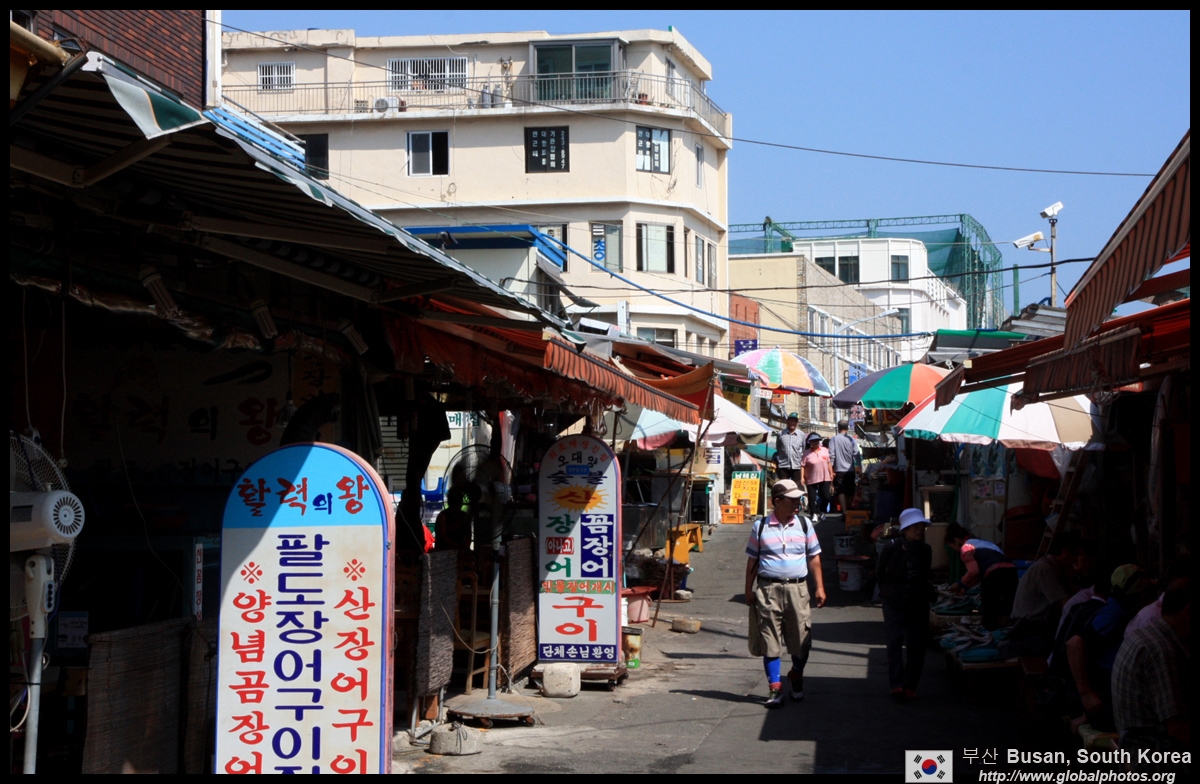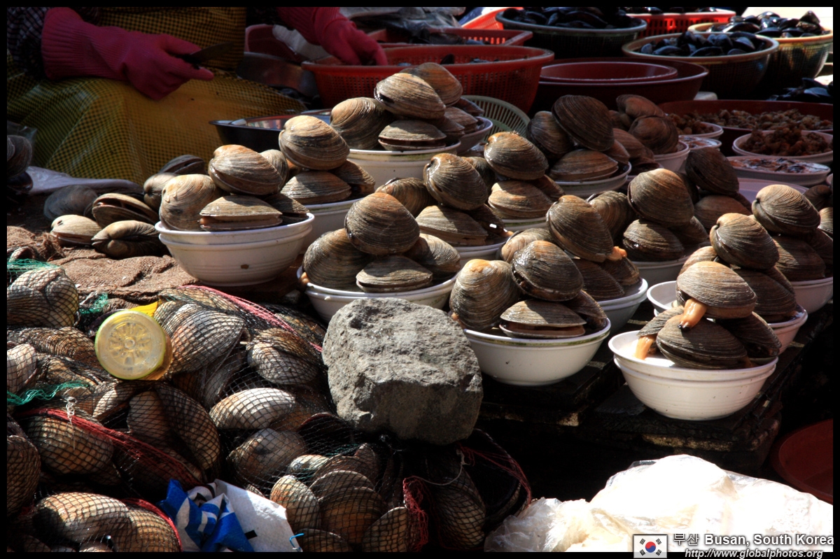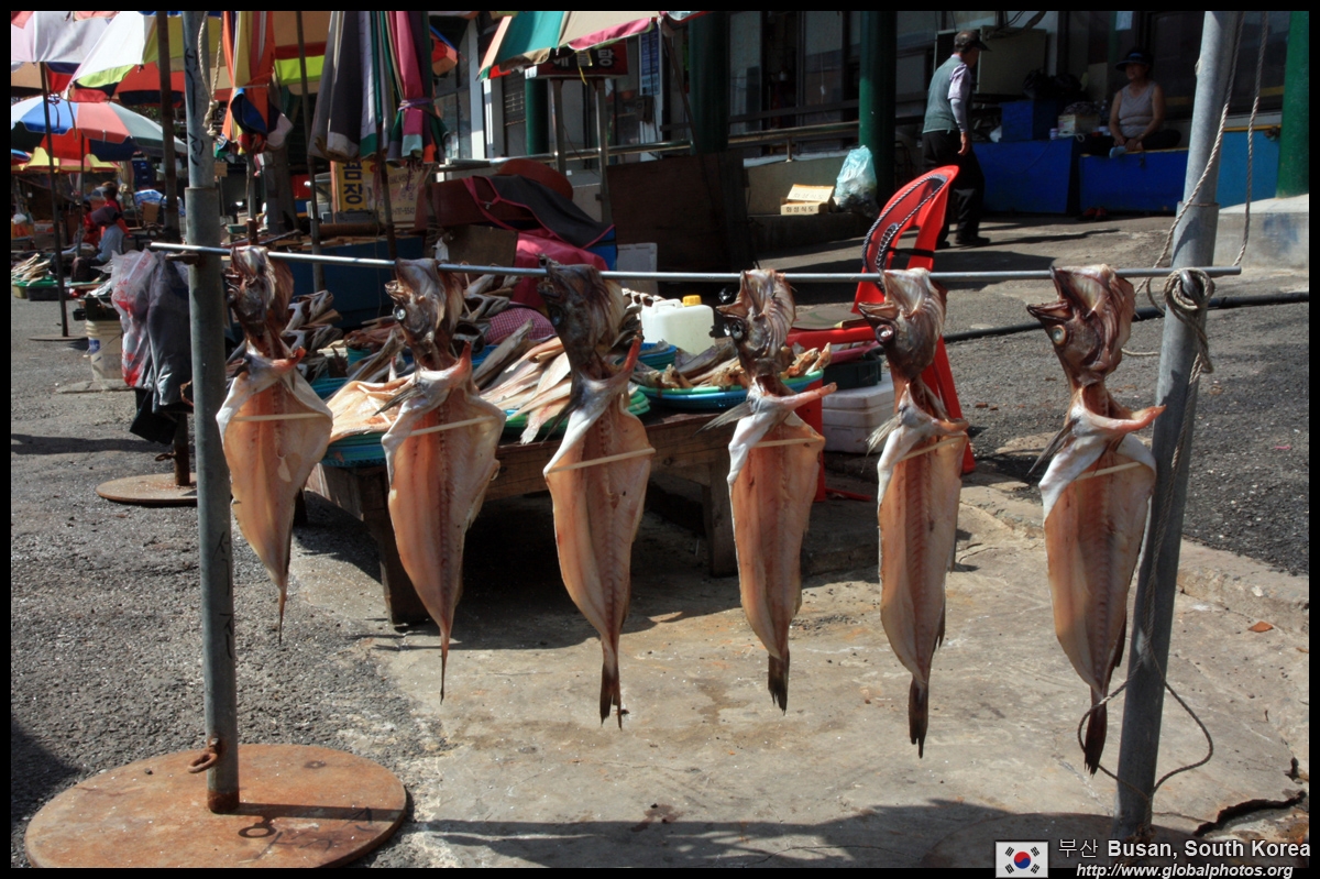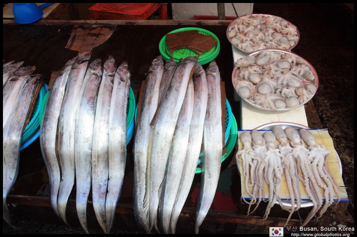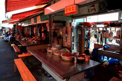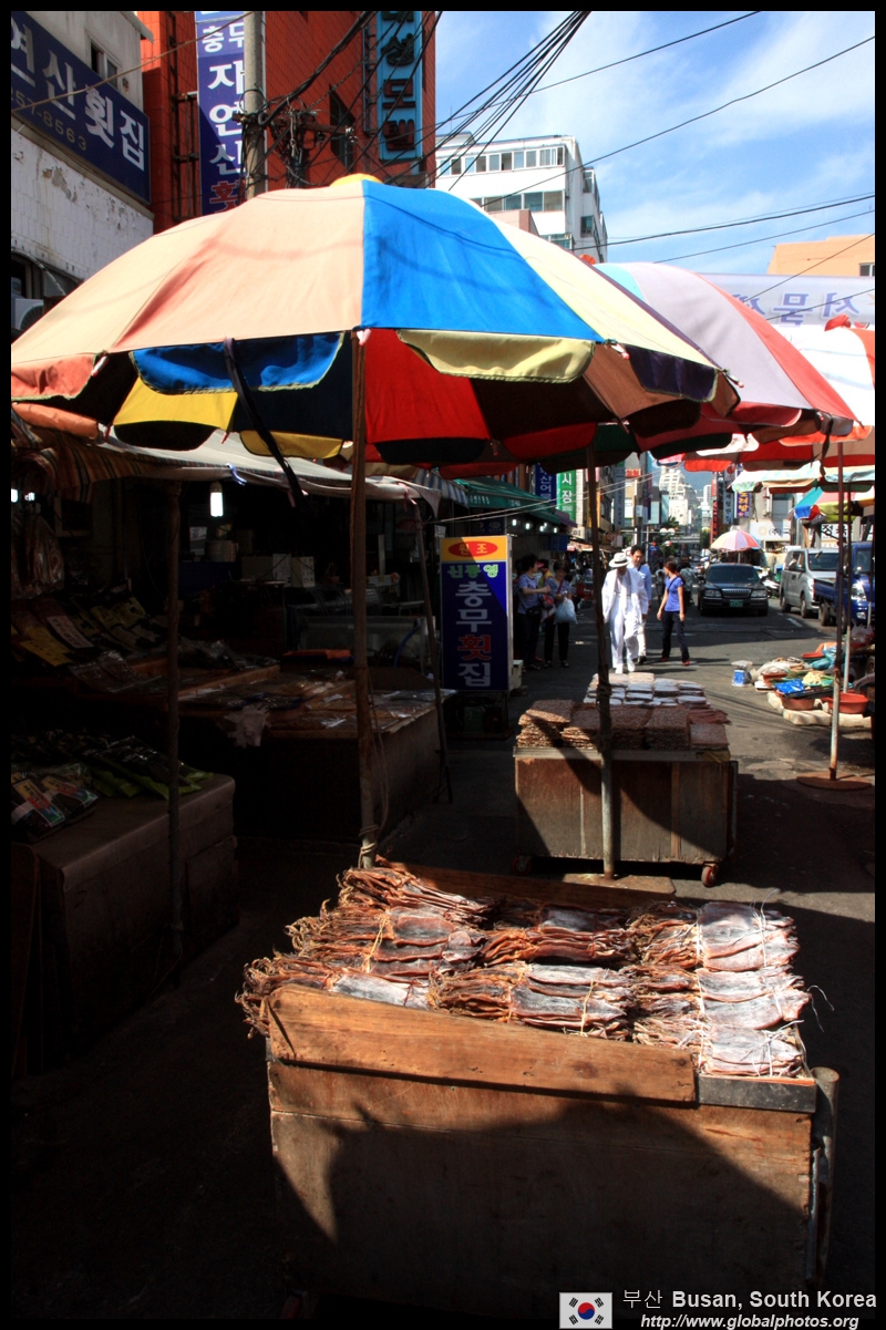 Welcome to Korea's largest fish market. Notice most of the vendors are women. There is a reason for this - while the men go out to sea to fish, the women handle the shops back home.