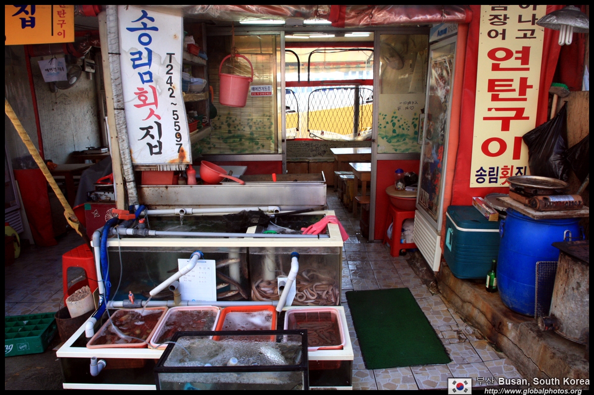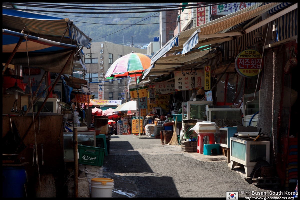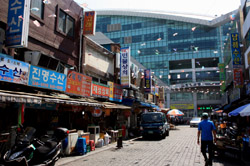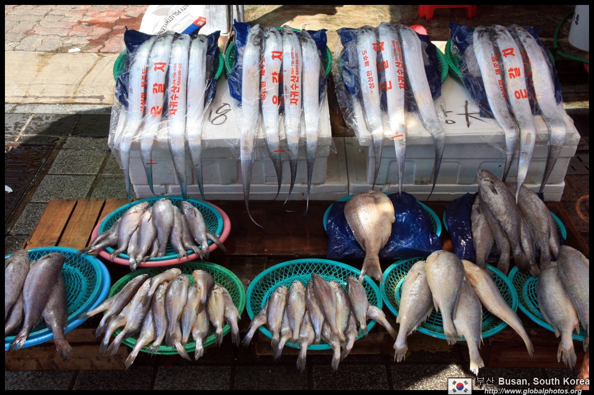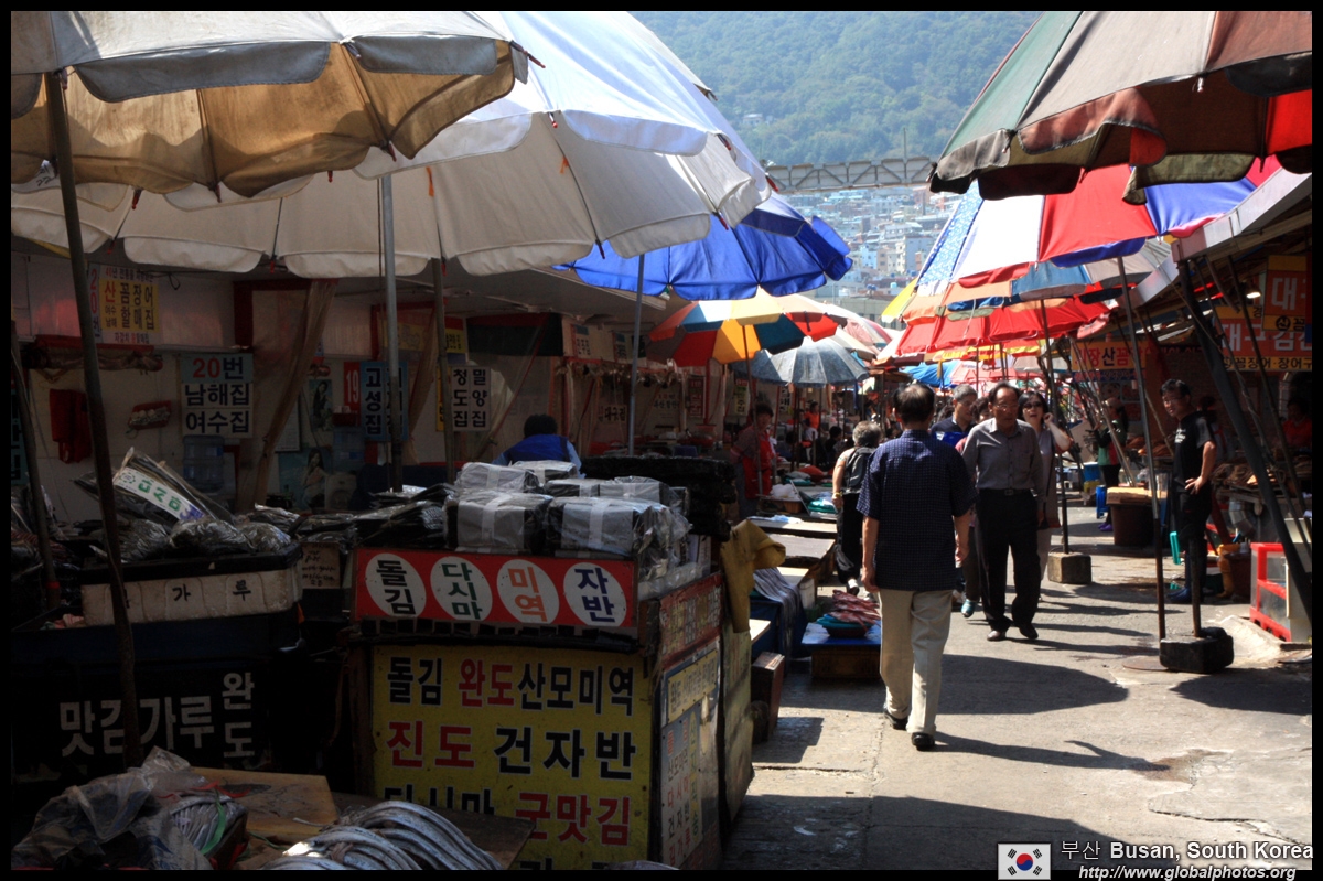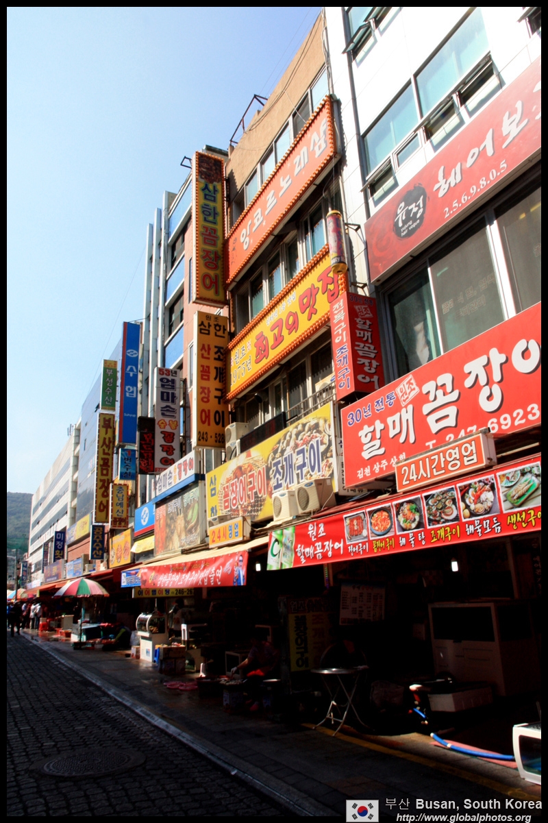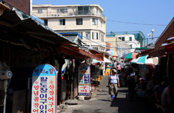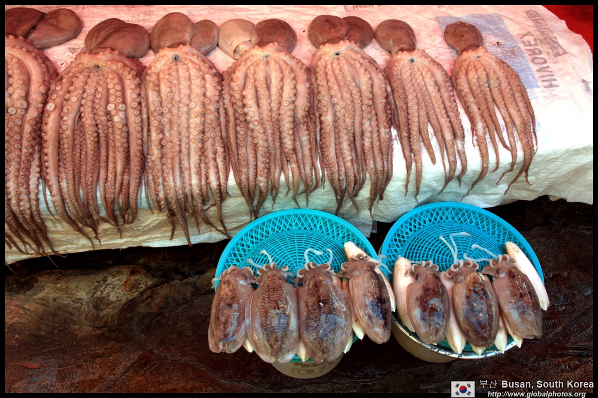 Welcome to Korea's largest fish market. Notice most of the vendors are women. There is a reason for this - while the men go out to sea to fish, the women handle the shops back home.