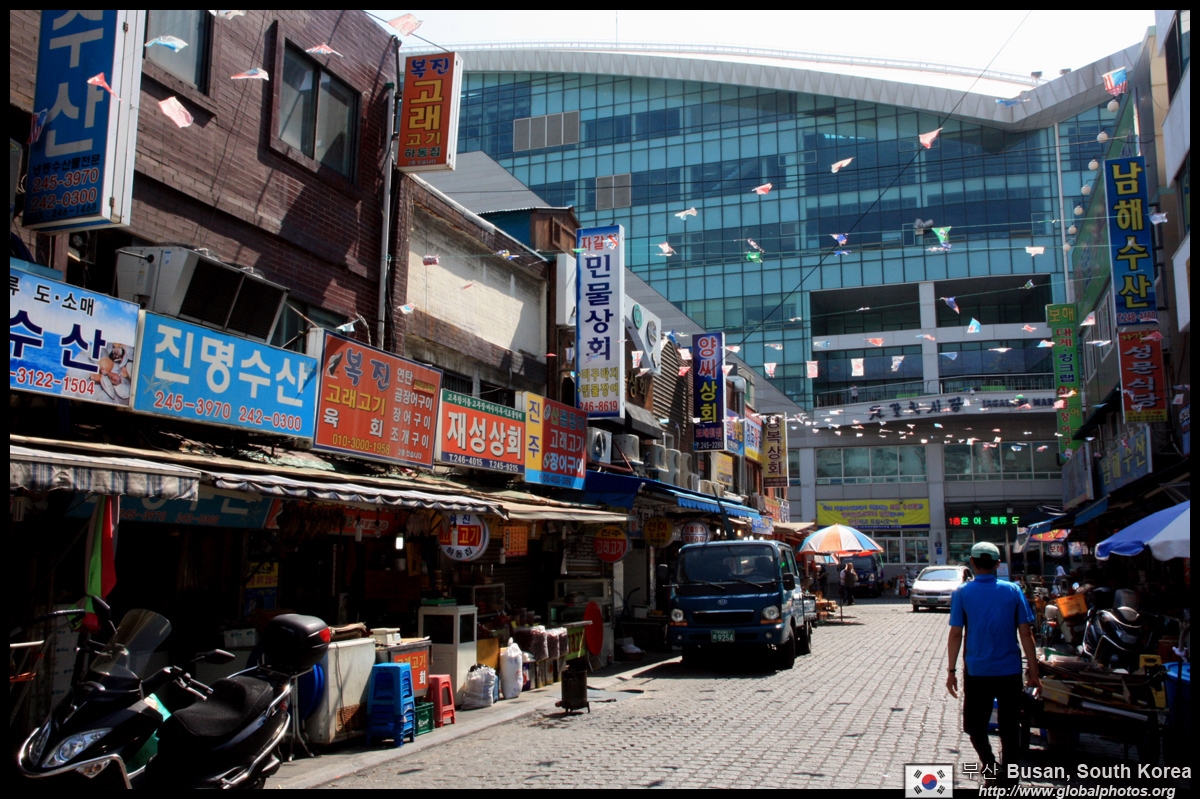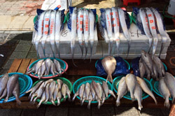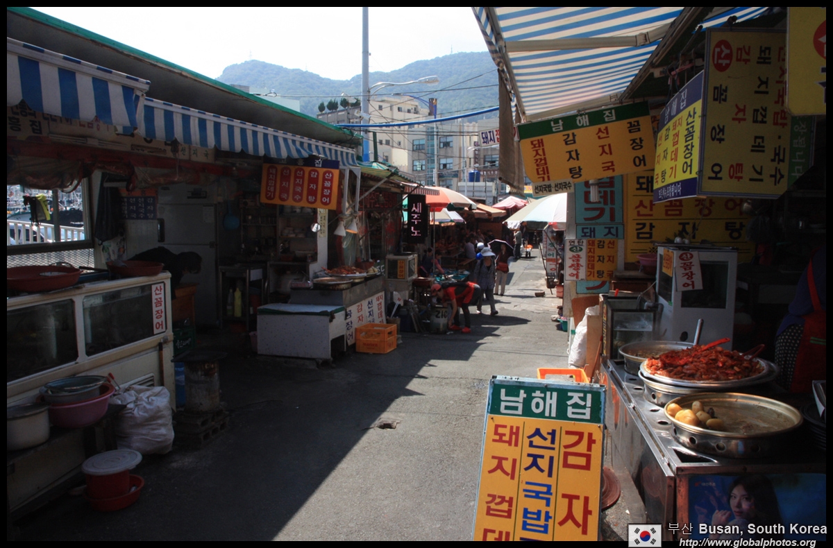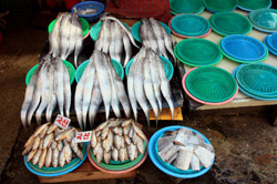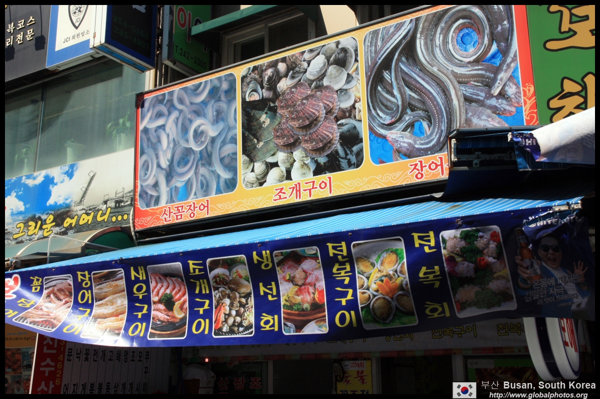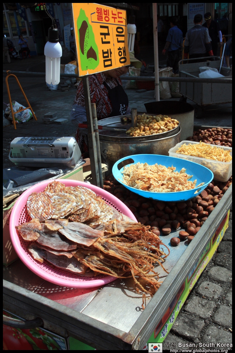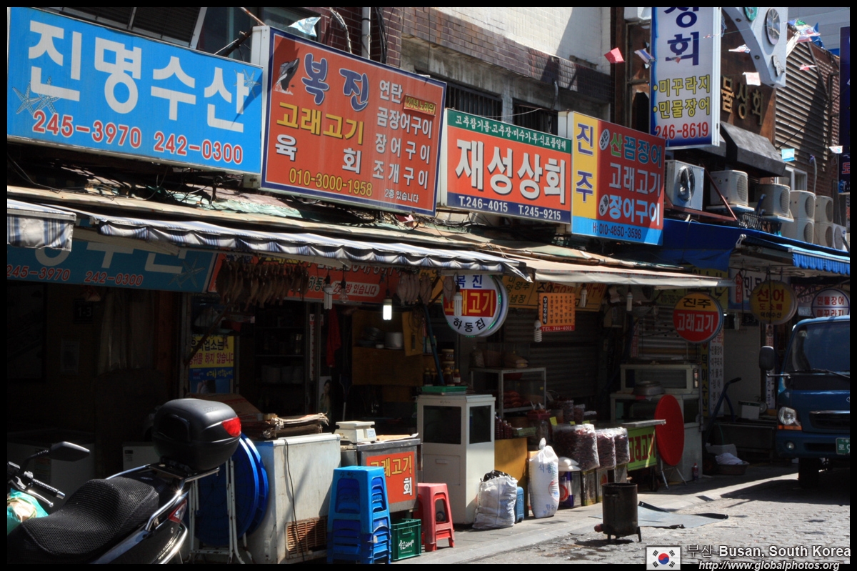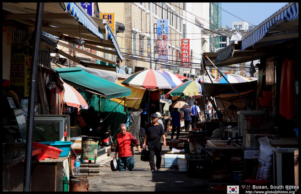 Welcome to Korea's largest fish market. Notice most of the vendors are women. There is a reason for this - while the men go out to sea to fish, the women handle the shops back home.