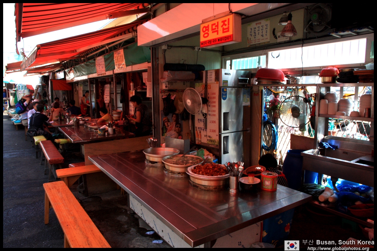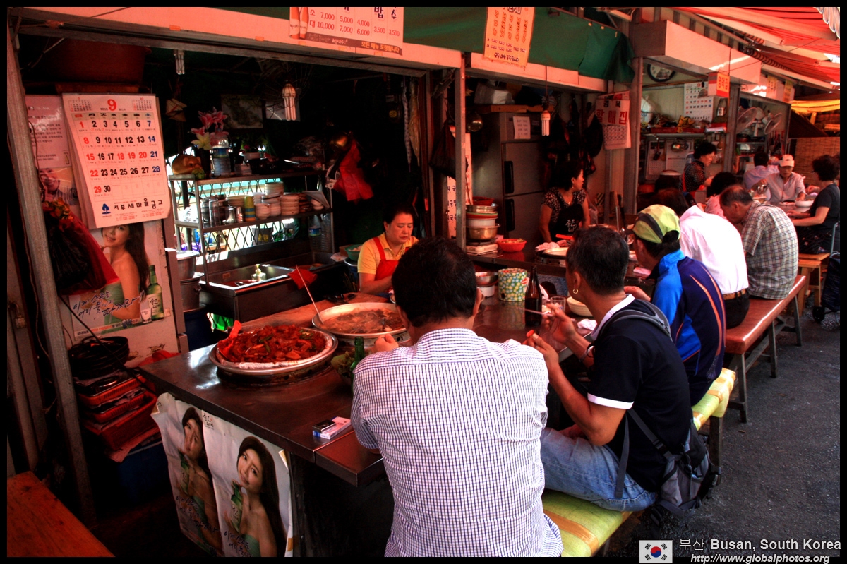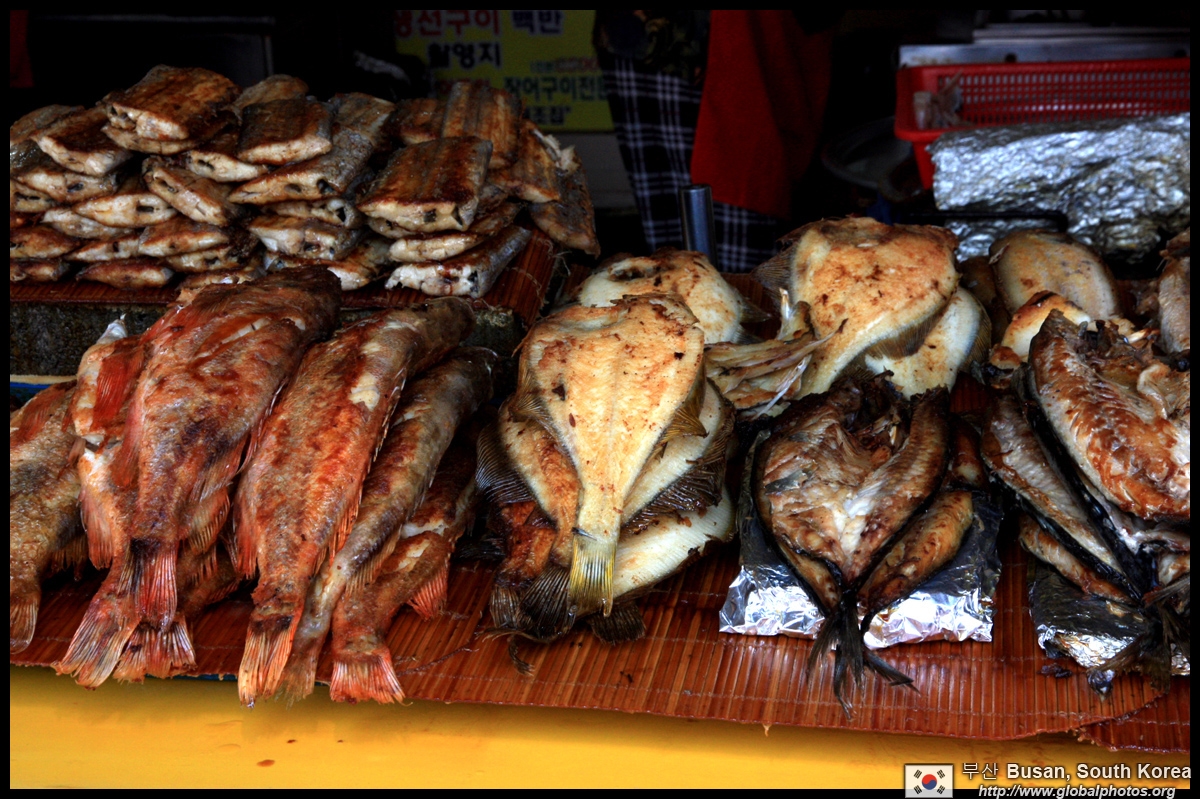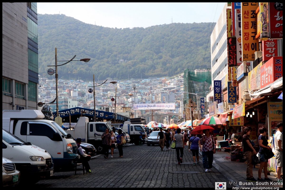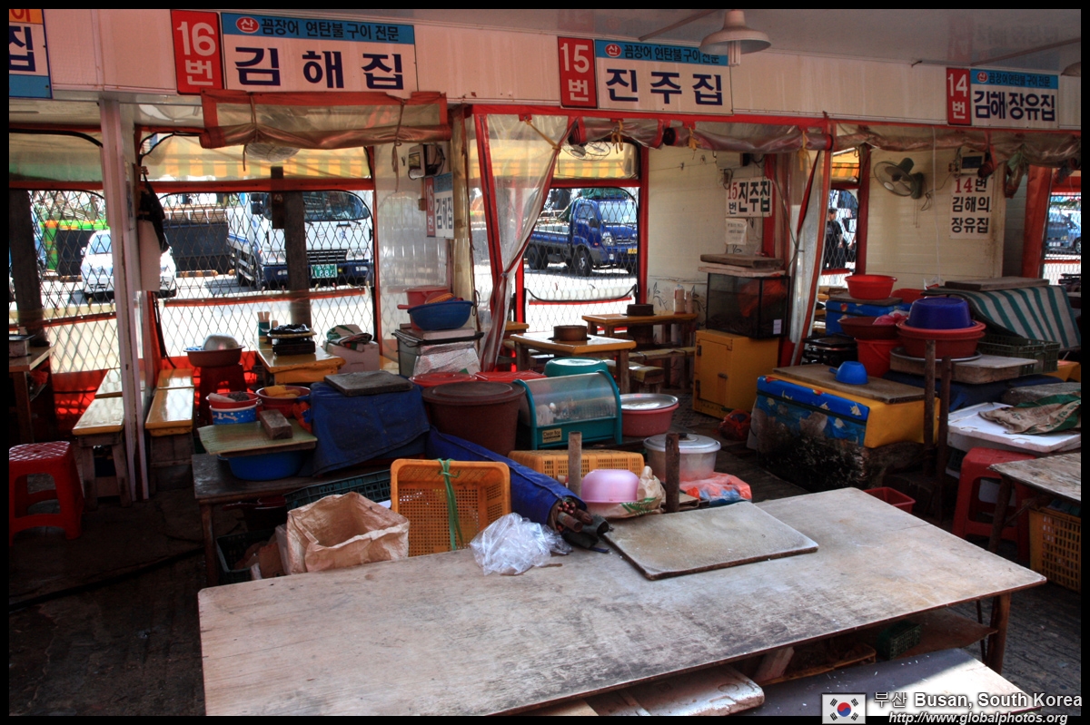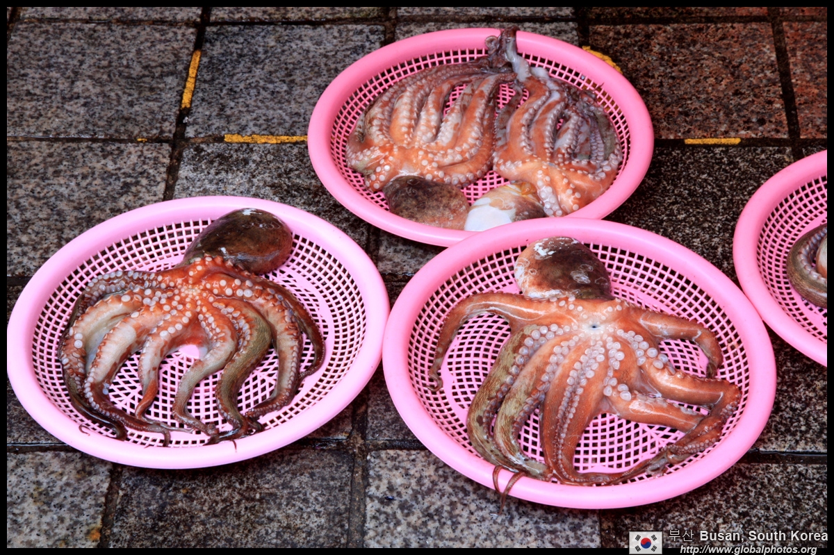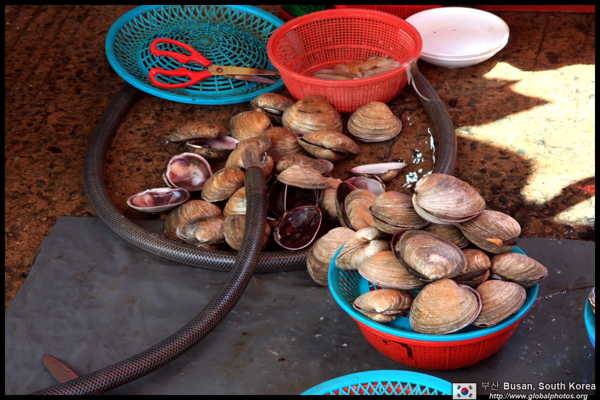 Welcome to Korea's largest fish market. Notice most of the vendors are women. There is a reason for this - while the men go out to sea to fish, the women handle the shops back home.
