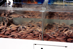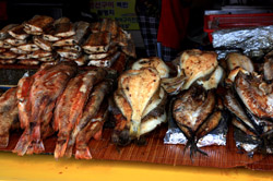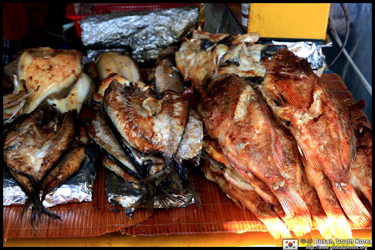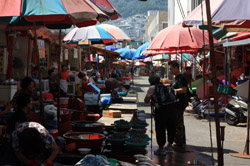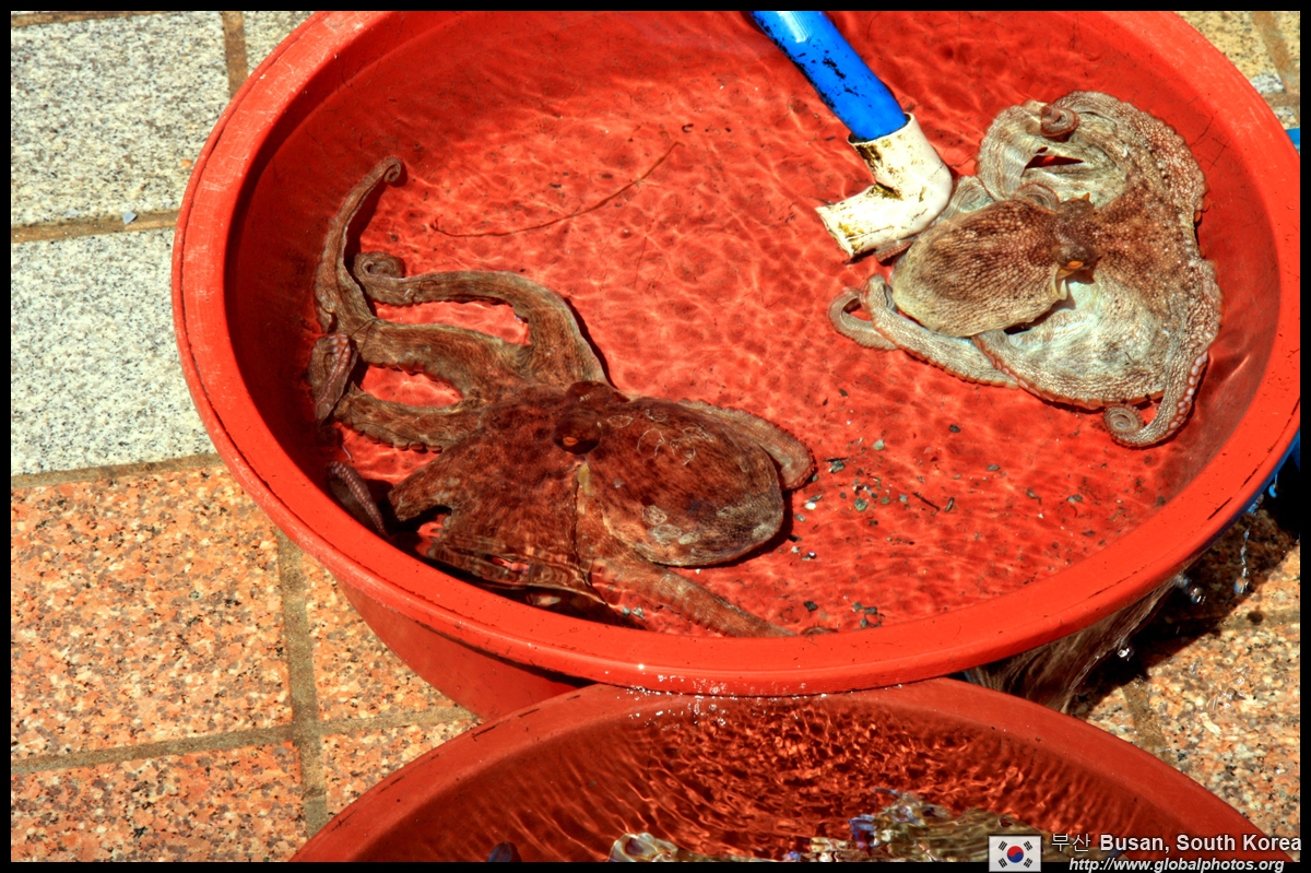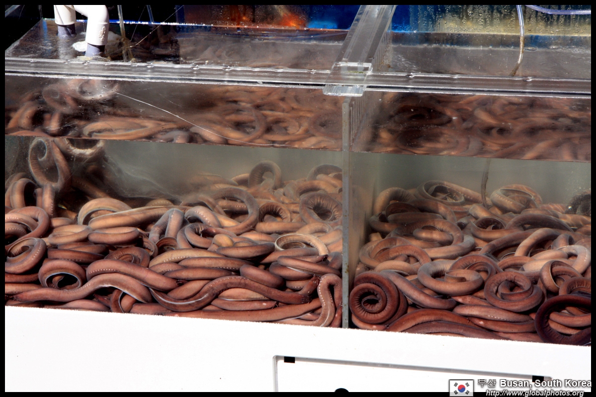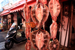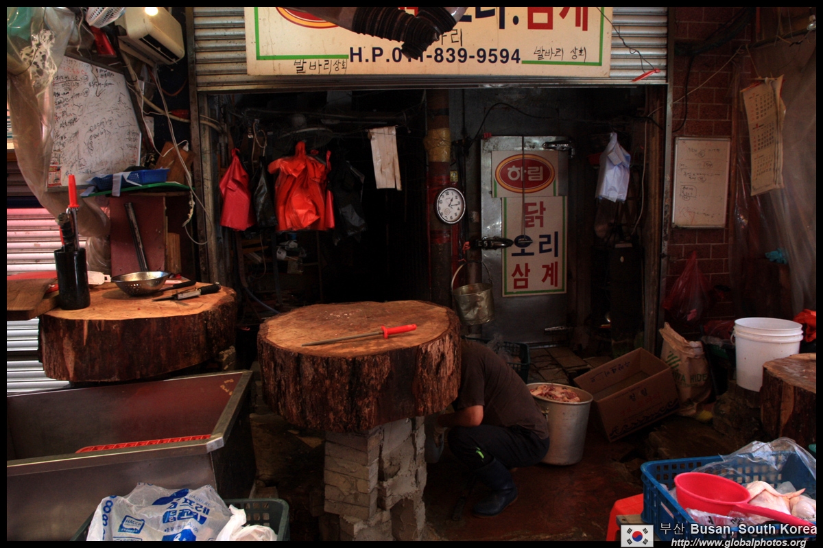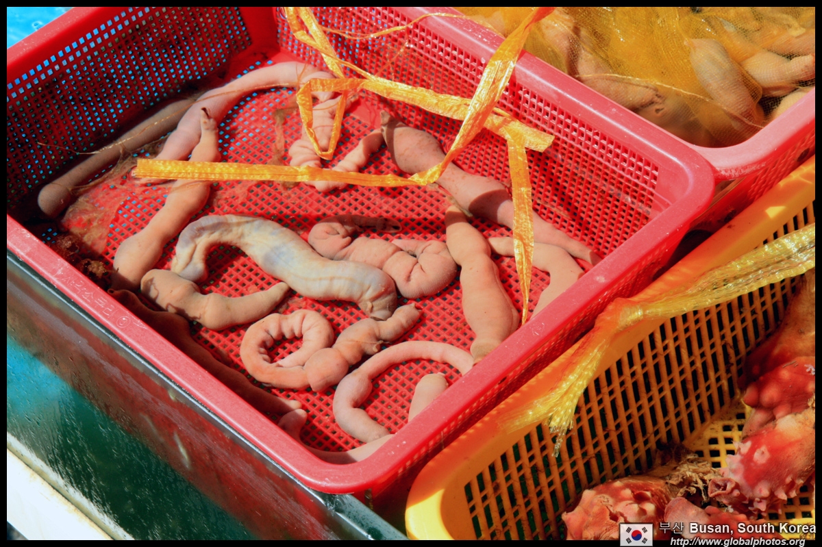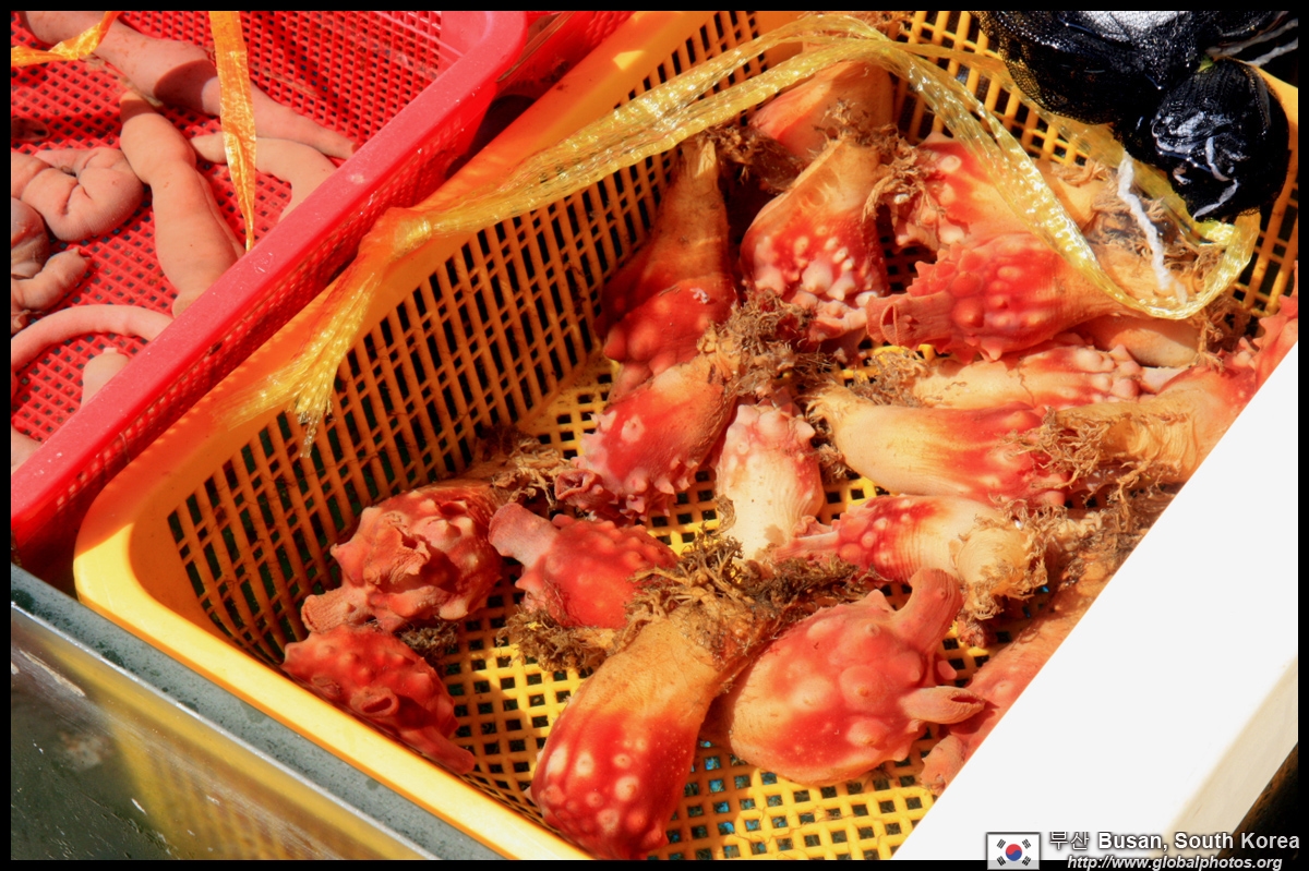 Welcome to Korea's largest fish market. Notice most of the vendors are women. There is a reason for this - while the men go out to sea to fish, the women handle the shops back home.