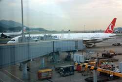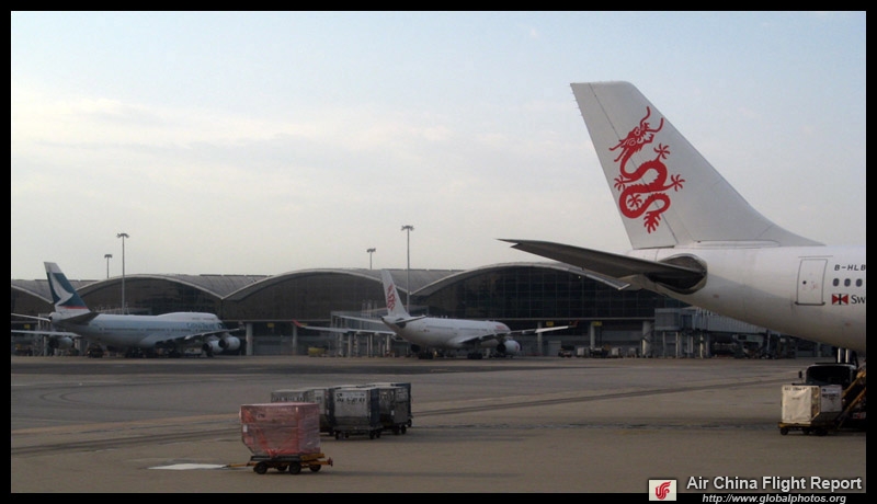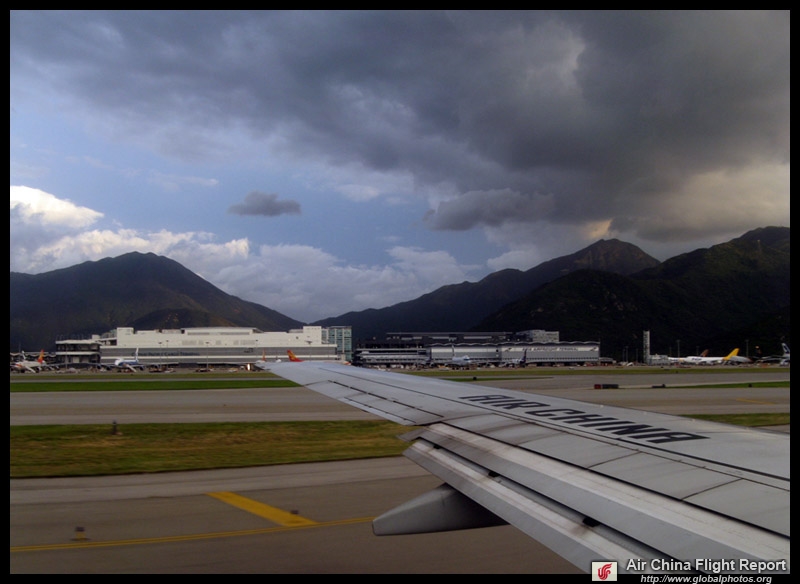 The Typhoon 1 signal is just a preliminary warning that a storm is within 800km of Hong Kong. It was still bright and sunny when I reached the airport. I had already checked in earlier in the day at the Airport Express counter, so leisurely made my way to the gate. Strangely, Air China stops all online check-in 3 hours before departure, which I thought was excessively early.
