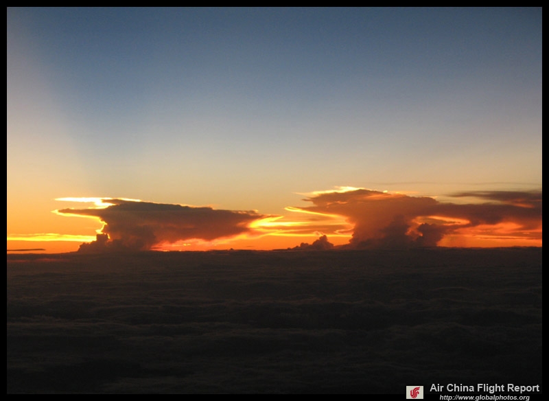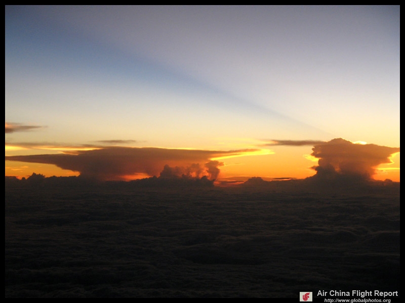 Considering it was Typhoon 3, the take-off was very smooth and uneventful. The sunset was very nice and lasted quite a long time.
