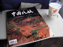 Strangely, Air China did not have its own in-flight magazine. Instead, they provide the generic publication which is used by other Chinese carriers as well. It was a little odd looking at a China Southern ad while flying on an Air China plane.