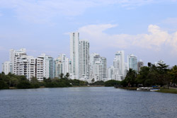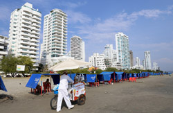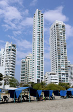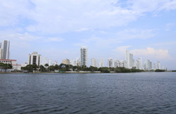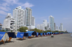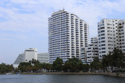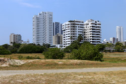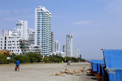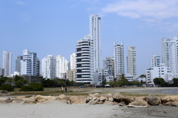 Beyond the city walls, Bocagrande is a huge contrast to the historic city. Residential highrises create a skyline with beautiful sea views and beaches within walking distance from their doorsteps. This area is home to posh hotels, although those who want a more humble experience should stay in a historic home within the city walls.