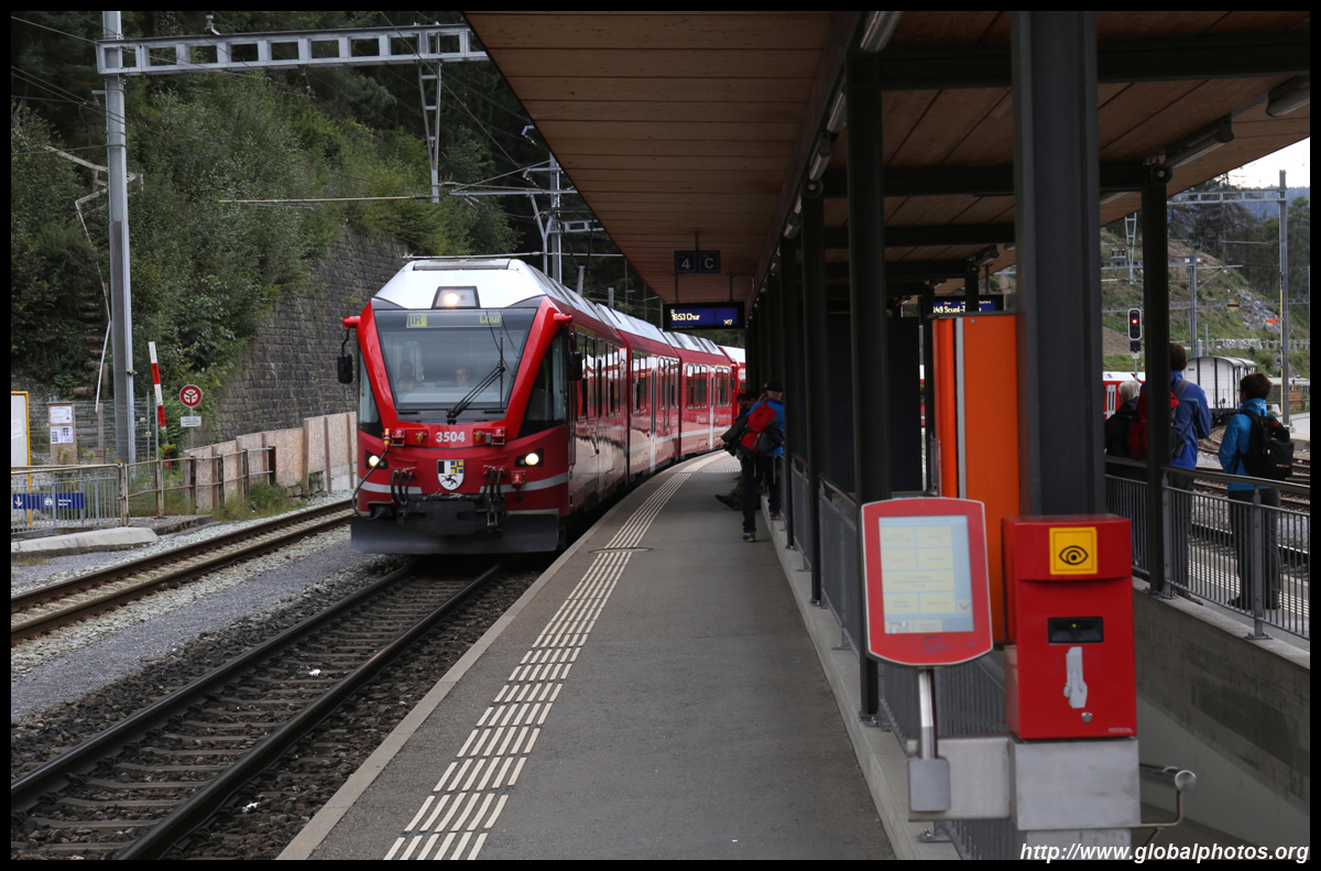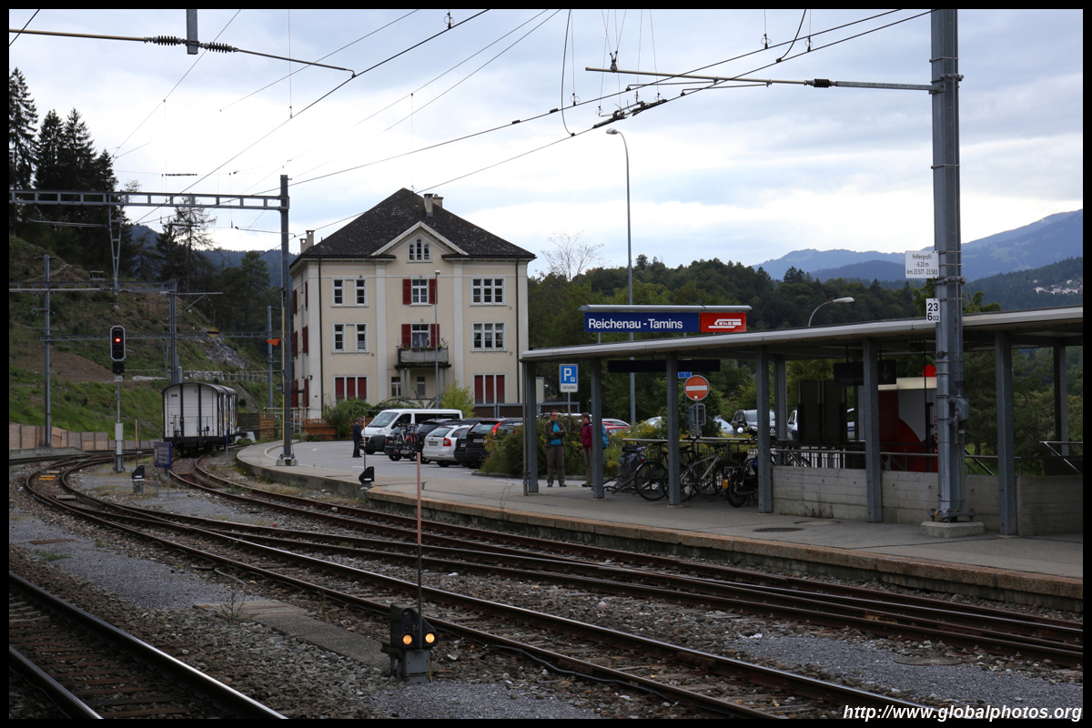 The 4th and final transfer is at Reichenau-Tamins bound for St. Moritz, still almost 2 hours away. The station is fairly basic but it is only a short wait for the next train.