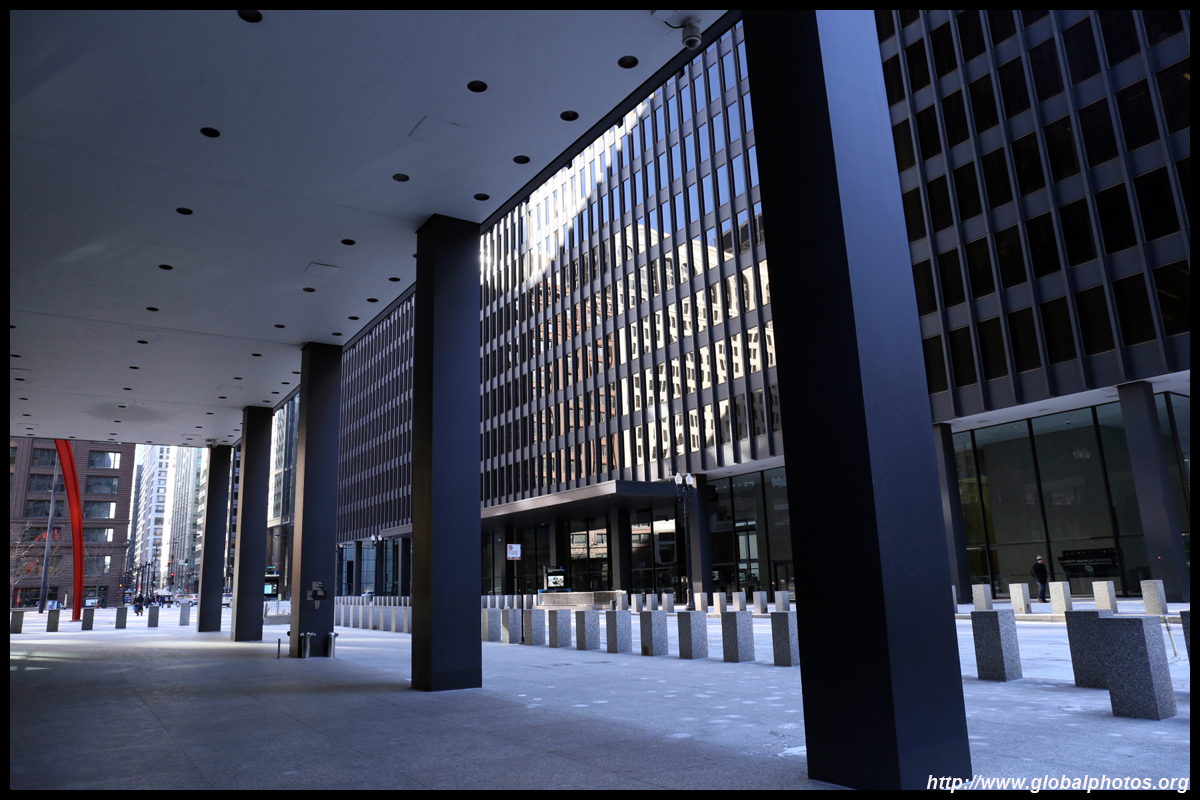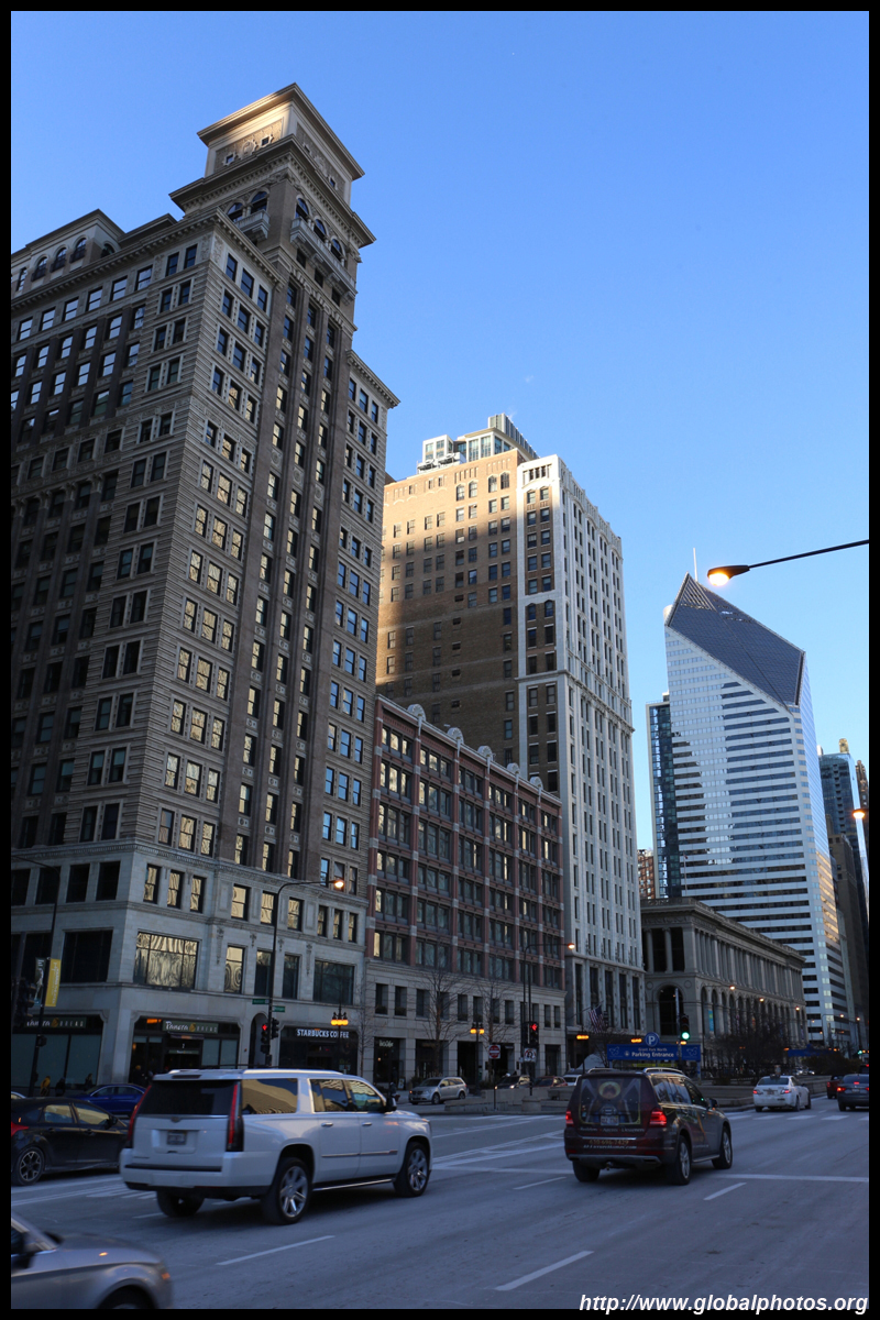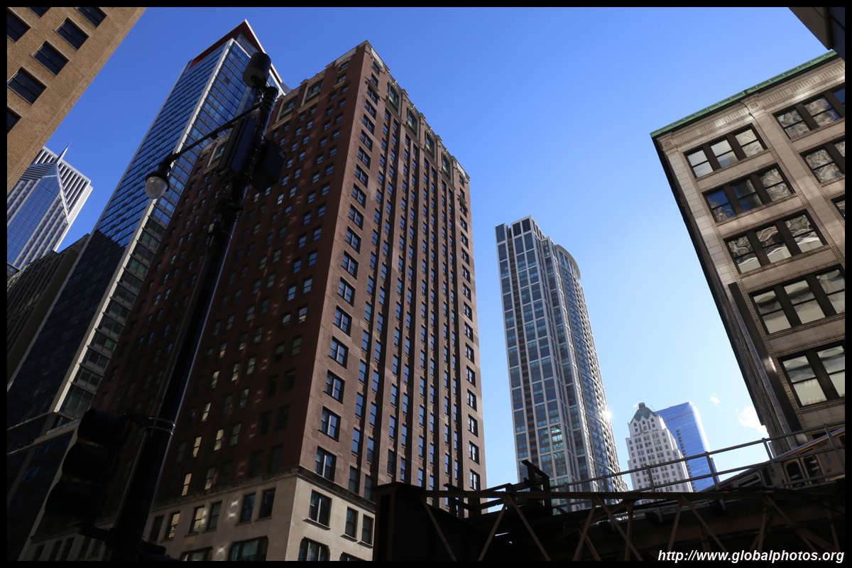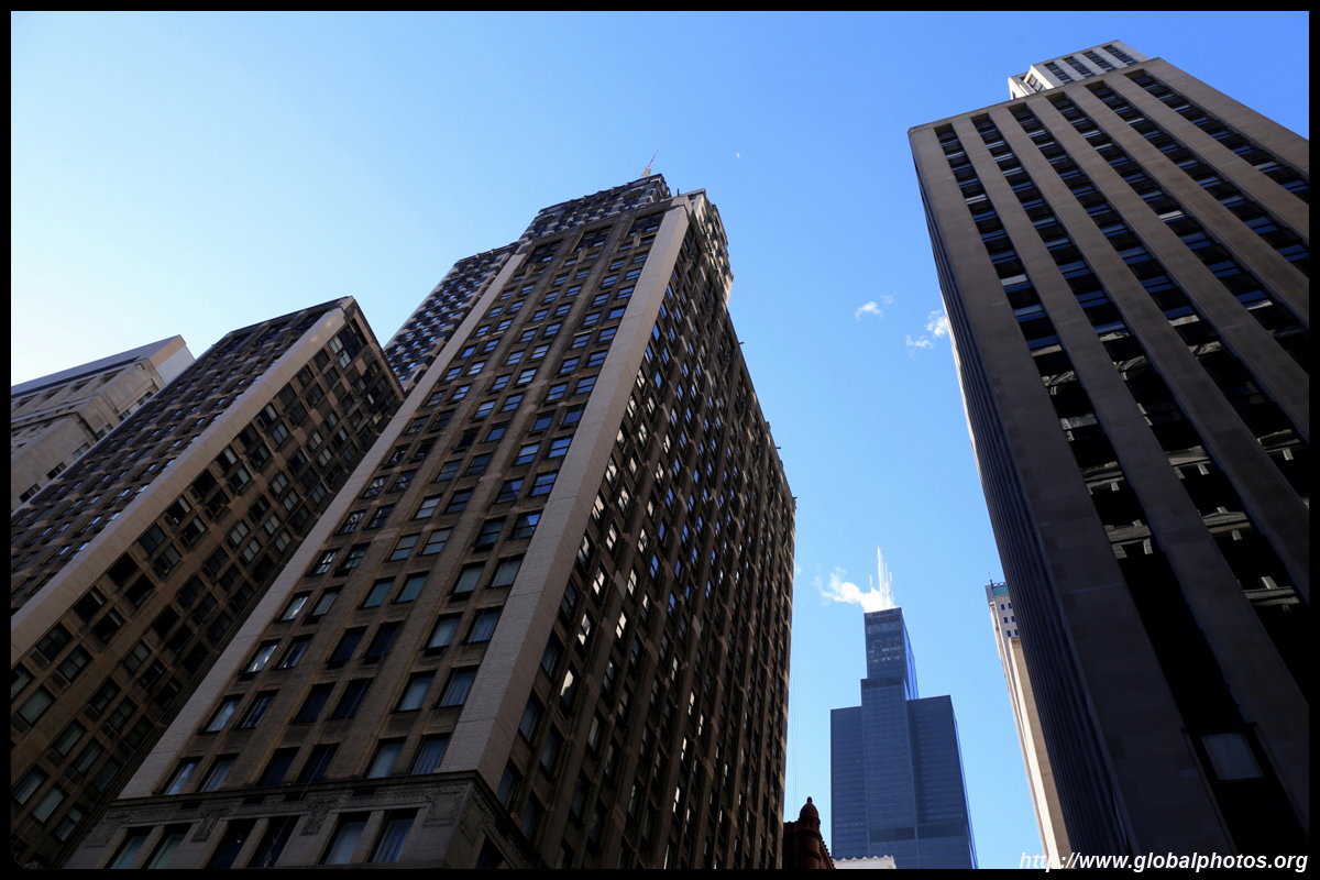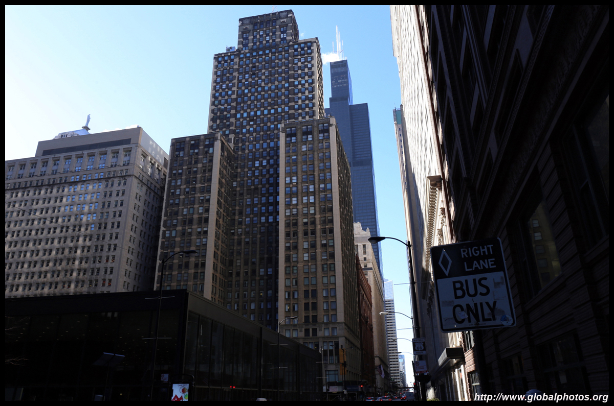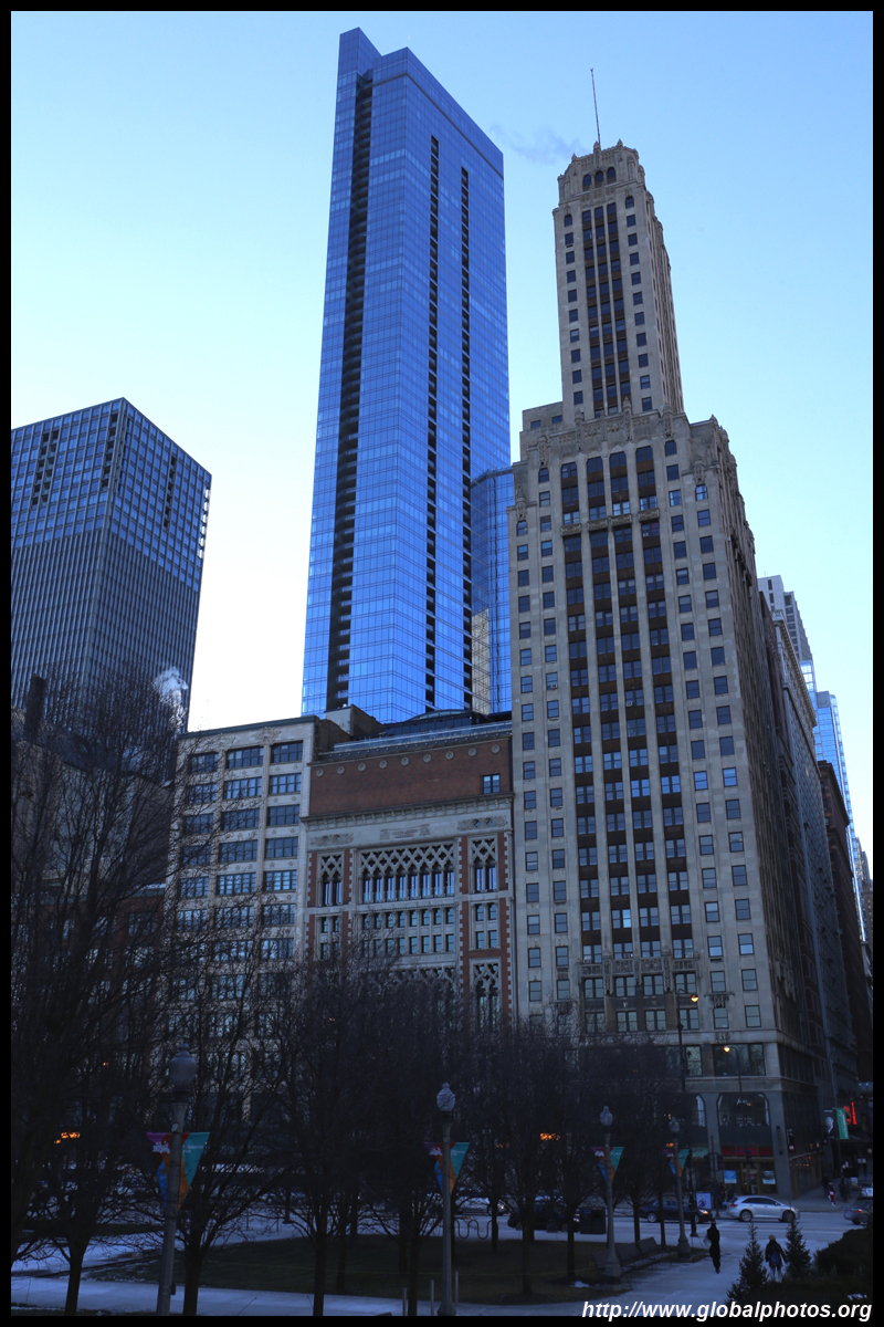 With many tall buildings next to each other, the wind tunnel effect is quite strong here. Signs warning of falling ice are everywhere. Even Willis Tower, once the world's tallest building, struggles to peek from behind.