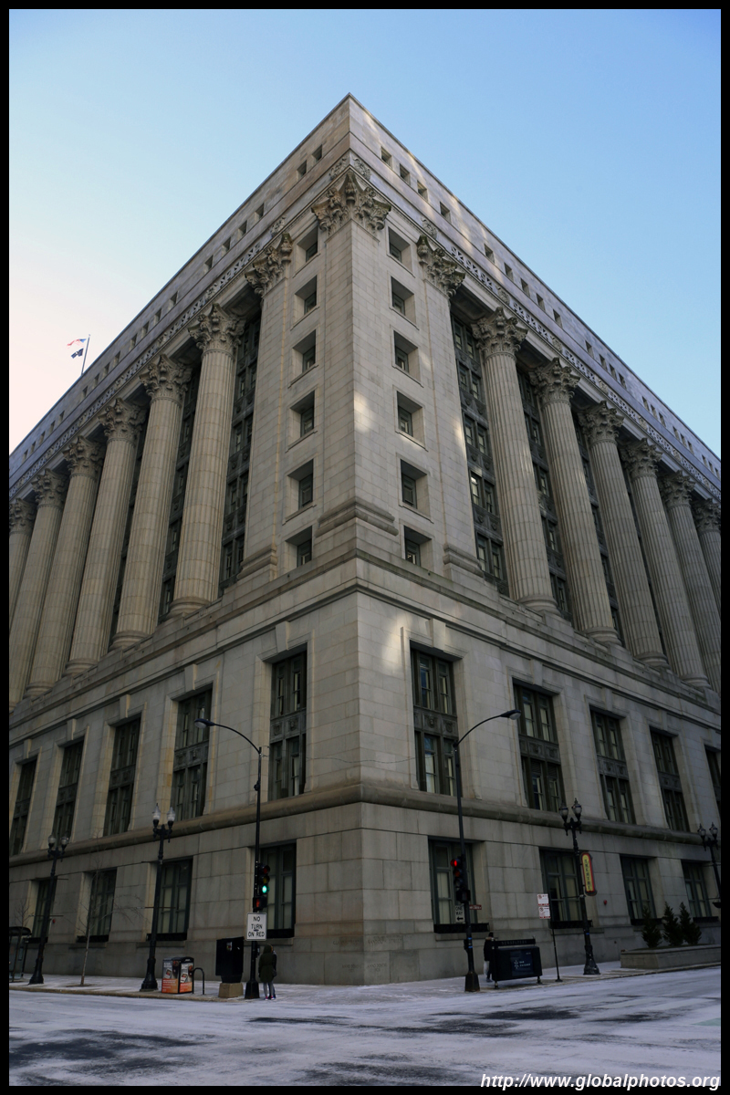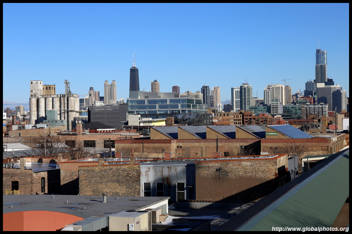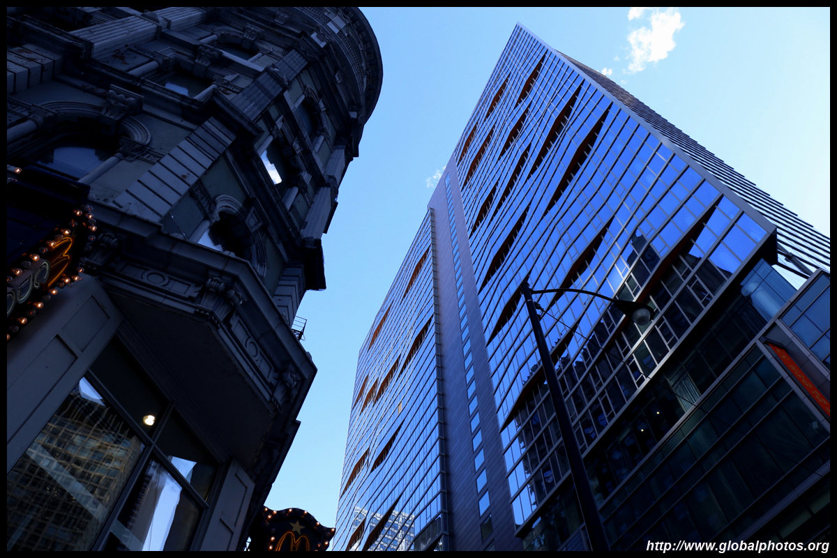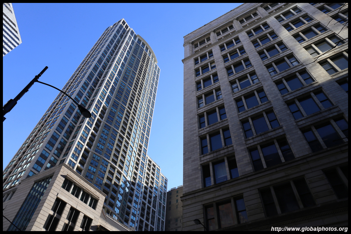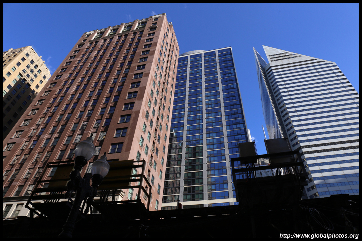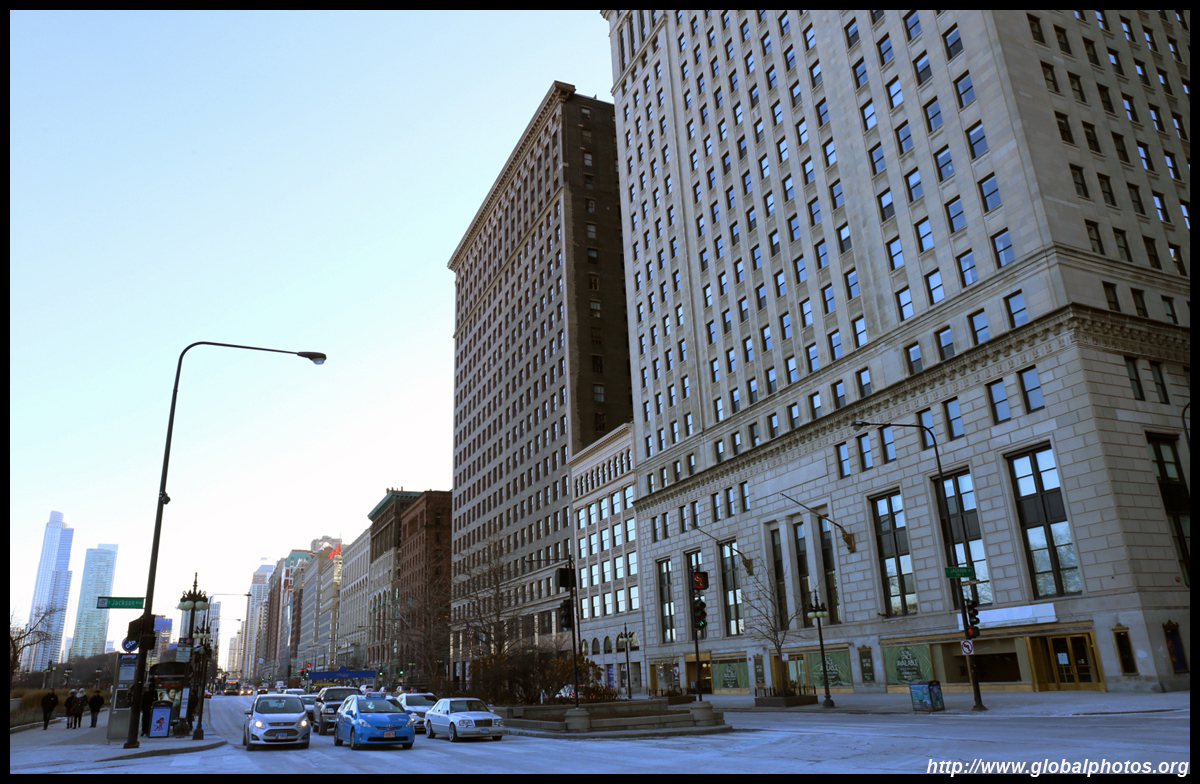 With many tall buildings next to each other, the wind tunnel effect is quite strong here. Signs warning of falling ice are everywhere. Even Willis Tower, once the world's tallest building, struggles to peek from behind.