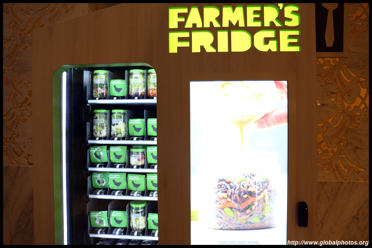 I have never seen a fresh salad vending machine before, and it appears the items inside are still fresh.