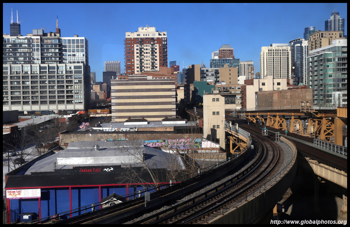 The Green and Purple Lines just west of the Loop have several stations with skyline views.