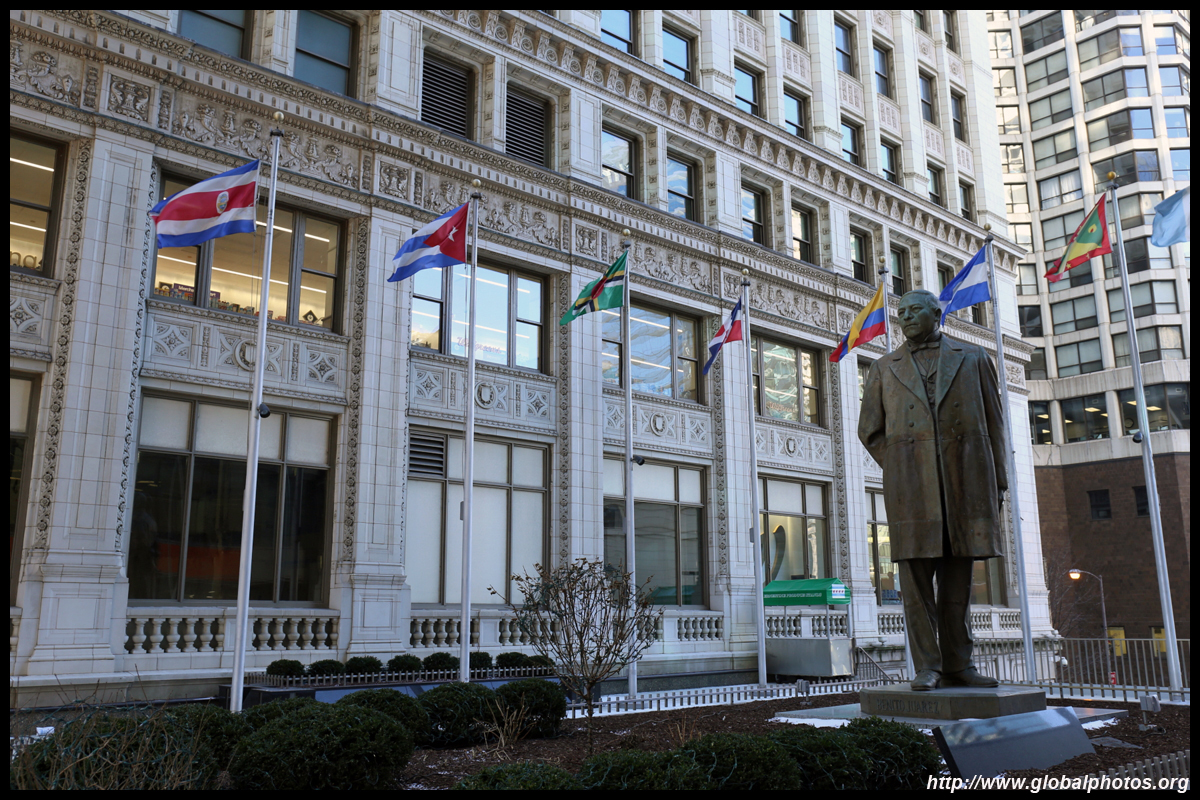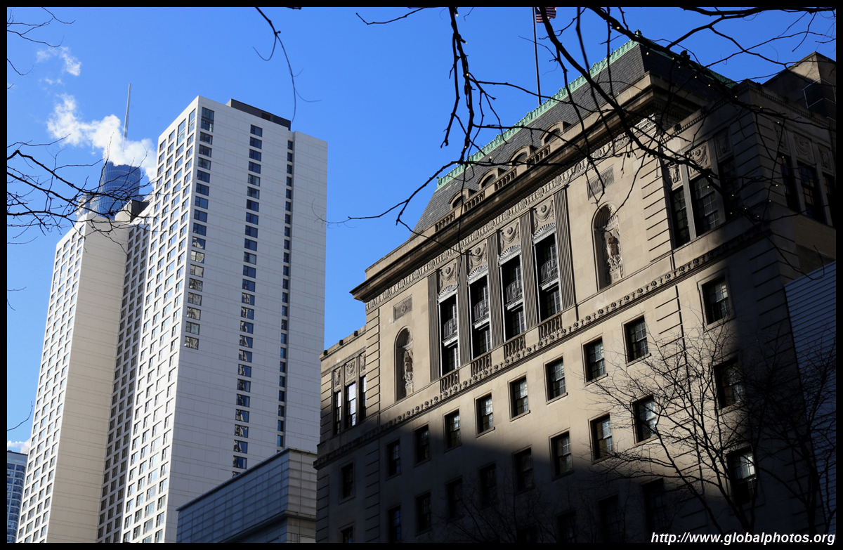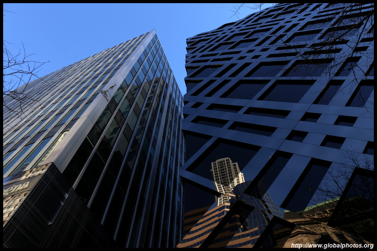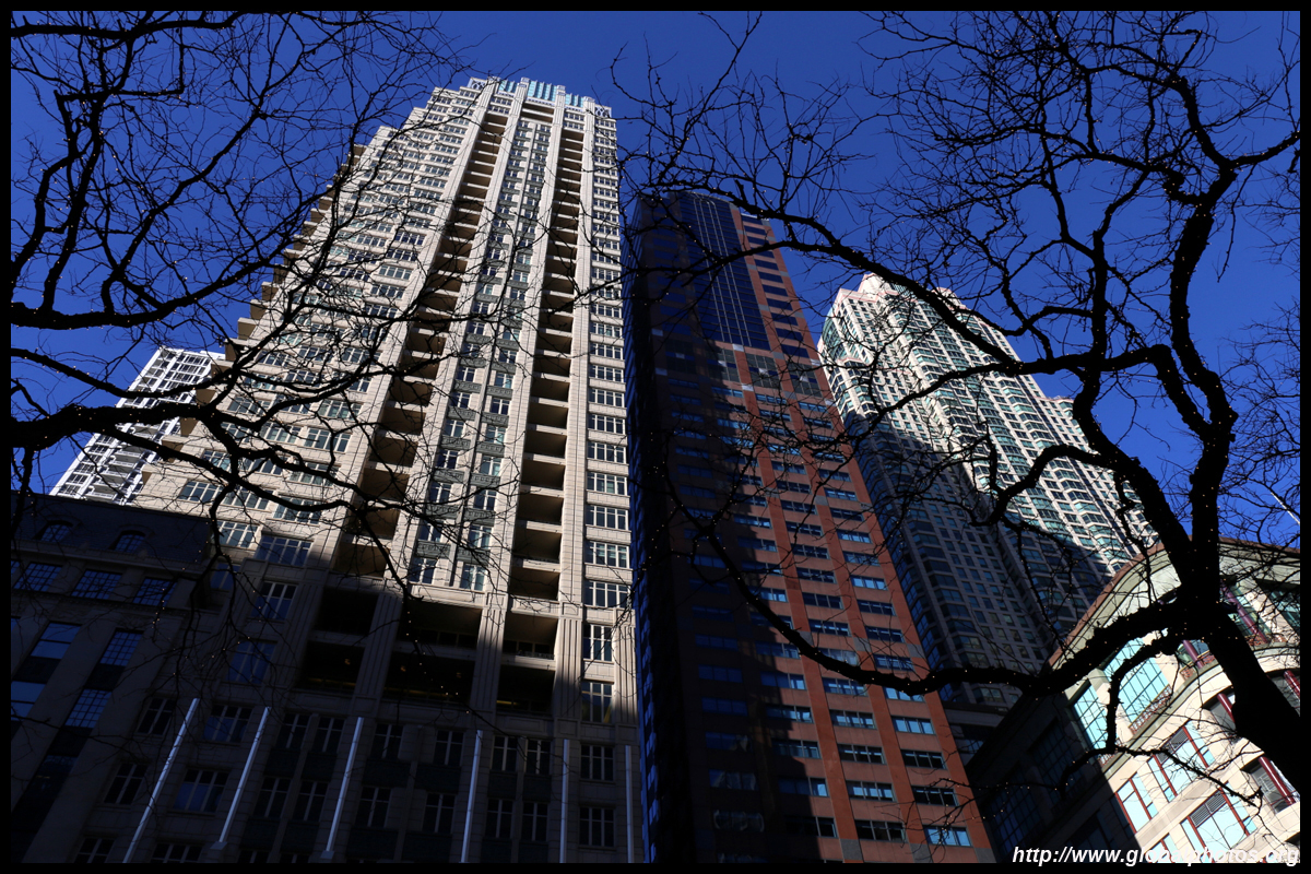 Plenty of other non-glassy skyscrapers lined both sides of the street heading north.