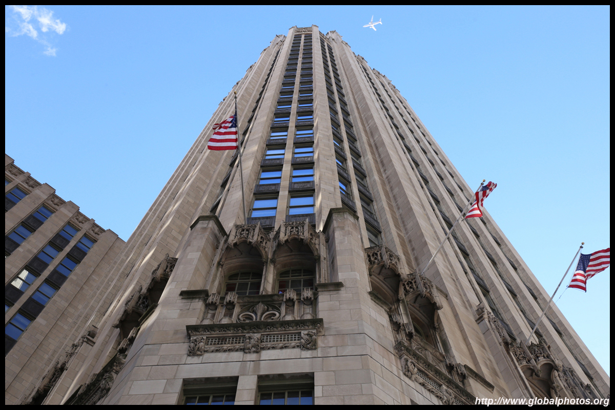 The Tribune Tower opened in 1925 and was inspired by France's Rouen cathedral.