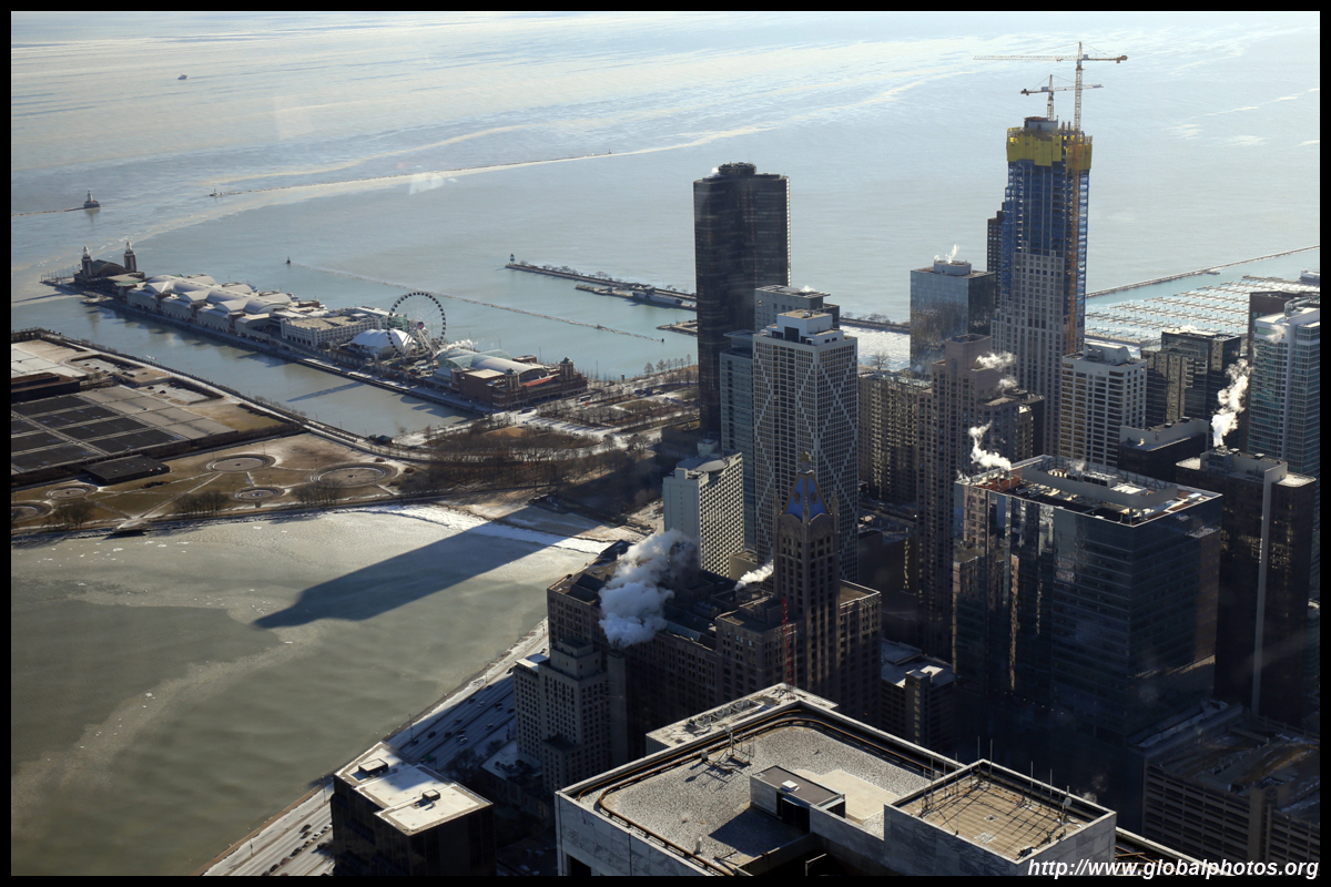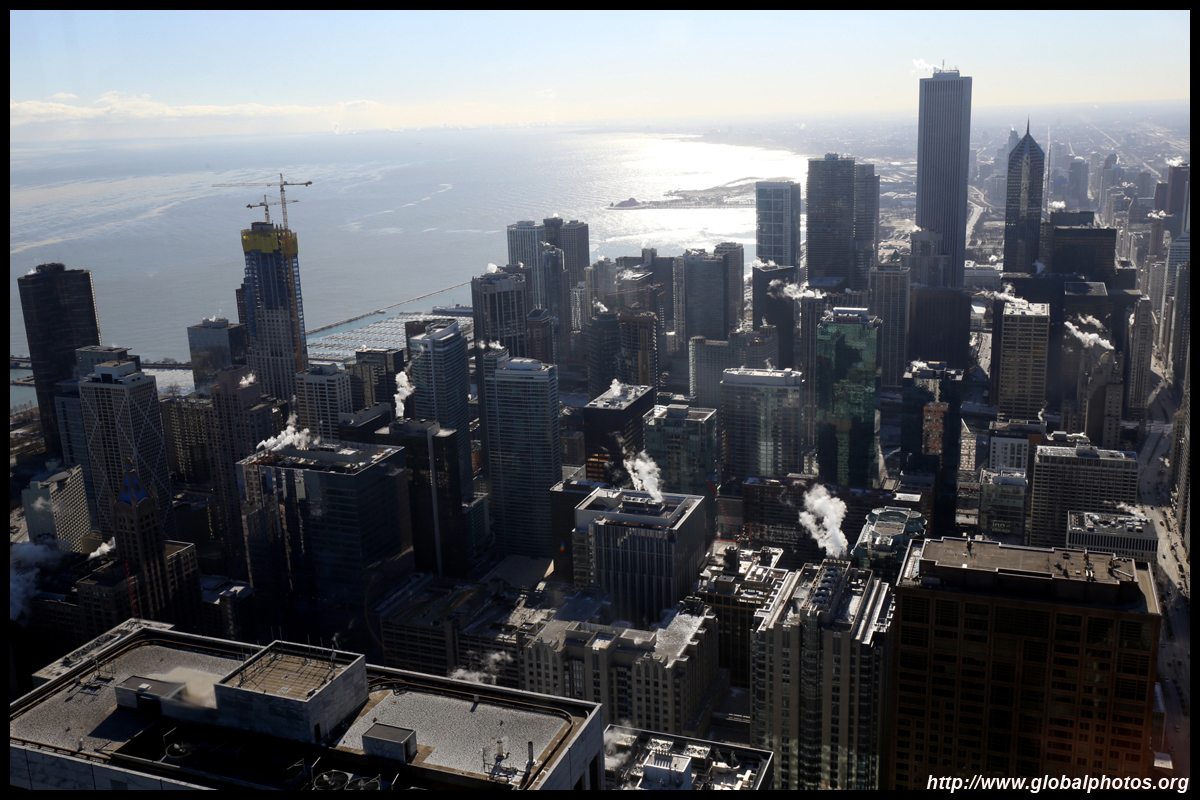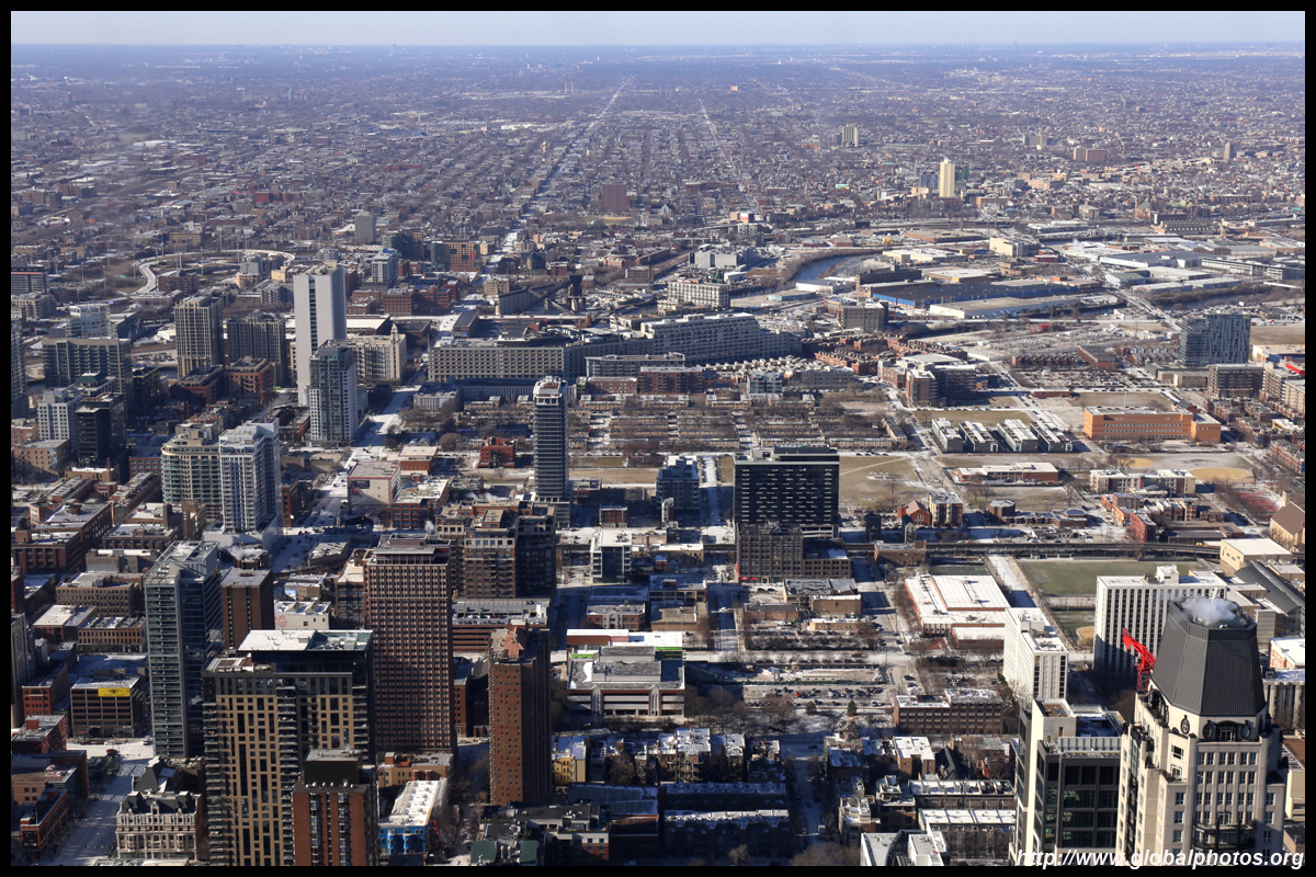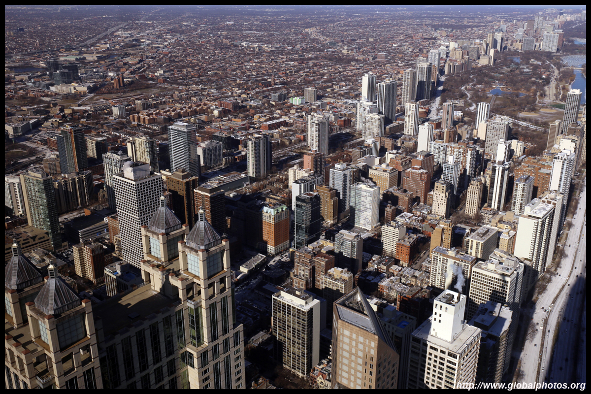 While tourists pay a fortune to go up the observation deck, it is possible to visit the restaurant instead on the 95th floor for both a meal and the view at prety much a similar price. Looking west, the density tapers off dramatically not that far away.