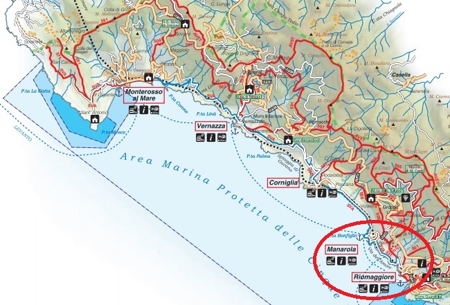 With the afternoon still ahead, we continued east to the last town, Riomaggiore. This section of the coastal trail was the only one that was open during my entire Cinque Terre stay. It was only a quick 20 minute hop along paved tracks, a world different from the mountain hike earlier in the day. |