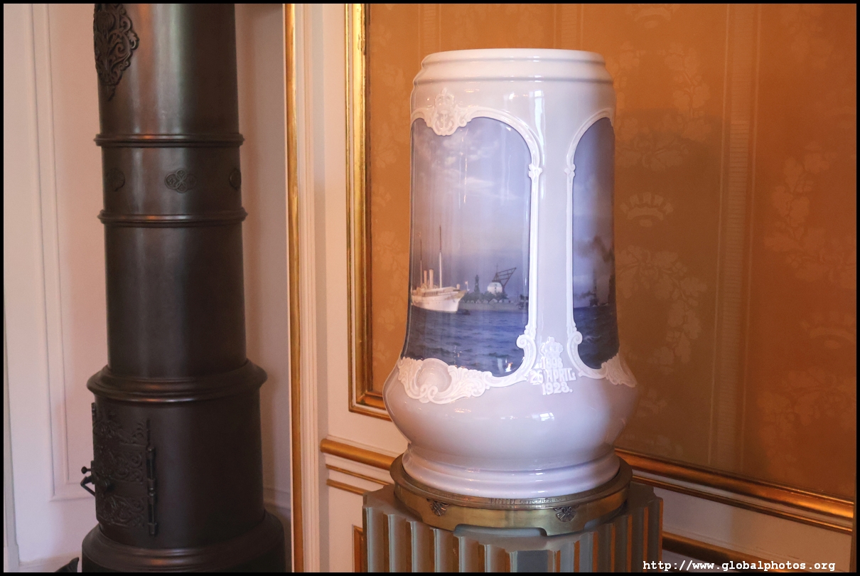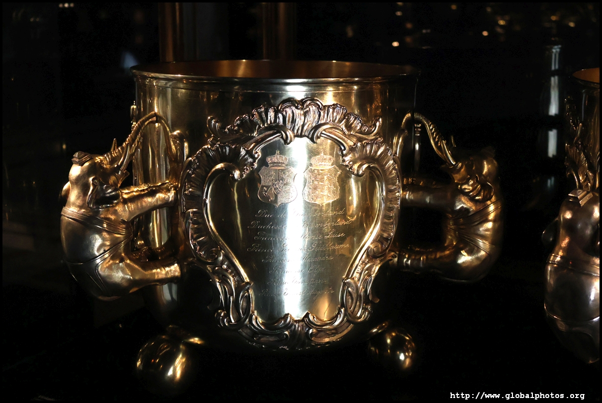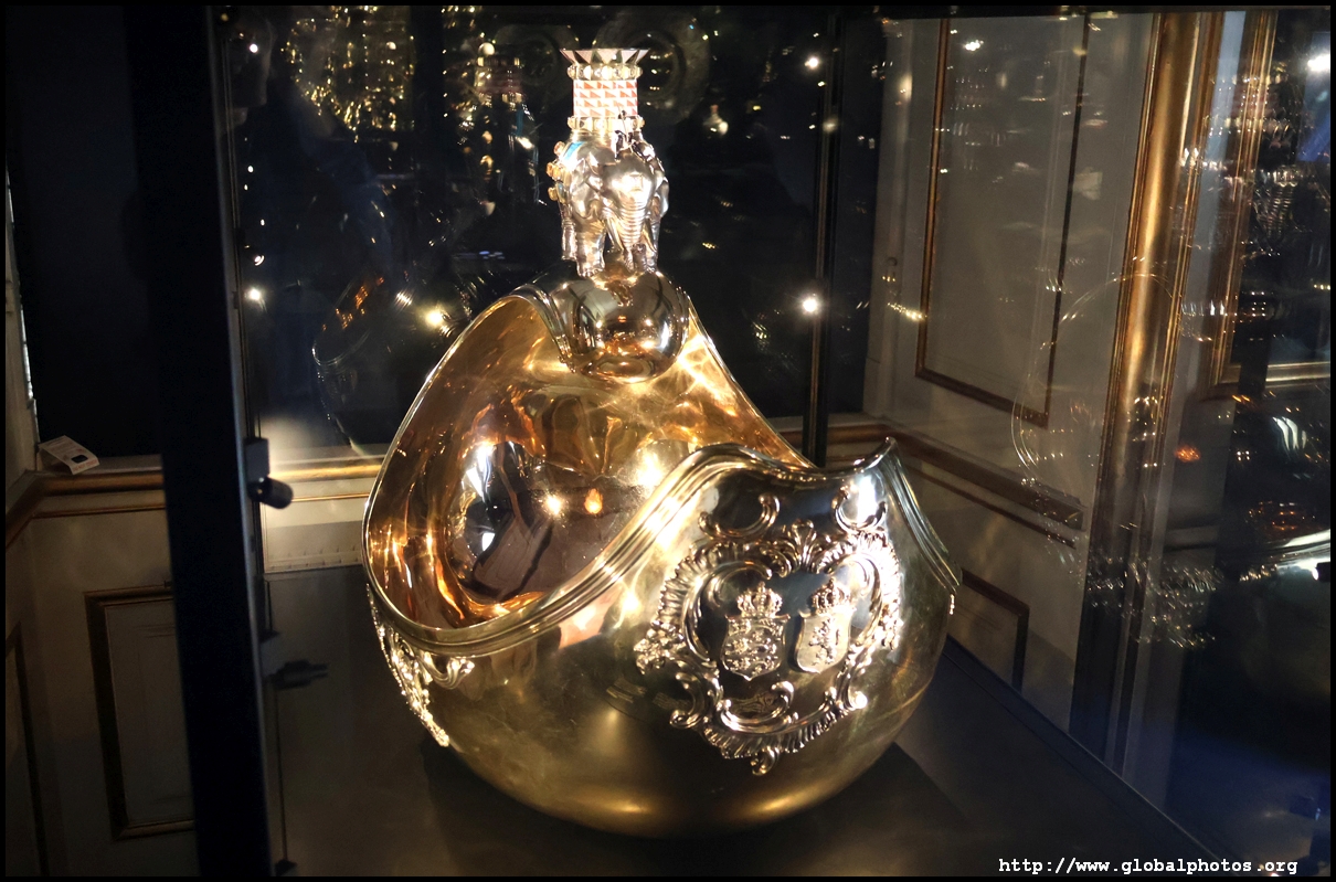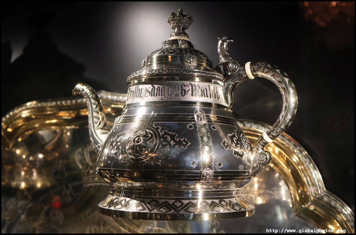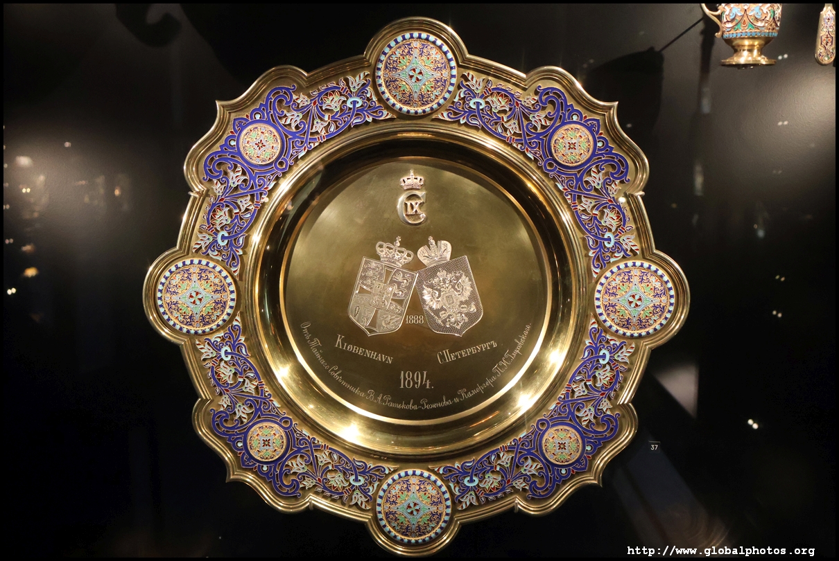 The Fabergé Chamber contains the most exquisite objects and testament of the royal family's ties with Russia. Princess Dagmar, daughter of Christian IX and Louise, married the future Emperor Alexander III of Russia in 1866. One of them is the champagne cooler created in 1892 as a golden wedding anniversary gift to Denmark.