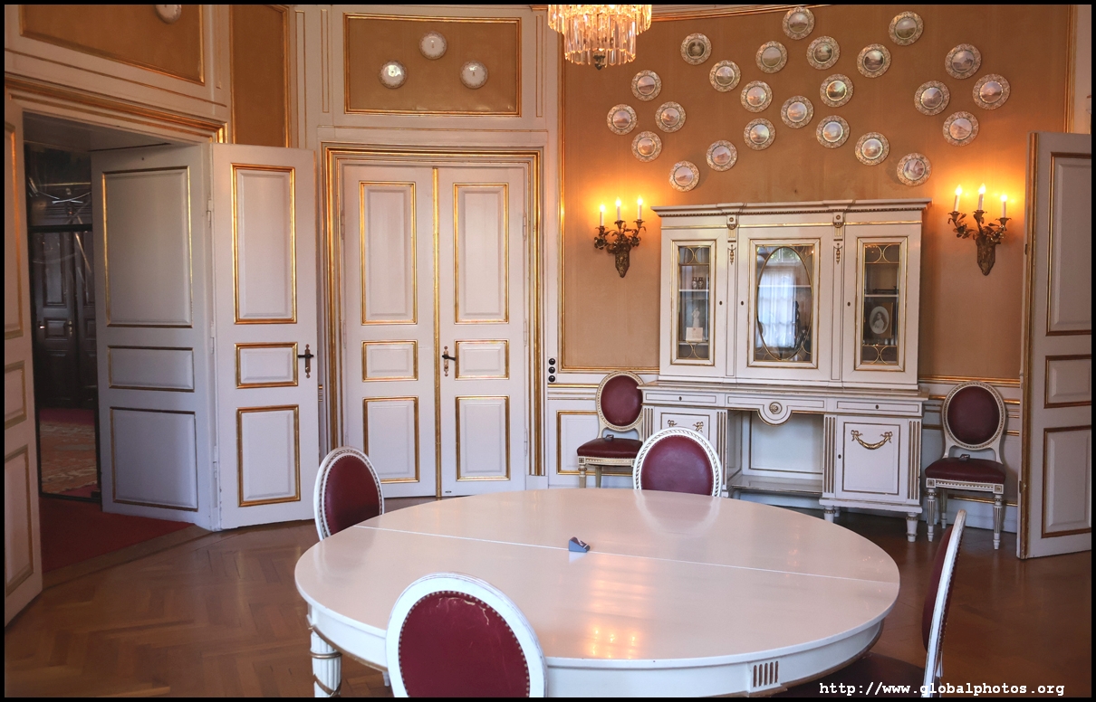 The Gala Hall shows decor from the late 1700s and was used for festivities and social occasions.