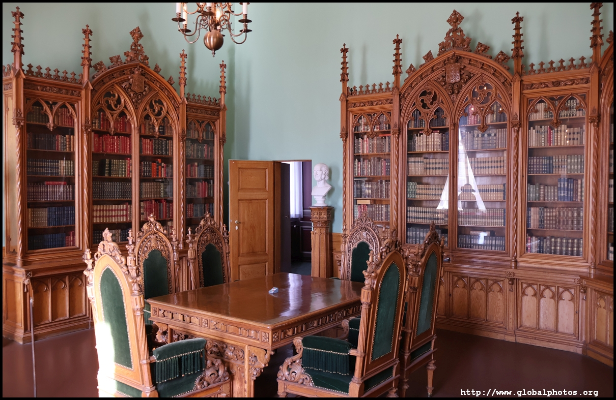 Heading upstairs, the first room is the Gothic Library, designed for Queen Dowager Caroline Amalie in 1852. Hans Christian Andersen was once a guest here.