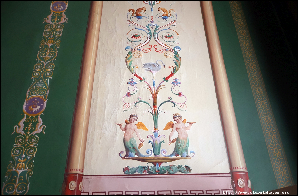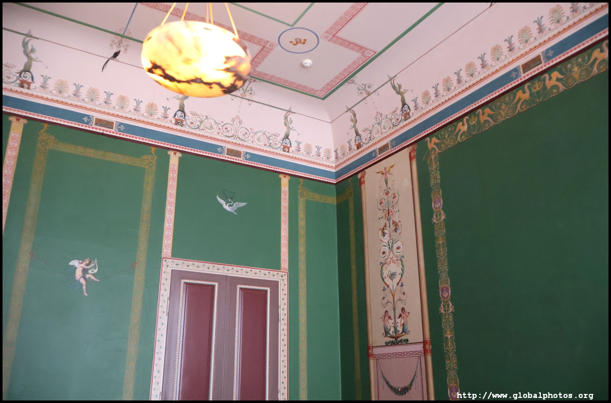 The Pompeian Chamber was originally Christian VIII and Queen Caroline Amalie's bedroom. The decor was inspired by the Pompeii excavations, which were a sensation in the 19th century.