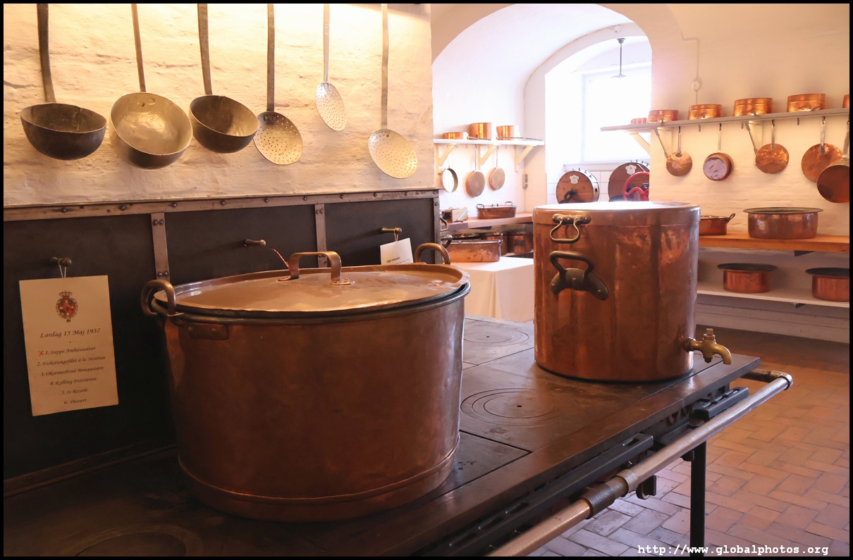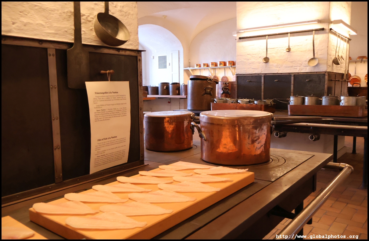 Although Christiansborg Palace is no longer home to Denmark's royalty, the site is open to visitors with 4 attractions. Access to all of them are free with the Copenhagen Card, which can be redeemed for a combination ticket.The current palace is the 3rd one that was completed in 1928, with one wing used the Royal Reception Rooms where foreign dignitaries are received and the other for Parliament. After visiting those rooms, I headed to another building to check out the Royal Kitchen and scanned my ticket for entry. This is a re-creation of a banquet kitchen to show off the royal copperware in preparation for a gala dinner in 1937.