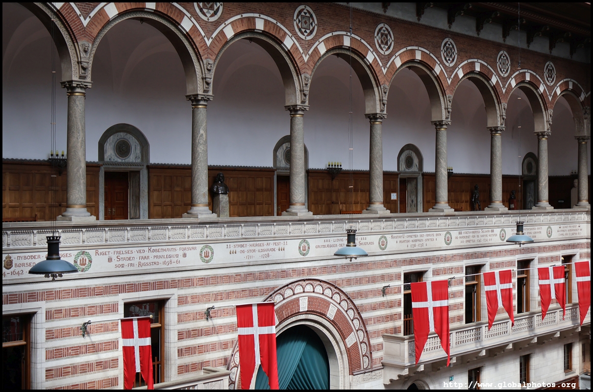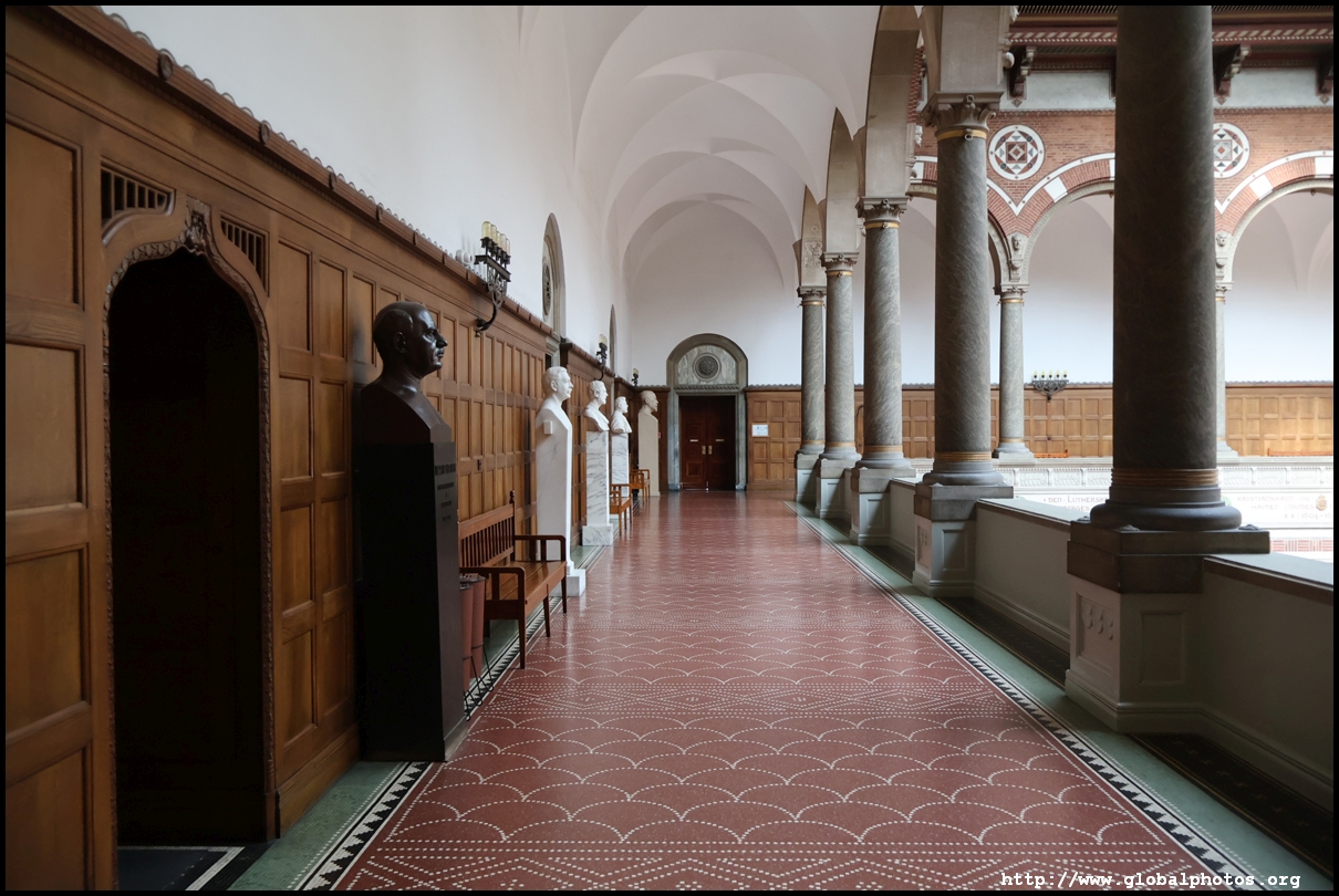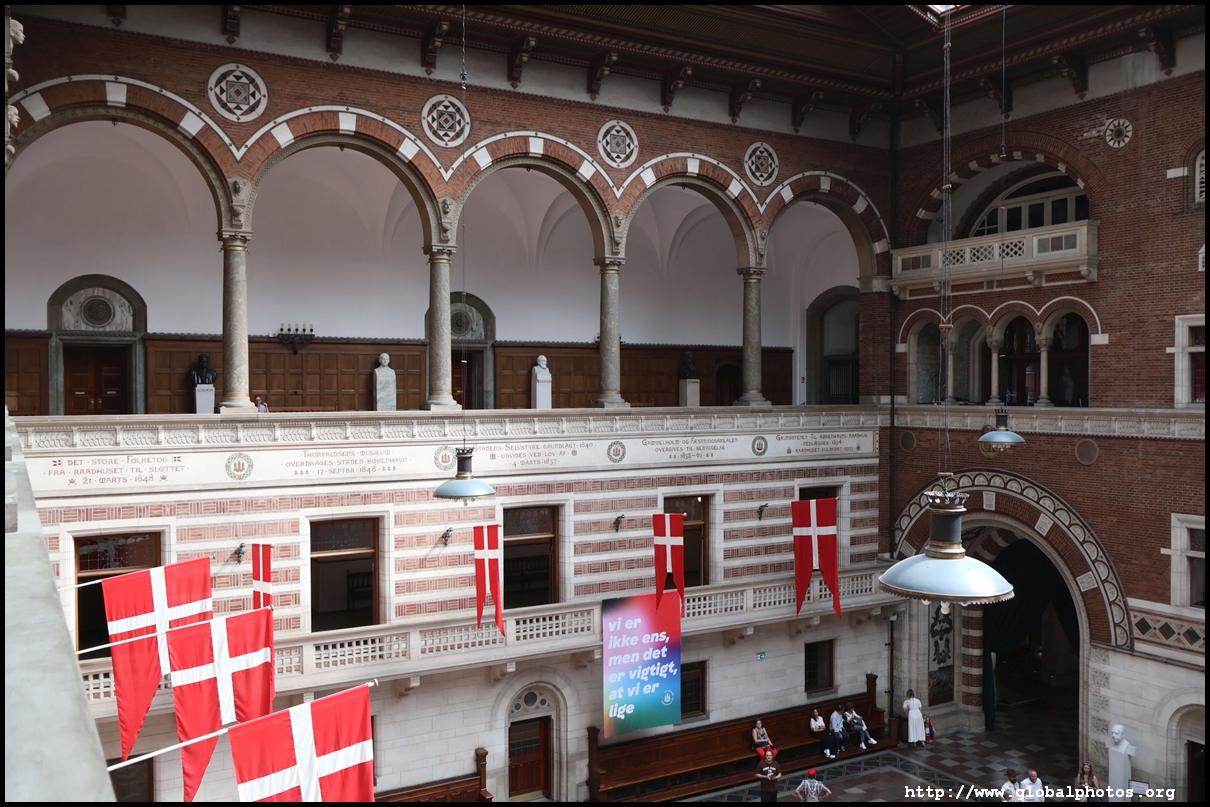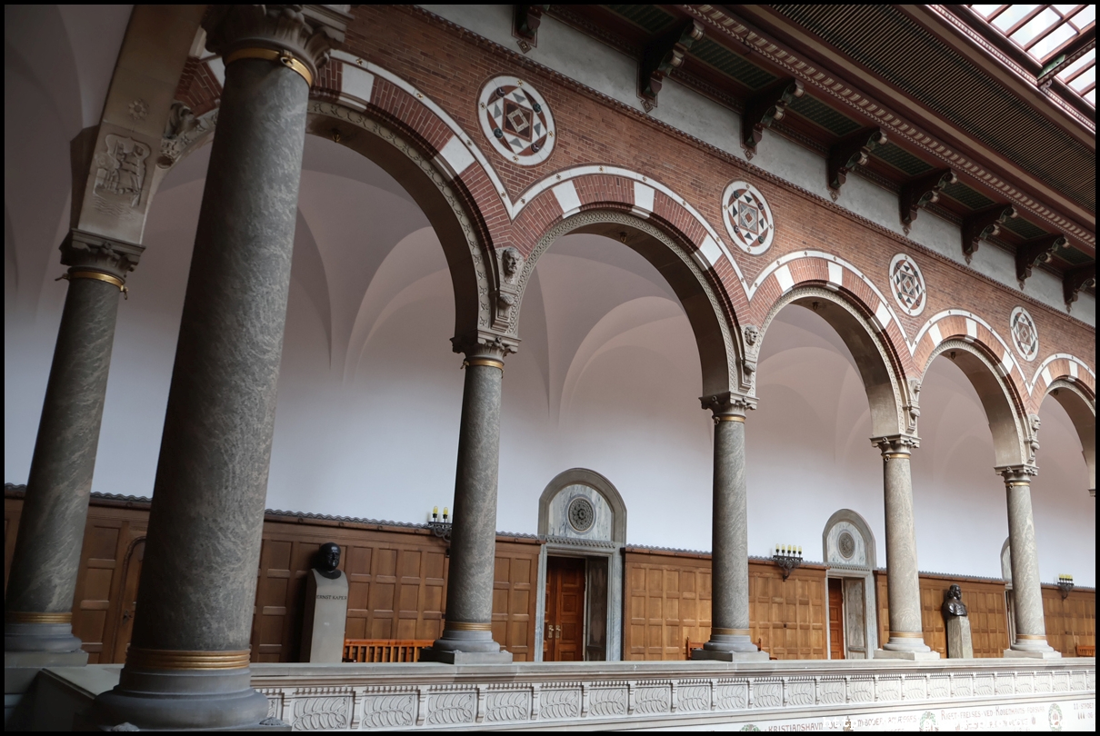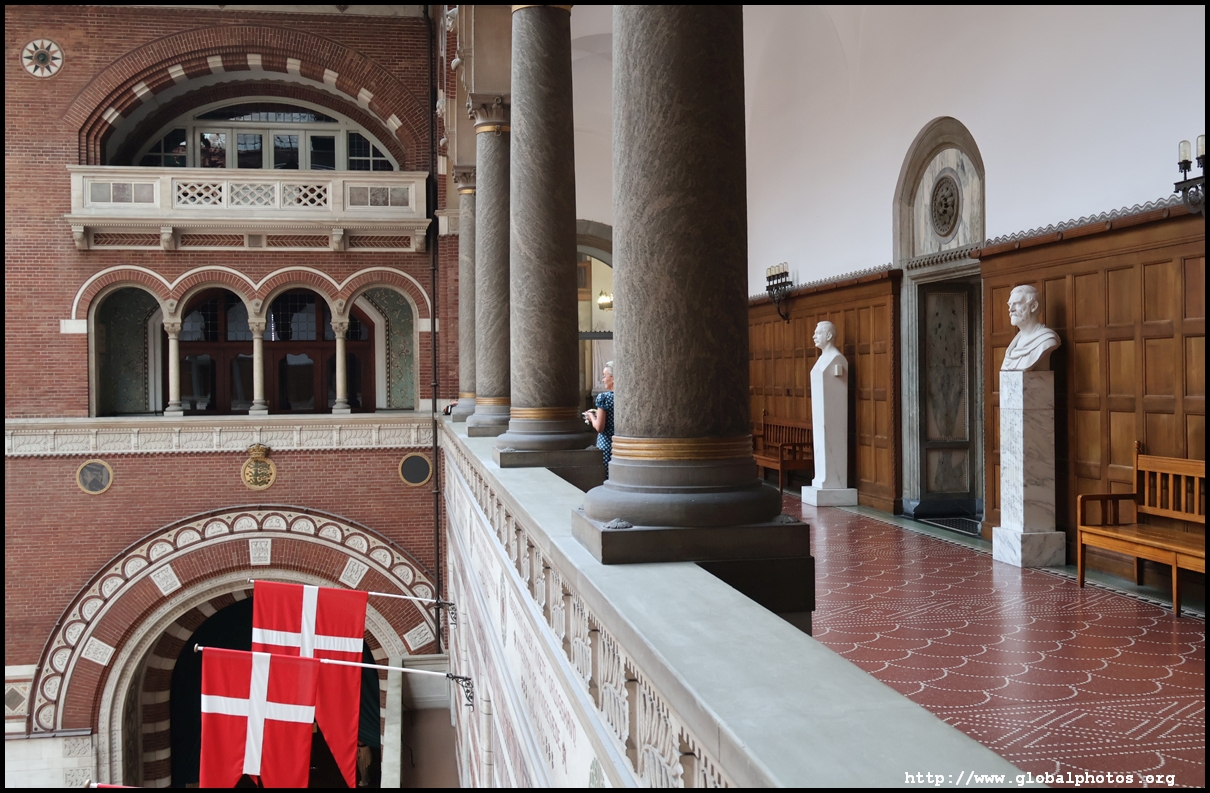 You enter into the Main Hall, the largest room in the building that is used for public events, elections, and more. The walls are decorated with busts of important Danes, such as Hans Christian Andersen.