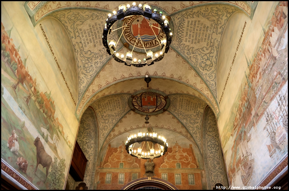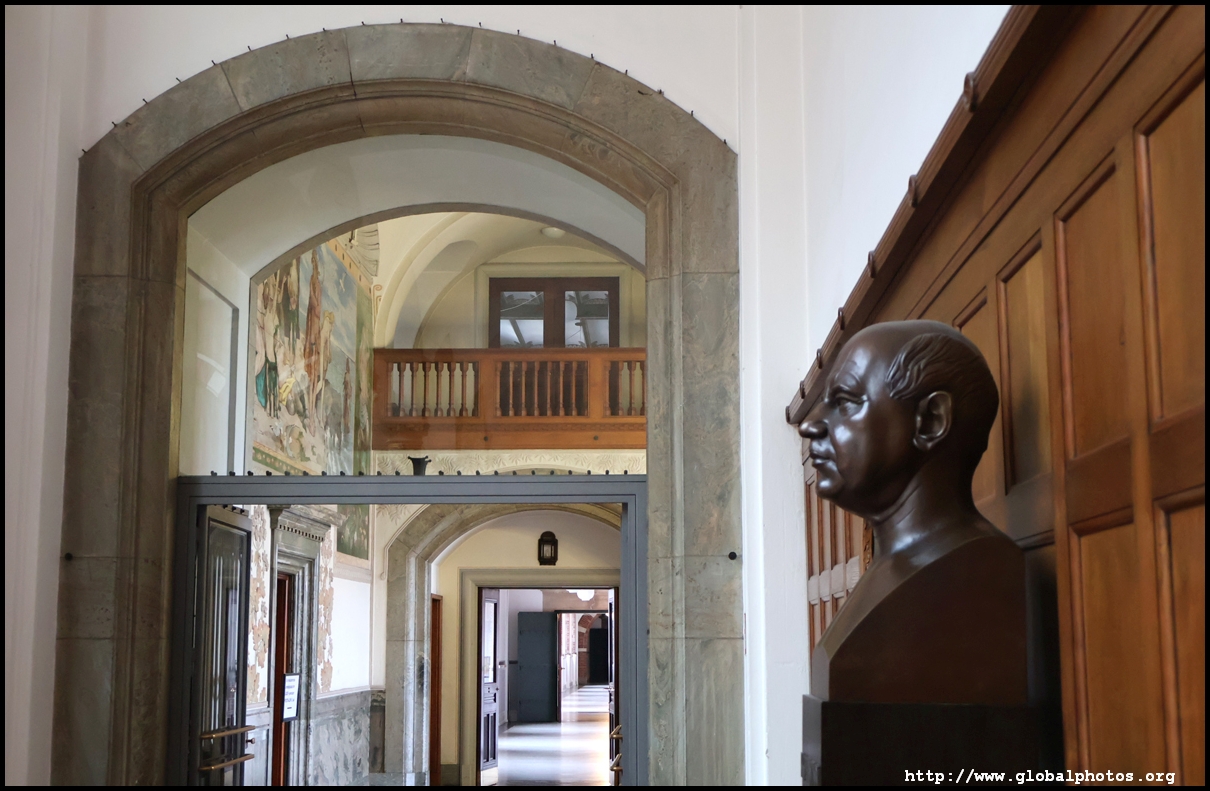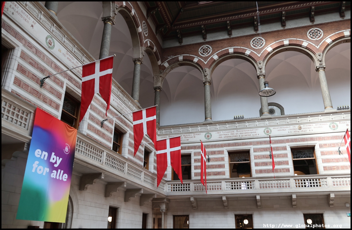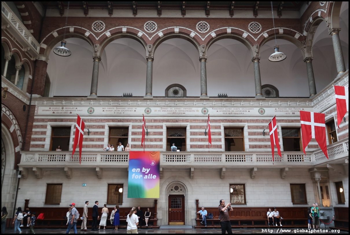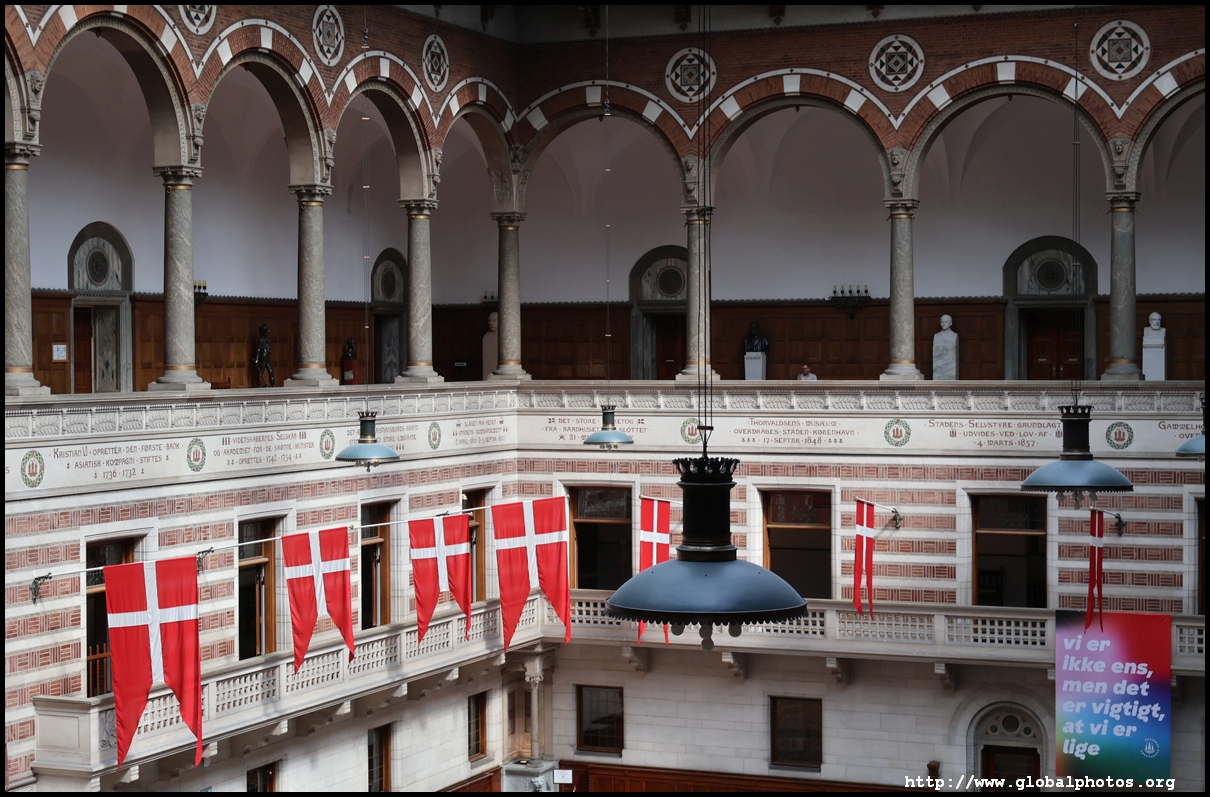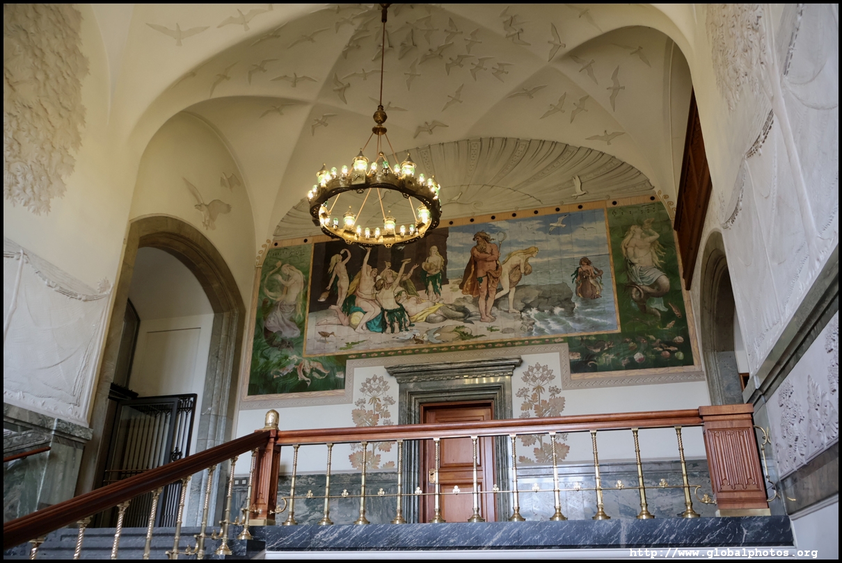 You enter into the Main Hall, the largest room in the building that is used for public events, elections, and more. The walls are decorated with busts of important Danes, such as Hans Christian Andersen.