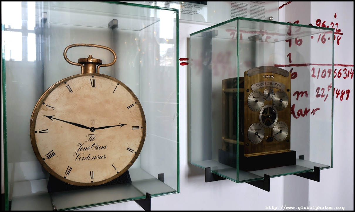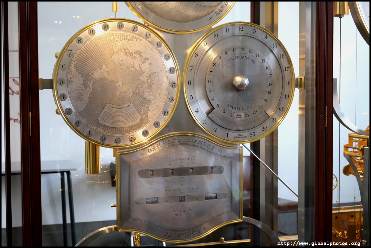 The world's most precise mechanical clock is the work of Jens Olsen that started ticking in 1955. Gilded in 4 kg of gold, it calculates the dates and full moon for the coming year and is wound once a week. The metal faces are coated in rhodium, which is resistant to corrosion.