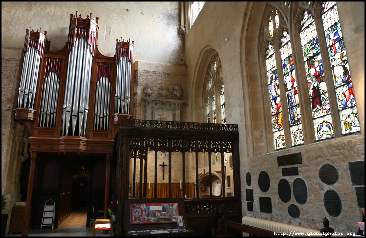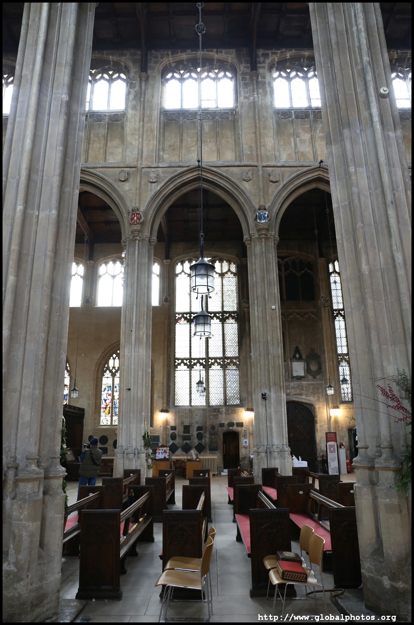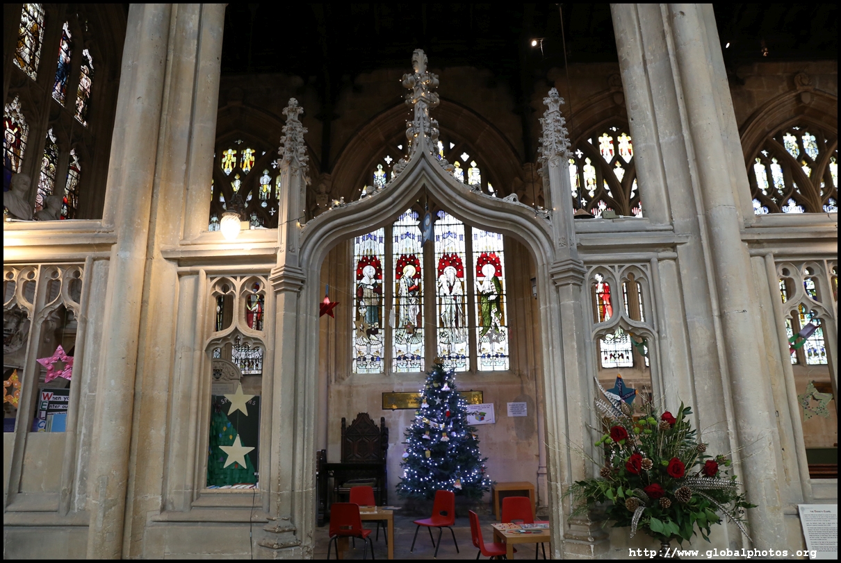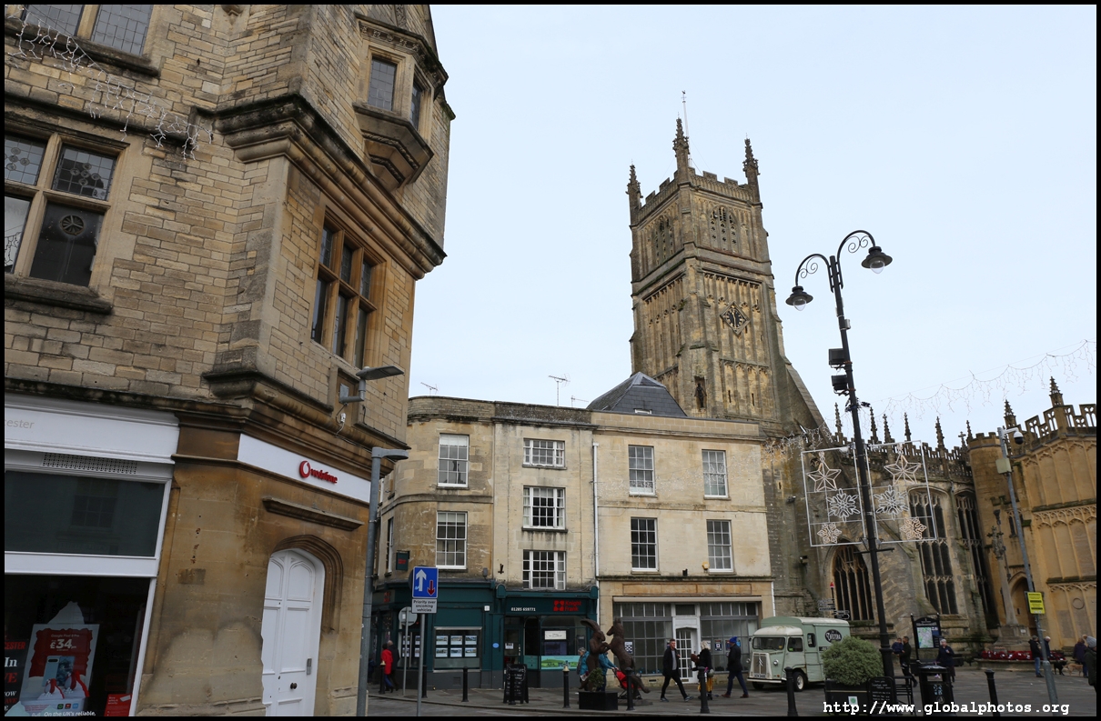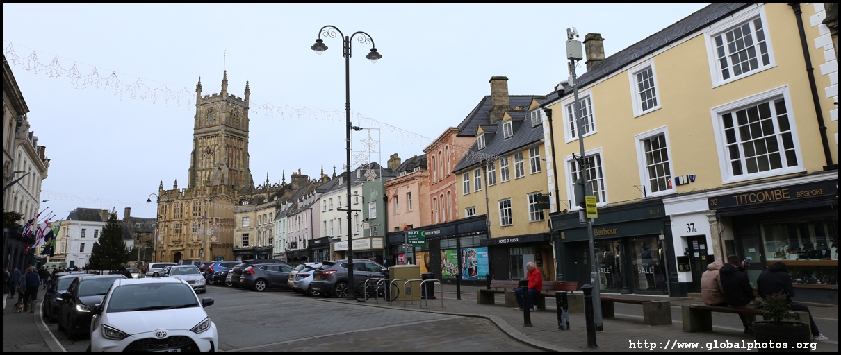 Cirencester was the 2nd largest Roman town in Britain after London and is known today as the capital of the Cotswolds. It became an important wool town during the Middle Ages and features the typical honey-coloured stone buildings in the region.The Parish Church of St. John Baptist has a long history with the oldest parts dating back to the 12th century, the tower is from the 15th, while the nave was rebuilt in the early 16th. A separate 3-storey south porch was built in the late 15th century as an office but also served as the town hall.