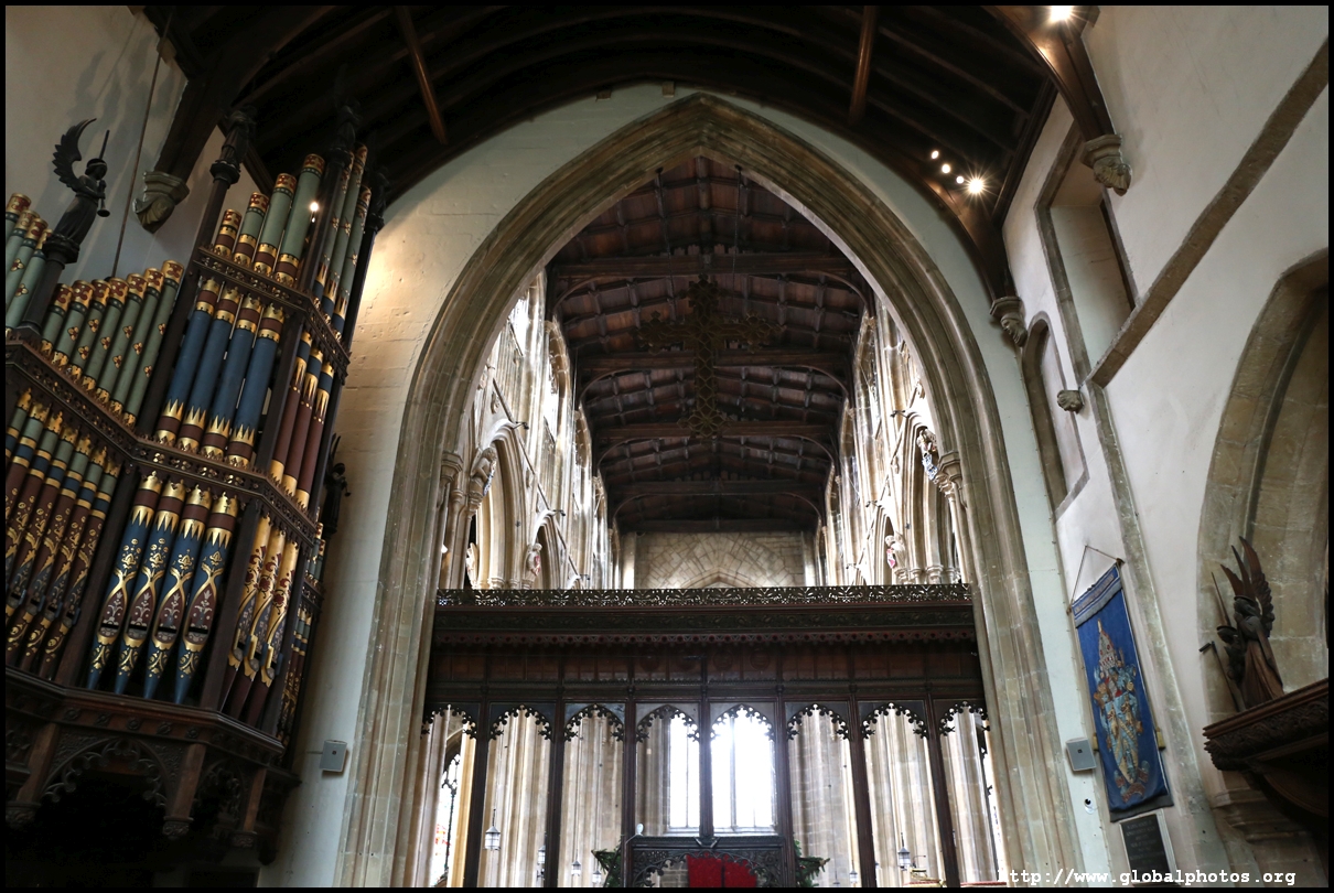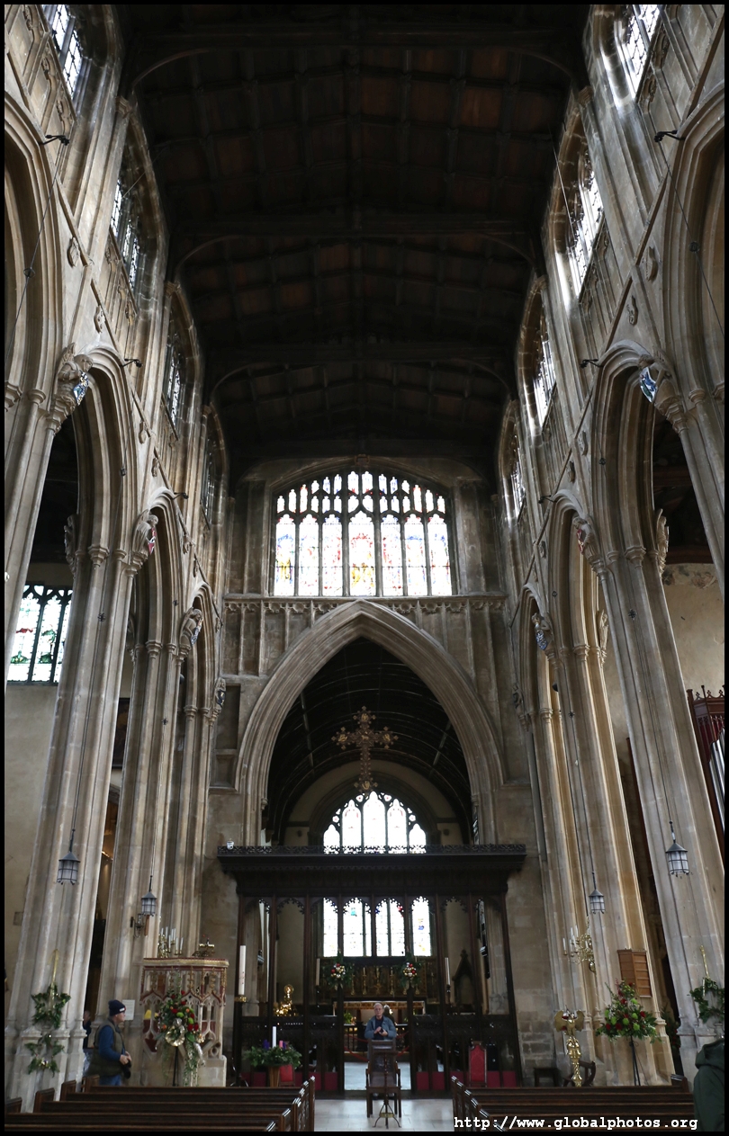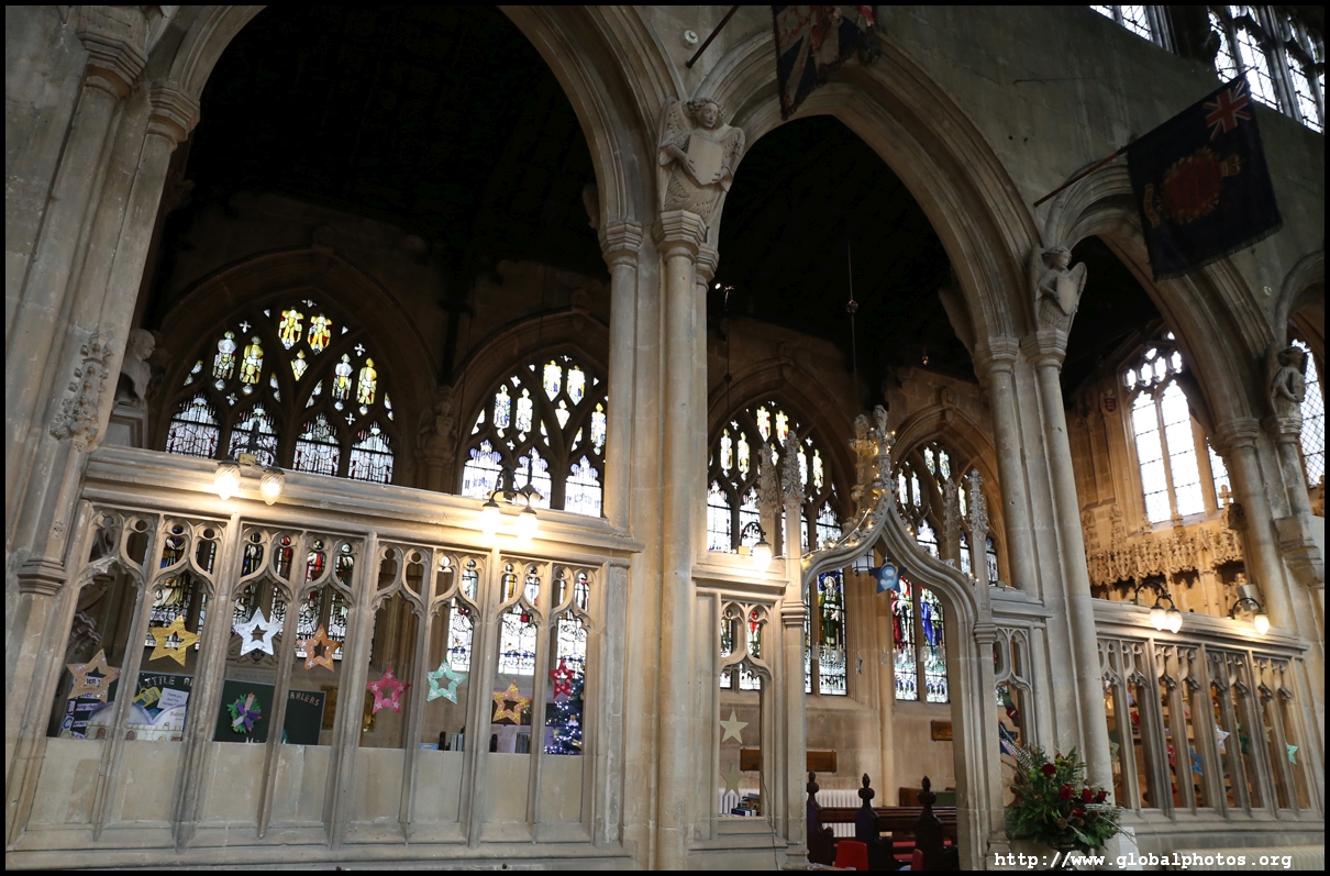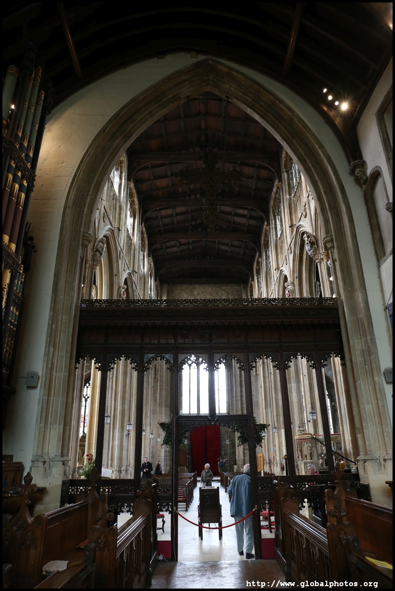 Cirencester was the 2nd largest Roman town in Britain after London and is known today as the capital of the Cotswolds. It became an important wool town during the Middle Ages and features the typical honey-coloured stone buildings in the region.The Parish Church of St. John Baptist has a long history with the oldest parts dating back to the 12th century, the tower is from the 15th, while the nave was rebuilt in the early 16th. A separate 3-storey south porch was built in the late 15th century as an office but also served as the town hall.