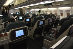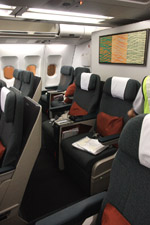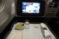 This is my first time on the new regional Business Class. The seats are not lie-flat and you have a neighbour beside you. But the hardware is quite nice with good storage space, an efficient table that pulls out from in front of you. However, I would be quite concerned to fly this type of bird on a red-eye.