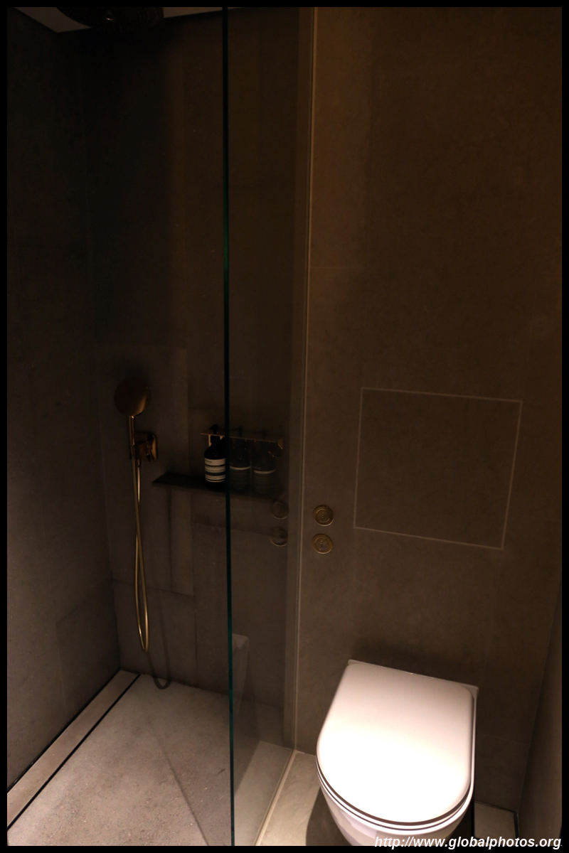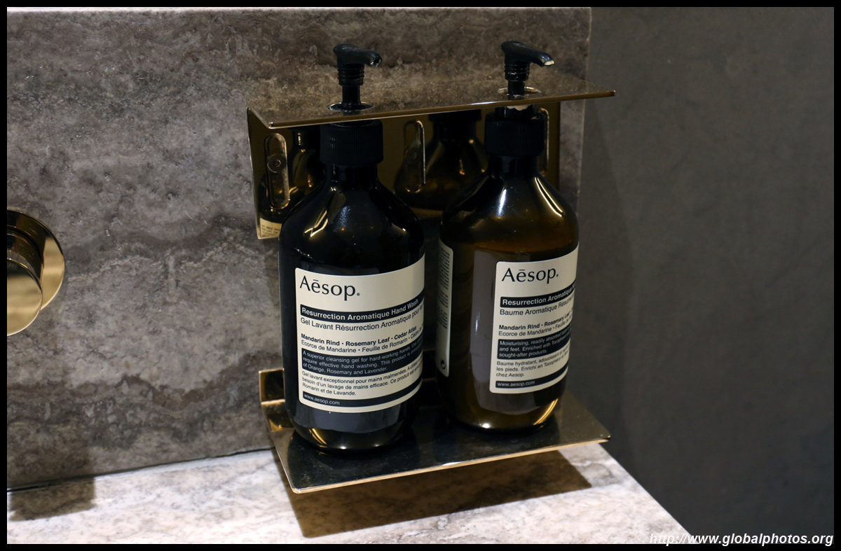 The shower attendant had a place for me right away and escorted me to one of many shower rooms along a long hallway. It was a bit on the small side but was spectacularly clean, stocked with large bottles of Aesop accessories next to the sink and also in the shower. Toiletry kits were also available. I bumped my shoulder and elbows a few times as I maneuvered my way into the shower. My only complaint was the coat hooks were not good at hooking up clothes.