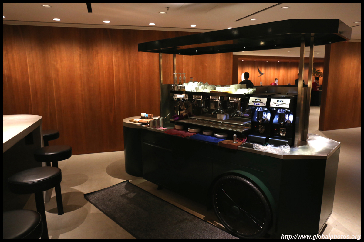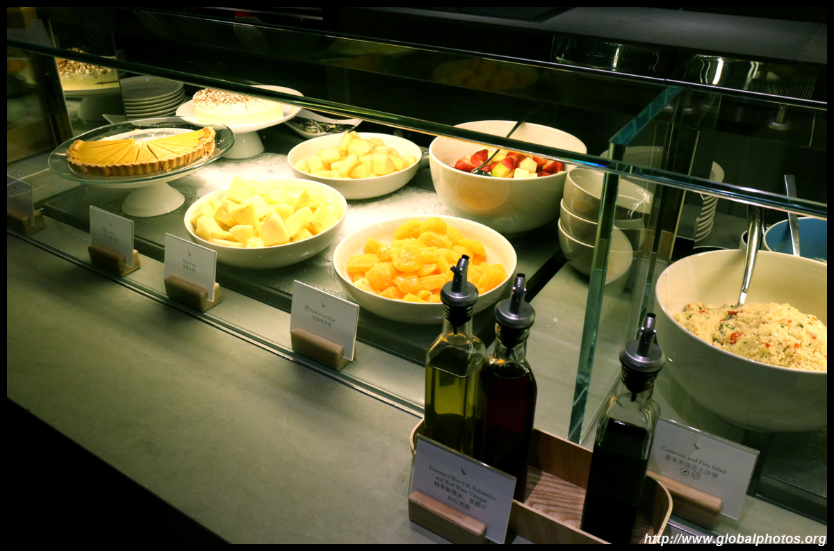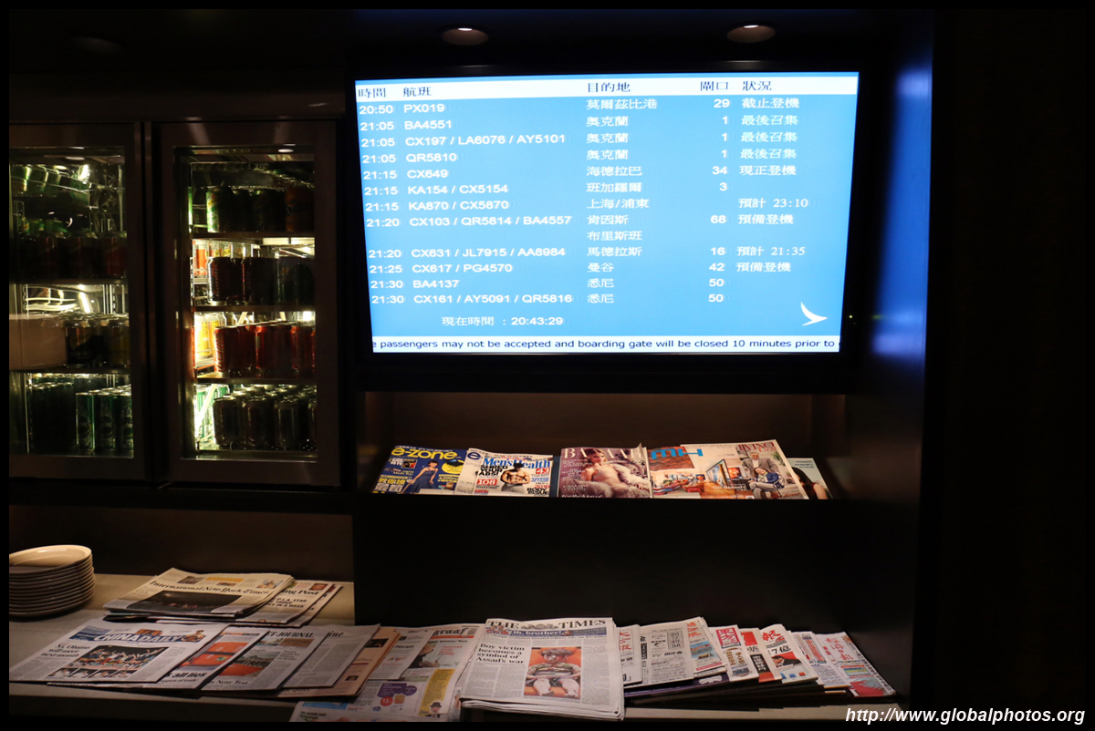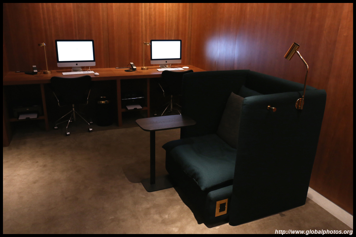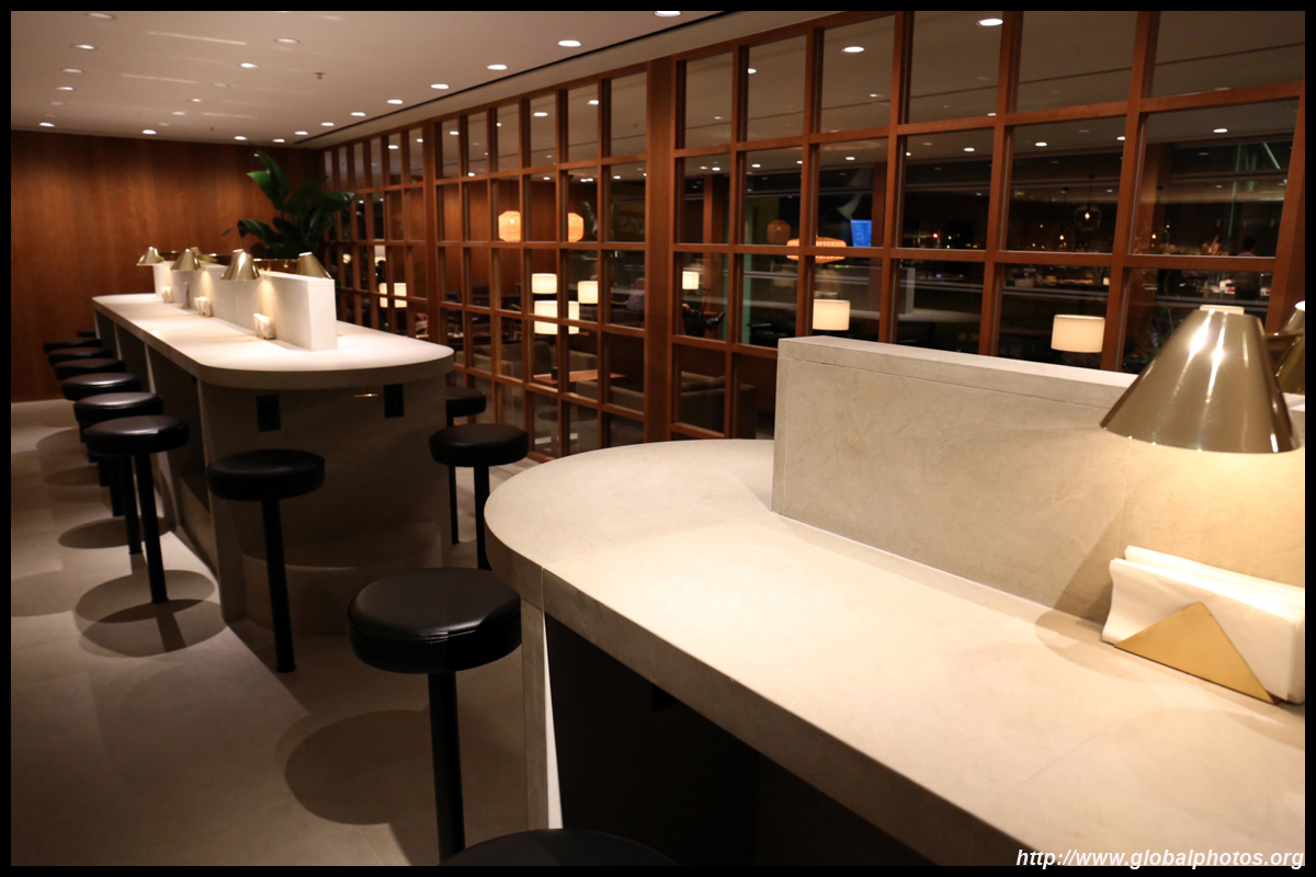 While the food lounges occupied the middle sections, comfortable chairs lined along the windows for great views of the tarmac activity. There were several types of lounge chairs, and none resembled the space-aged shell seats with tables in the Cabin. I was quite impressed with the green chairs in particular, which were very spacious and looked like First Class comfort. A small row of computers lined the other end of the lounge, which was empty tonight. I have never been to a Cathay lounge in Hong Kong that was so empty before, so it was a great photography exploration day for me.