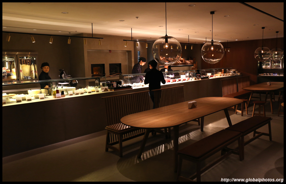 The water pressure was great and after a short hot shower, I was refreshed and ready to eat. There was an unmanned drinks bar next to the shower room, and I caught sight of some juices and small bites displayed in a stylish way.