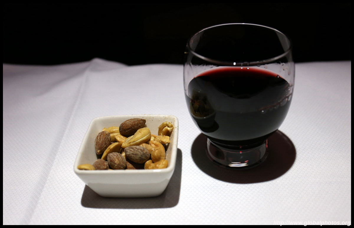 We left Gate 50 at 9:38pm, 8 minutes behind schedule, and roared into the night sky. Soon after, the crew sprang into action with the initial nuts service, which I paired with port wine.