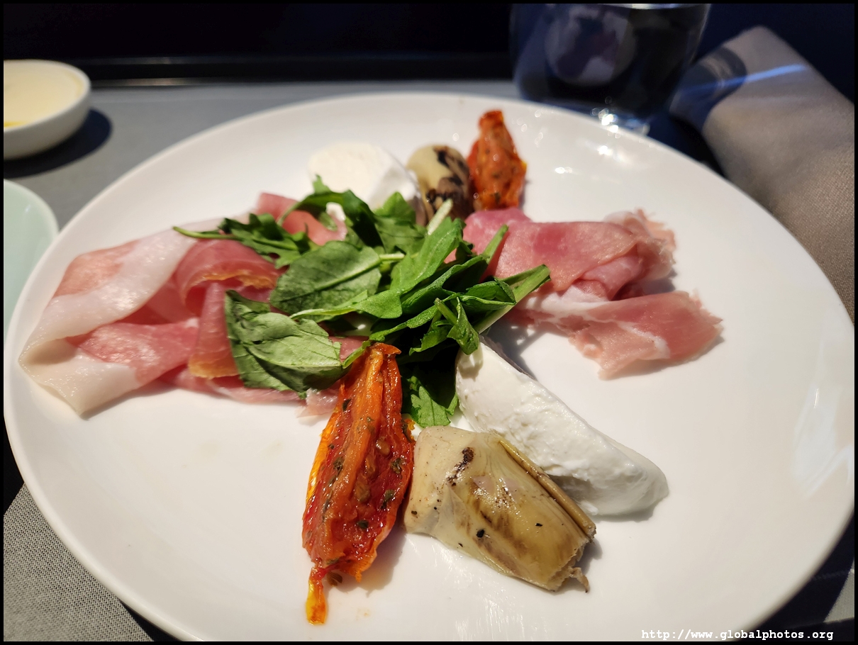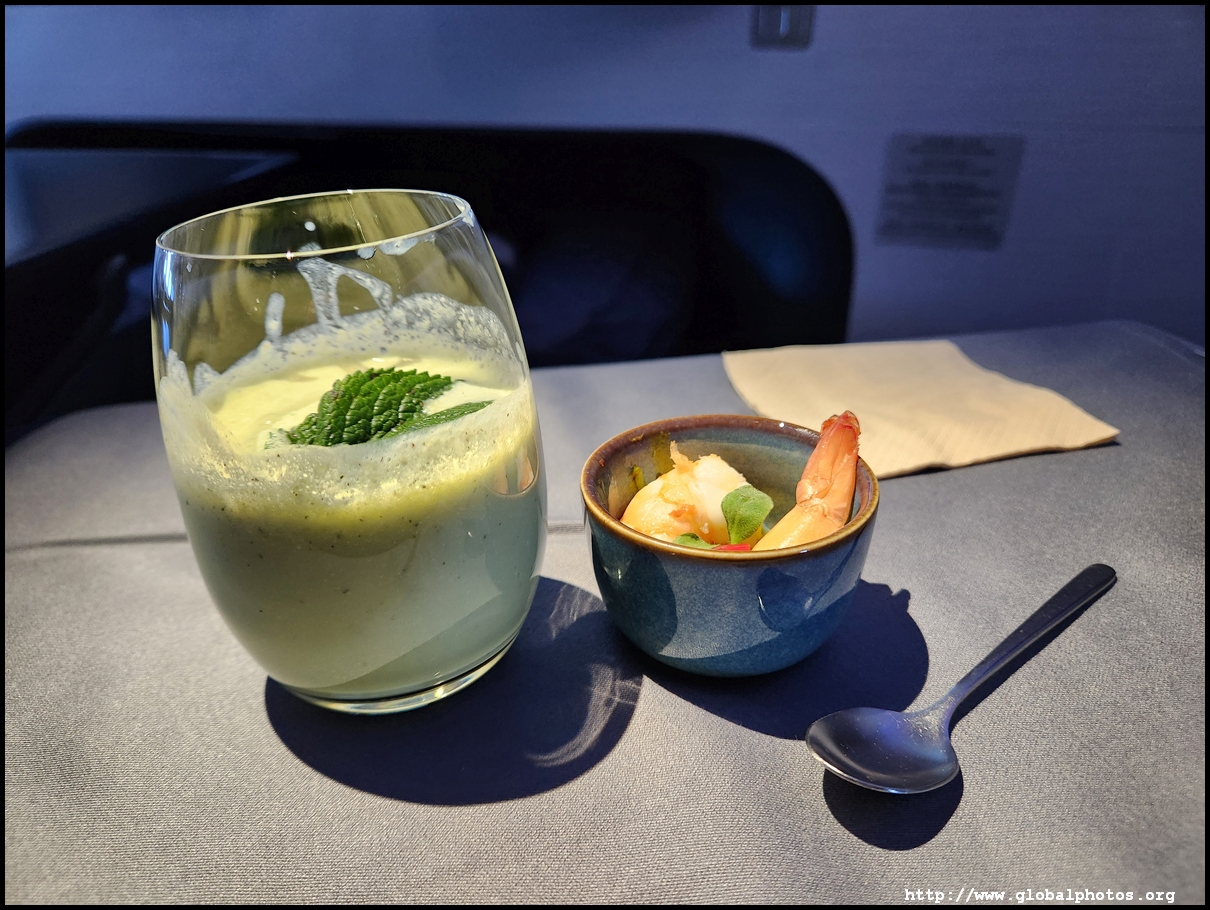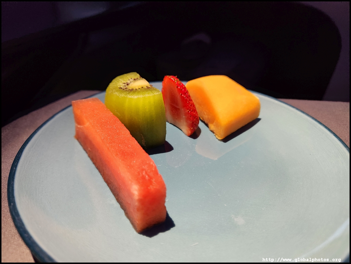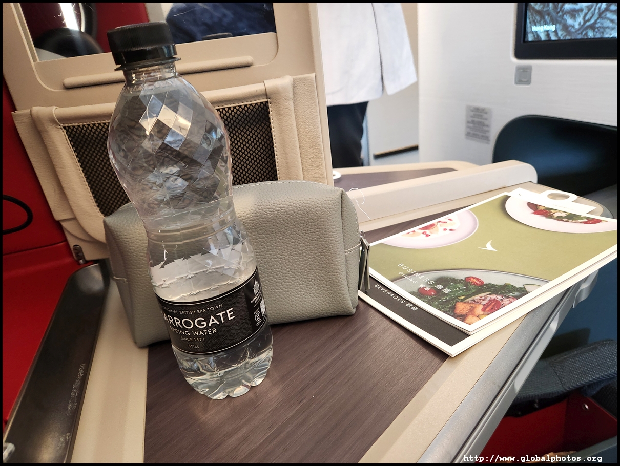 Welcome drinks were served with champagne and orange juice on offer. I noticed Cathay Delight in the menu but they were not offered on the tray. Afterwards, hot towels were distributed.