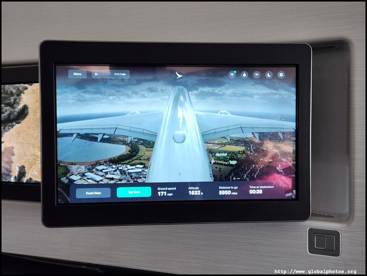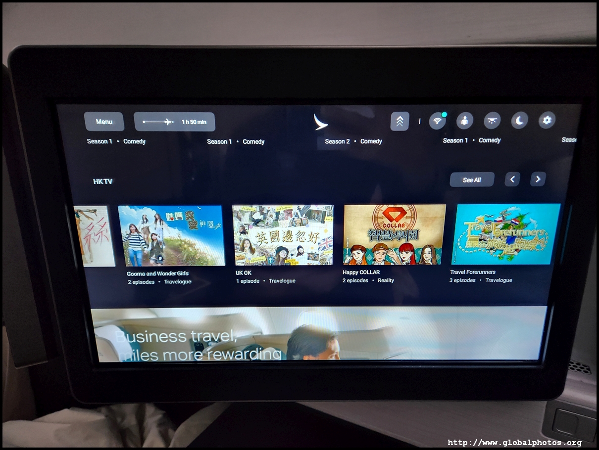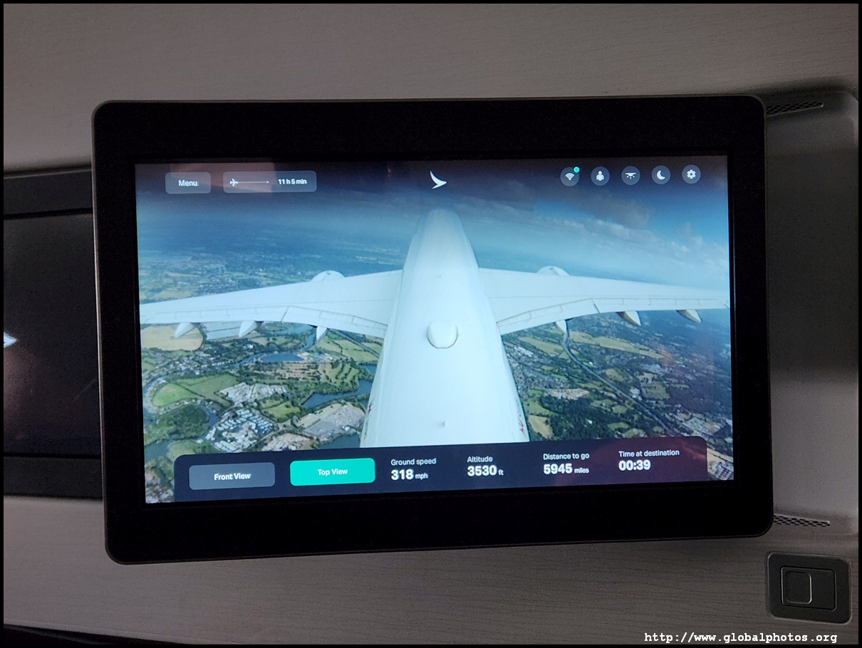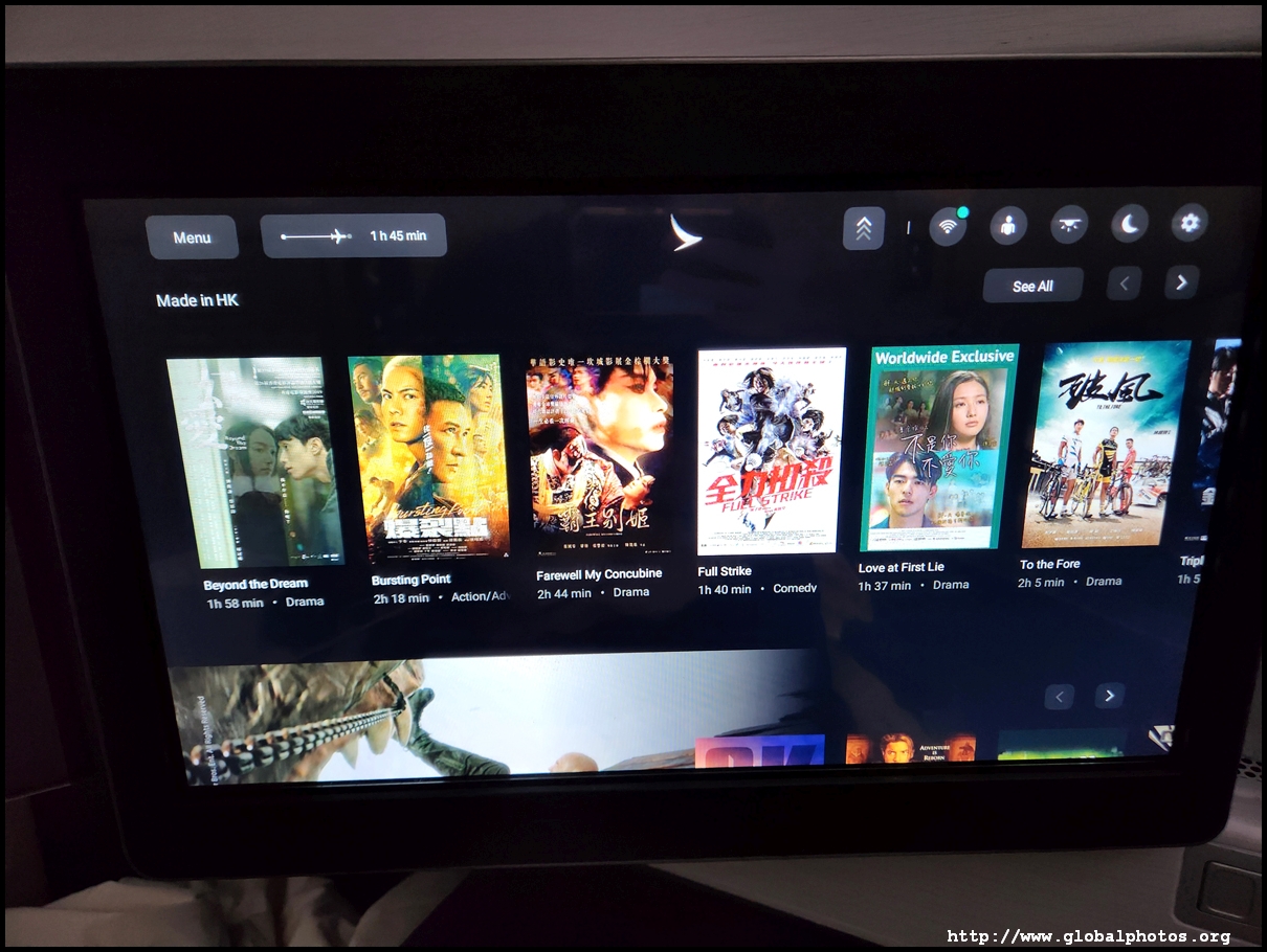 The TV screen was huge and I had to slouch ahead to touch it and get through the menu. Cathay's IFE is quite extensive and I quickly turned on the BBC News live feed as we roared into the summer sky.