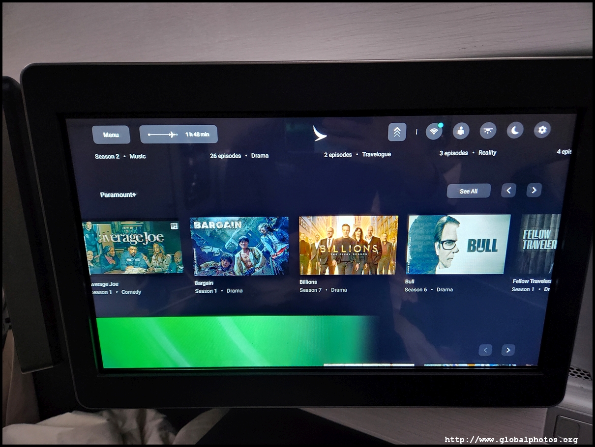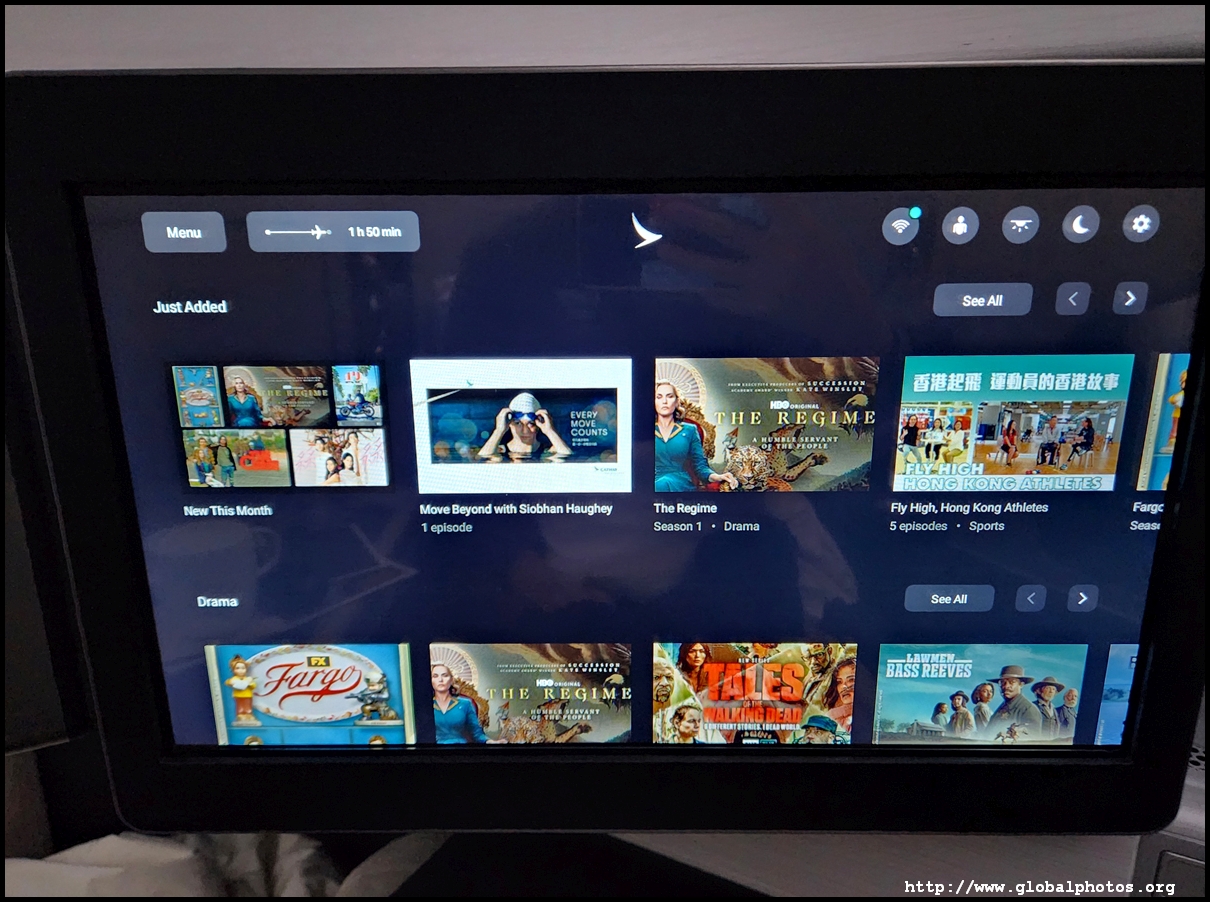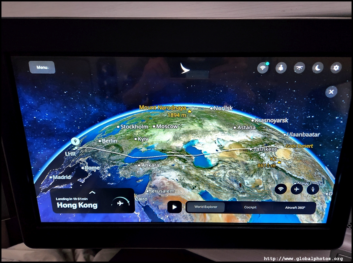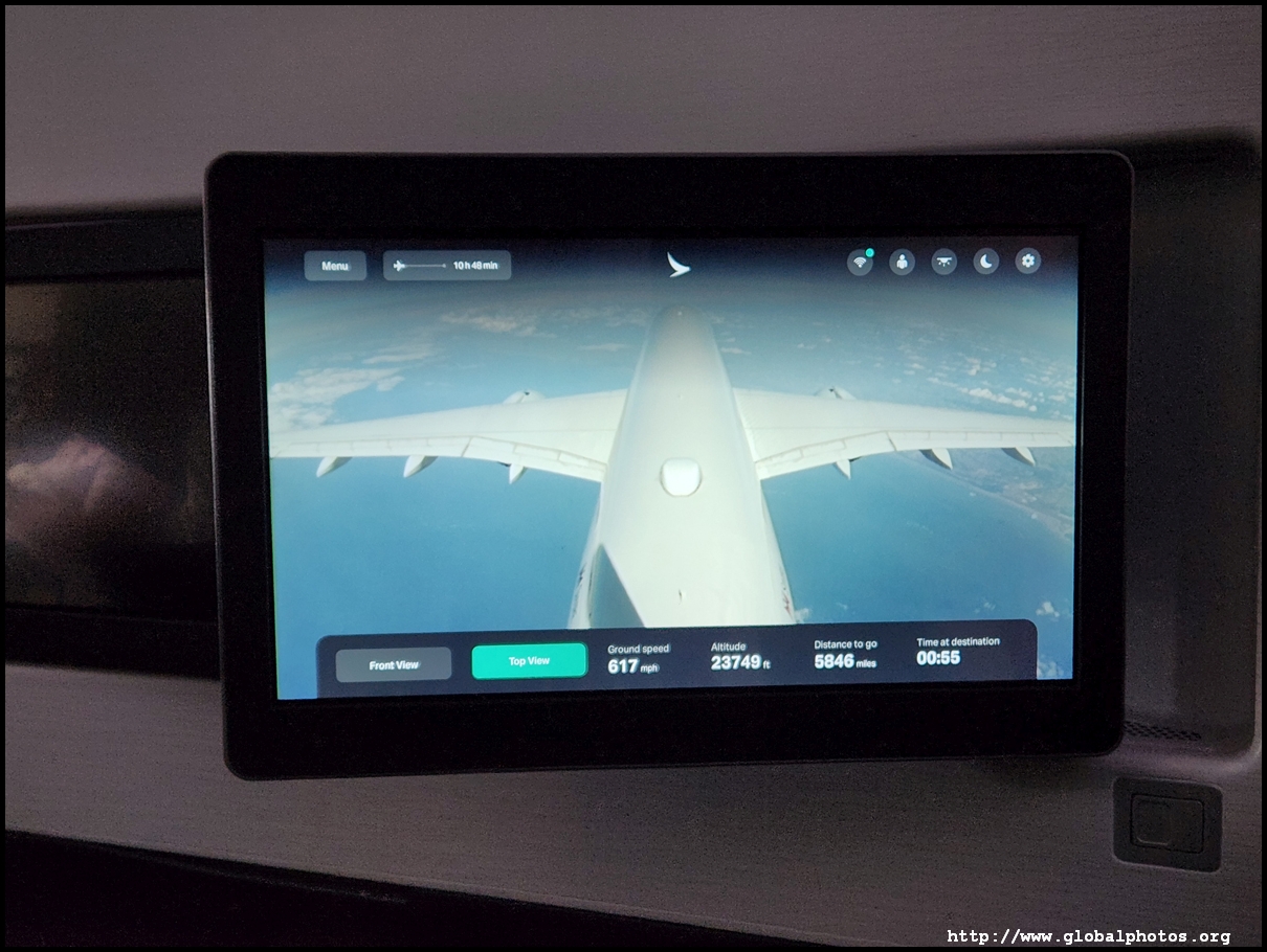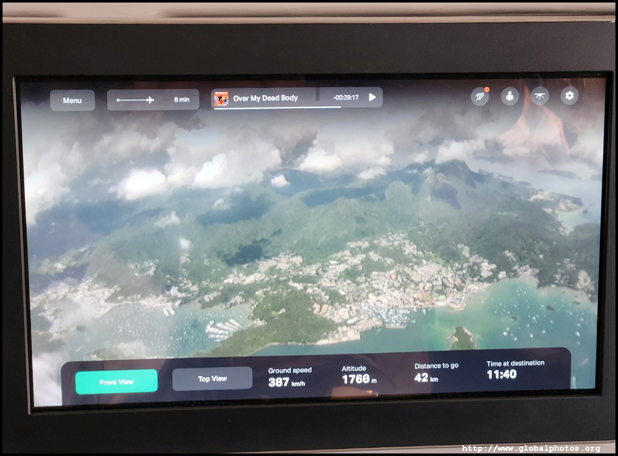 The TV screen was huge and I had to slouch ahead to touch it and get through the menu. Cathay's IFE is quite extensive and I quickly turned on the BBC News live feed as we roared into the summer sky.