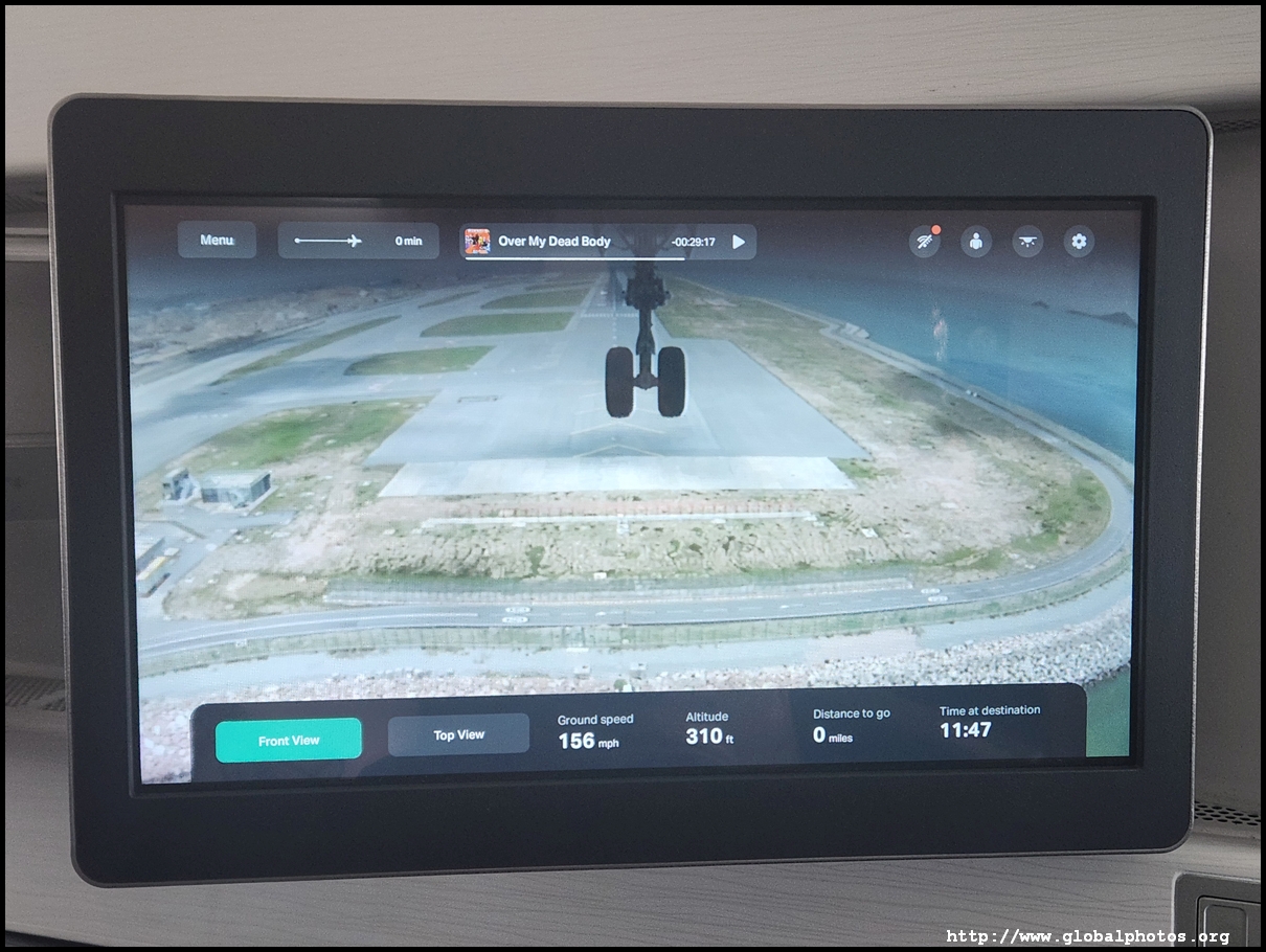Strapped in for landing, I went back to the plane's camera to check out our approach from the east. The views would have been great from the left window though.