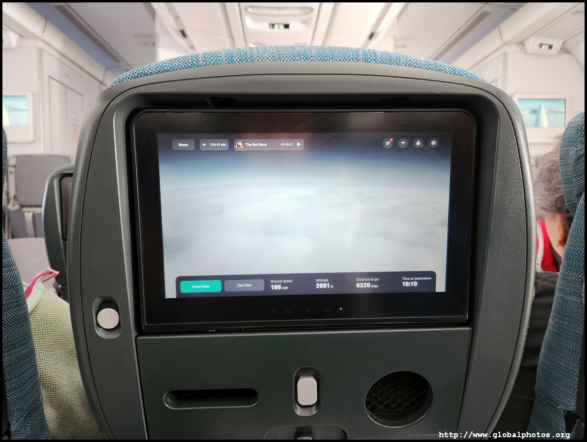 We pushed back just ahead of schedule and it didn't take long to take-off into the cloudy sky. The A350 has a very comfortable Economy class cabin with decent legroom. The flight time of just over 10.5 hours feels manageable in this seat.