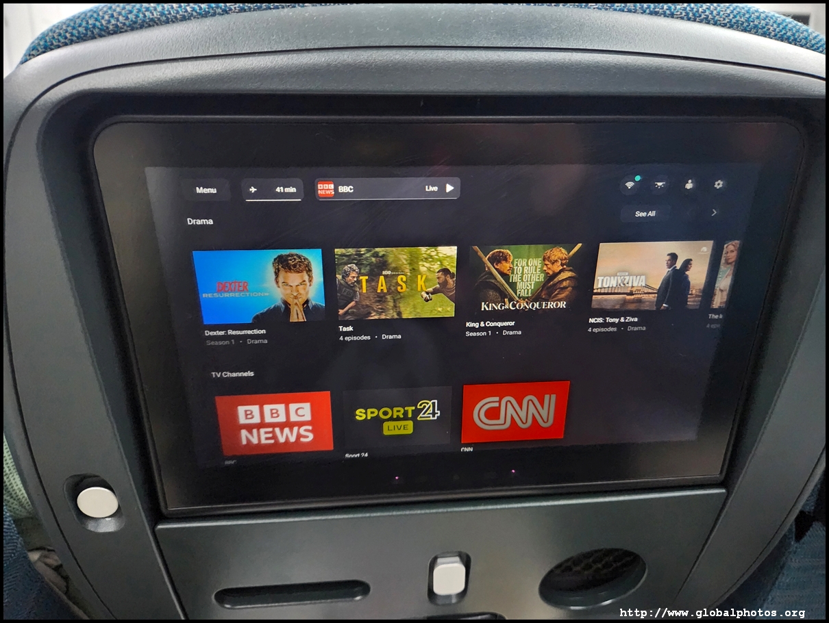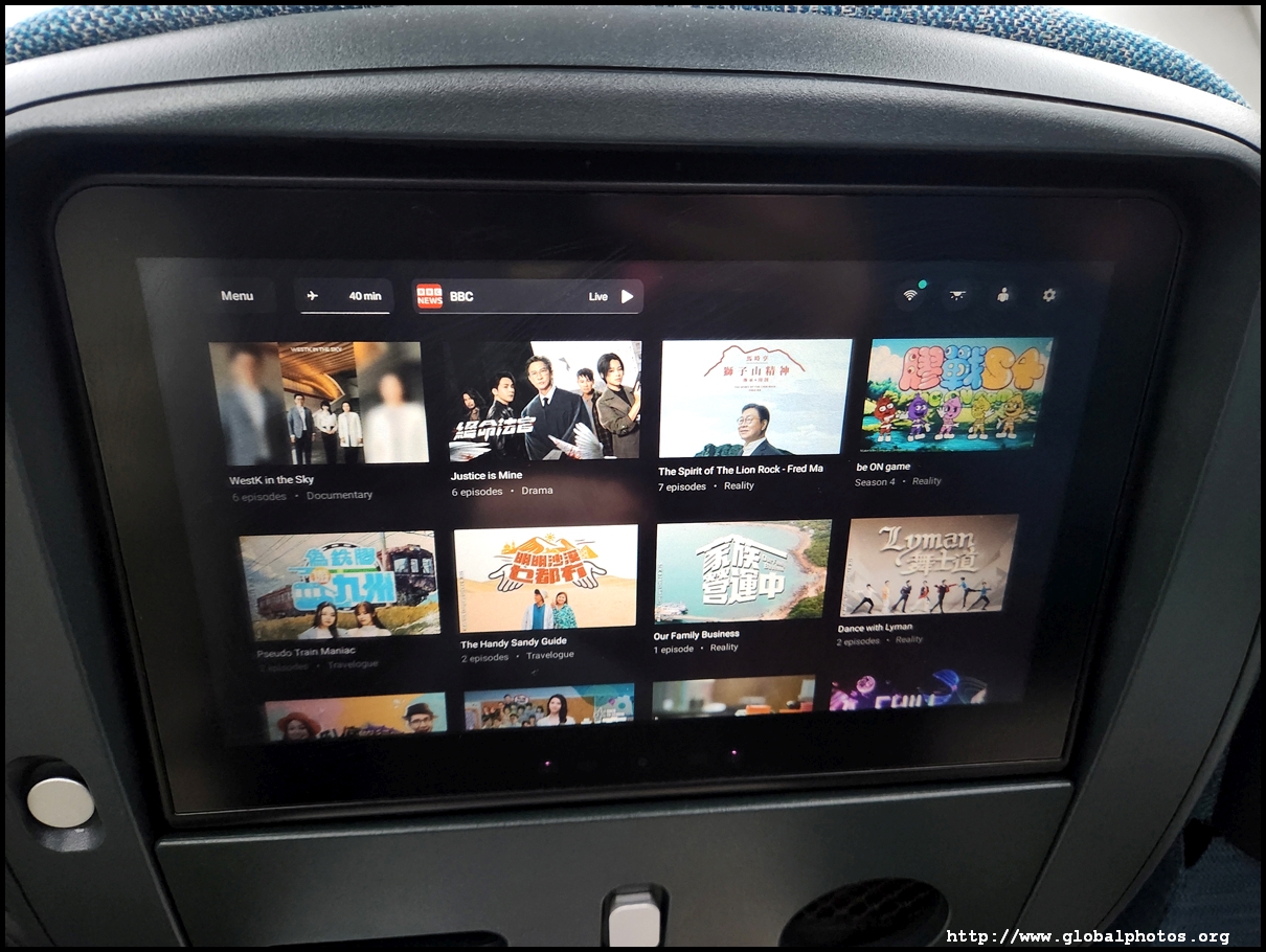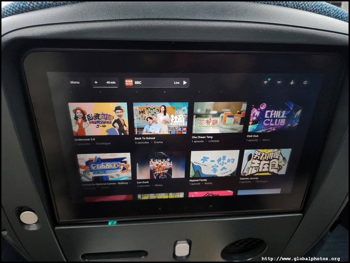 The A350 has a different IFE interface compared to the older 777, with live TV being a distinctive feature. Regardless of the aircraft type, there is plenty of Hong Kong television content, including travel shows that I like.