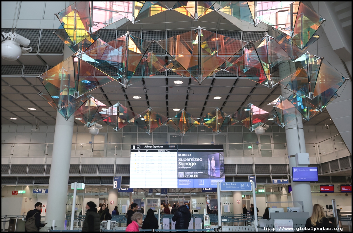 Non-Lufthansa or Star Alliance airlines operate out of the older Terminal 1. It's partially under construction now so things are getting a bit messy with a lot of walking involved. Terminal 1 is connected by long indoor walkways from the main transport centre, with Cathay's check-in counters at the A section. Signage is not too clear and I was a bit confused how to go up from the downstairs corridor to the main check-in level. With construction happening, the length of the check-in area was partially blocked.