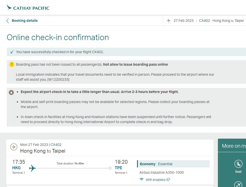 Taiwan re-opened to the outside world on October 13, 2022 with removal of mandatory quarantine on arrival. Visitors would need to go through a 0+7 self-initiated prevention period, staying in a hotel or home with a private bathroom on their own. They would need to use rapid tests 4 times during the period, although they can go out, use public transport, or go to work.In the previous month, Taiwan reinsated visa-free entry for passport holders from a number of countries, including the US, Canada, Australia, Schengen area, and a number of Southeast Asian countries. Unfortunately, Hong Kong was not part of the group, limiting visitors to only large tour groups or by applying for an official business visa. Under-estimating the lengthy process to apply for a business visa, I set off requesting my business counterparts in Taiwan to provide the relevant documents to apply online. The process was seemingly straight forward by submitting everything on their web portal. Interestingly, I didn't need to pay to apply, although there is a fee involved, which is due once the application is approved. However, several rounds of questions later, which all came through their web portal, I became perplexed by the amount of documentation and requirements to push through the business visa application, such as a personal profile written in Chinese, not English, a contact's local phone number, providing my parents' names and birthdates, as well as an affirmation I'm not affiliated with the Communist party. This was in addition to the standard invitation letter from Taiwan and proof of my status in Hong Kong. I got the impression that Taiwan was still not open for business and I got caught up in geopolitics. The anxiety came to an end on Valentine's Day, when Taiwan announced they would resume processing Hong Kong passport applications to visit through their old online portal like what we used to do before the pandemic, which would fit either business or leisure visits and without the need for endless documentation proof. That website would re-open on Feb 20, which marks how this trip came into being. On the morning of Feb 20, I tried in vain to load that website and wouldn't succeed until the afternoon. As expected, I got my visa approval seconds after filling out the old, simple form online. This trip was ticketed shortly after. However, it's not totally back to normal yet. As I pushed through online check-in, I got an error message that I couldn't receive my boarding pass due to an additional documentation check. I guess they need to verify I got a paper copy of the visa at the counter.
