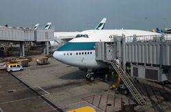 I was a bit surprised at the seat map when I checked in online. Today's flight would be on a 747, which is used for regional runs these days and are slowly being retired from Cathay's fleet. I secured a wider seat at the back of the plane where the configuration narrows from 3 to 2 seats. This is my favourite spot on the 747's economy class.