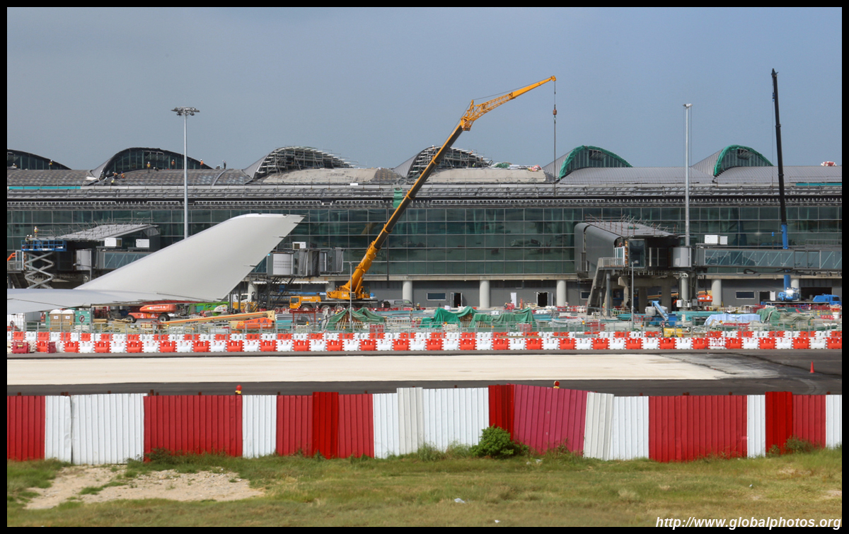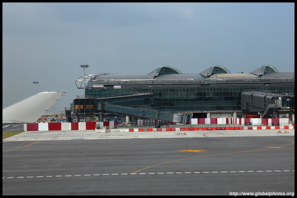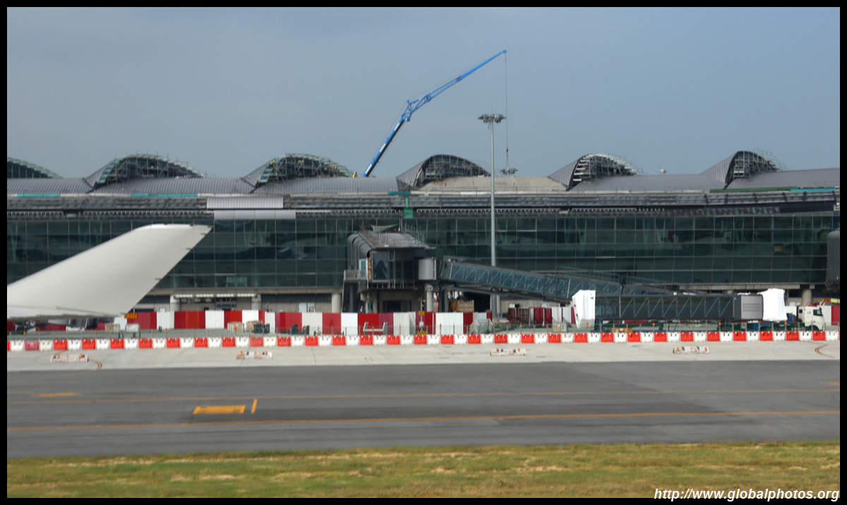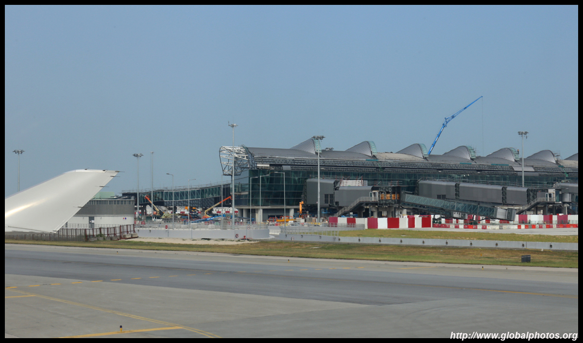 Looks like they are putting on finishing touches to the new satellite terminal. Unlike the north satellite that is not connected to the main building and requires an annoying bus ride, this new building will be connected by the people mover.