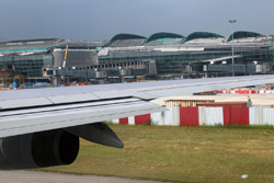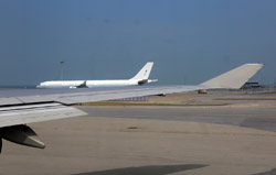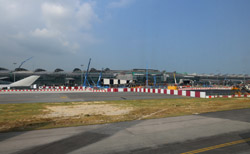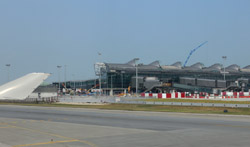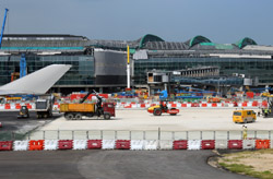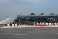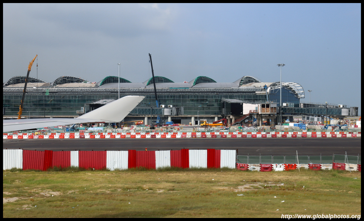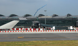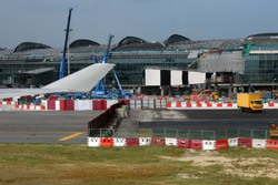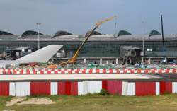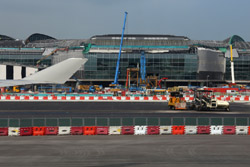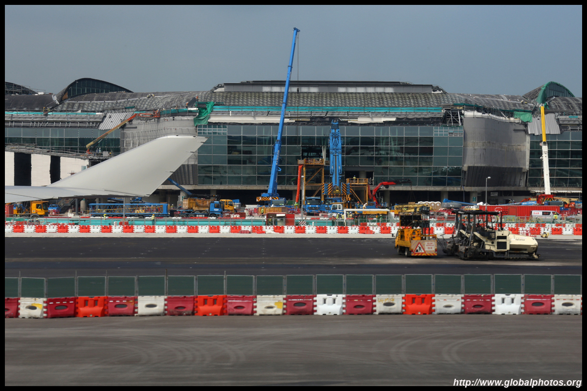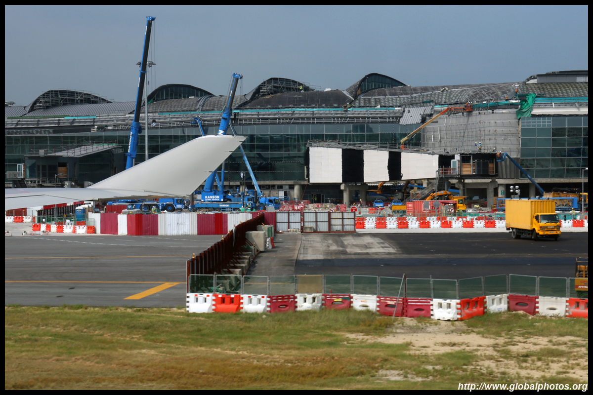 Looks like they are putting on finishing touches to the new satellite terminal. Unlike the north satellite that is not connected to the main building and requires an annoying bus ride, this new building will be connected by the people mover.